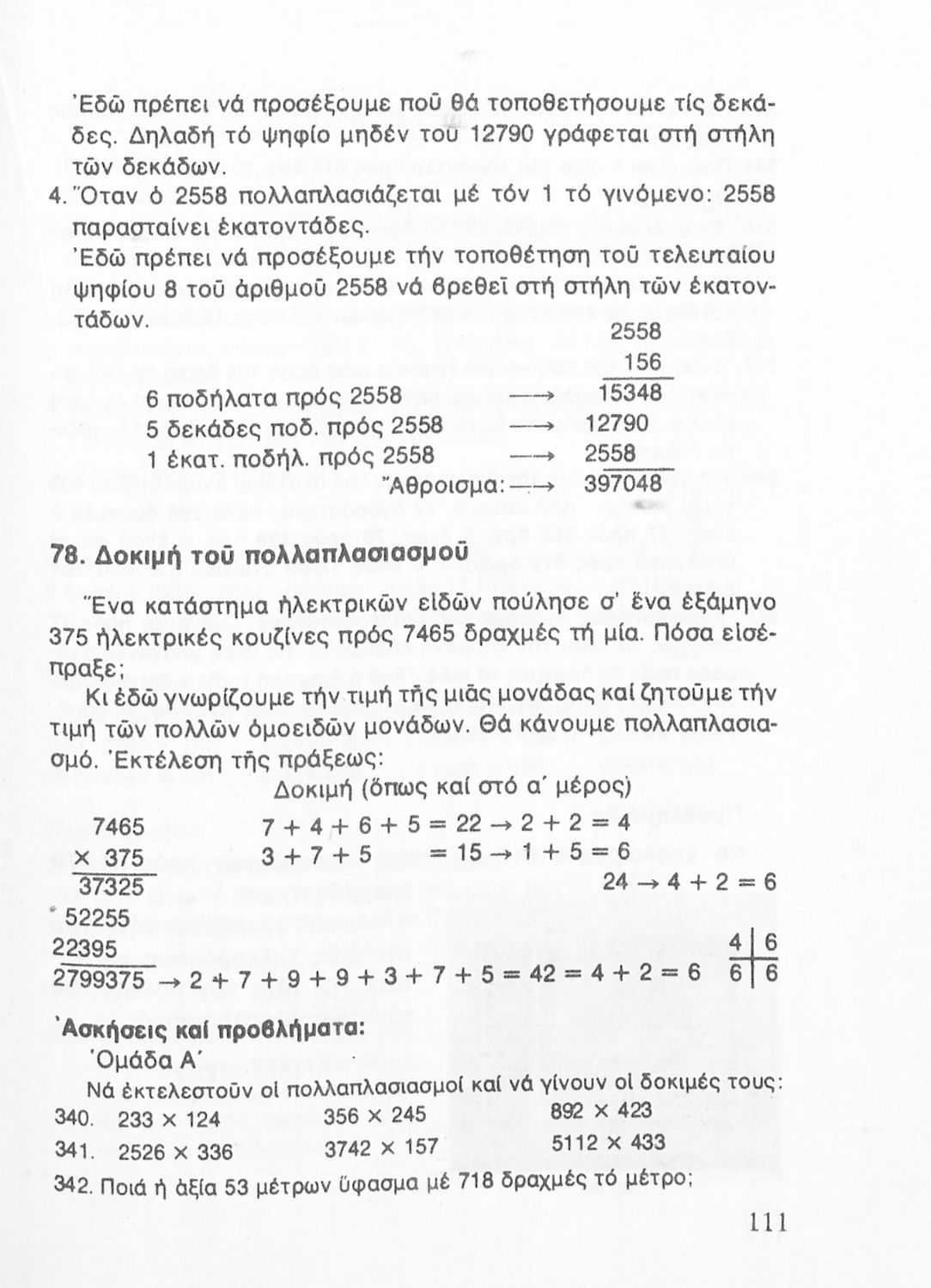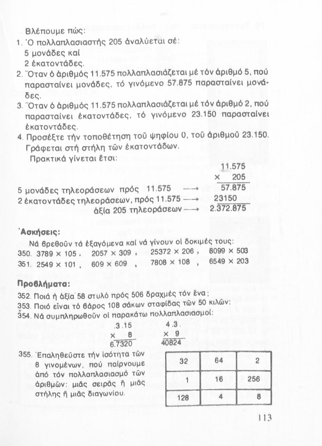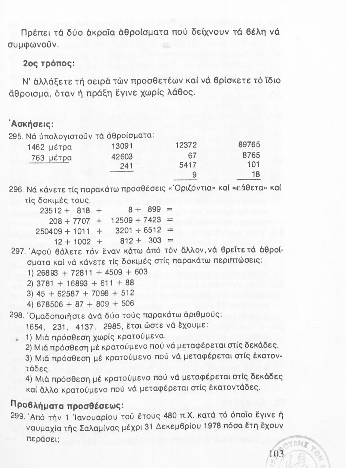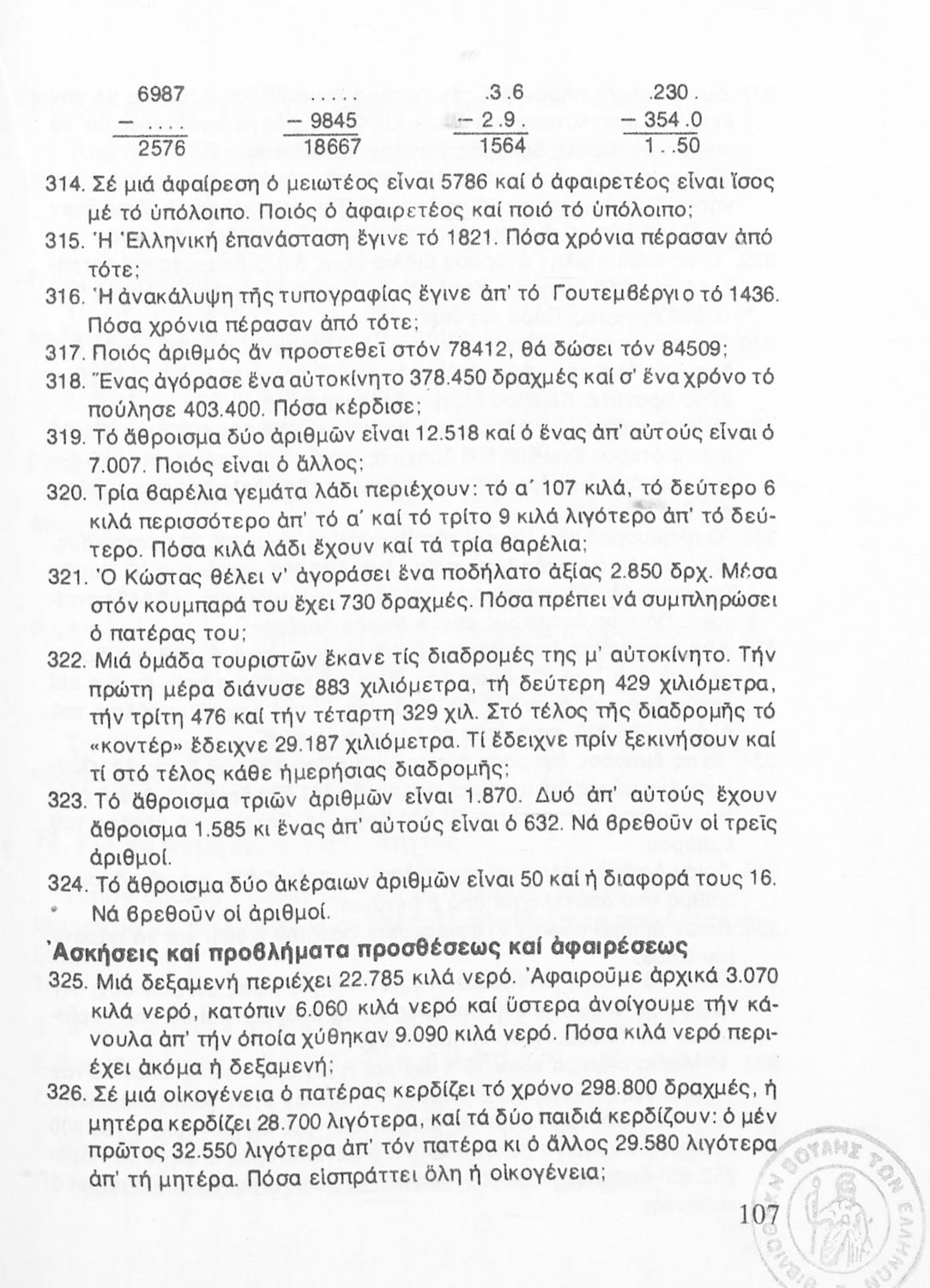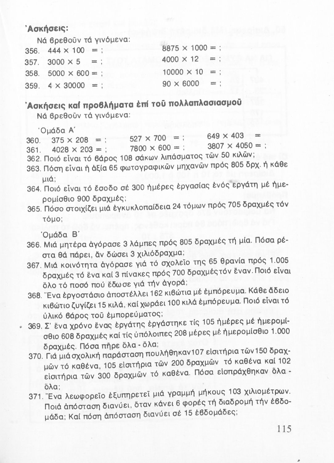 Σχολικό εγχειρίδιο Αριθμητικής Δ΄ Δημοτικού χωρισμένο σε πρακτικά προβλήματα και τις λύσεις τους που περιλαμβάνει και κάποια στοιχεία Γεωμετρίας.