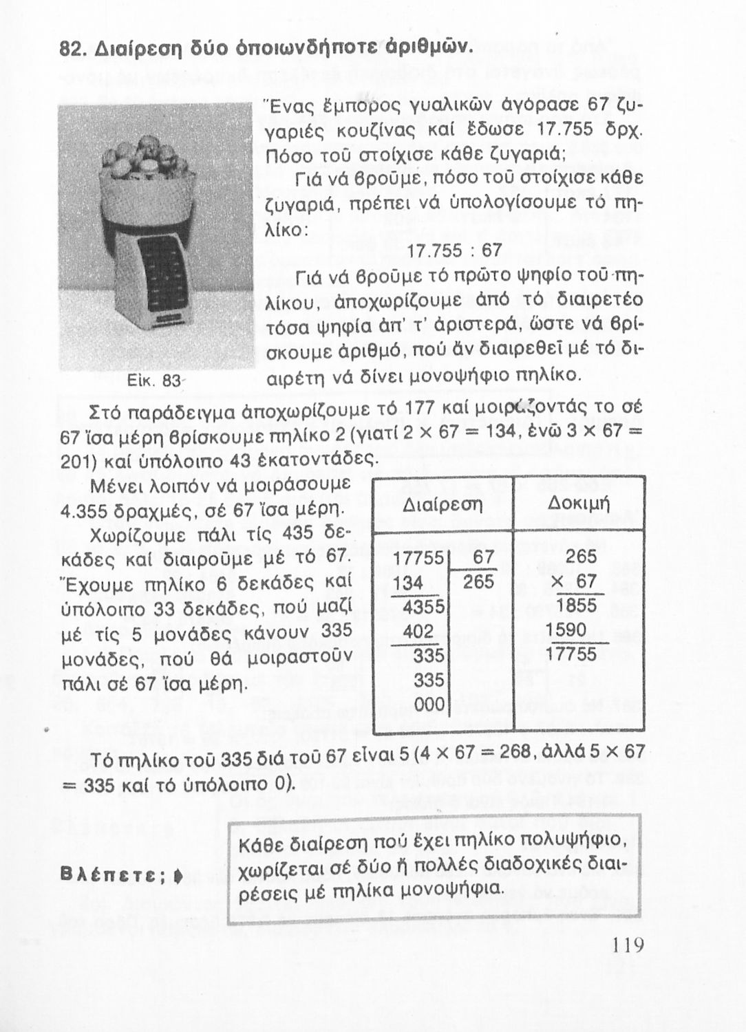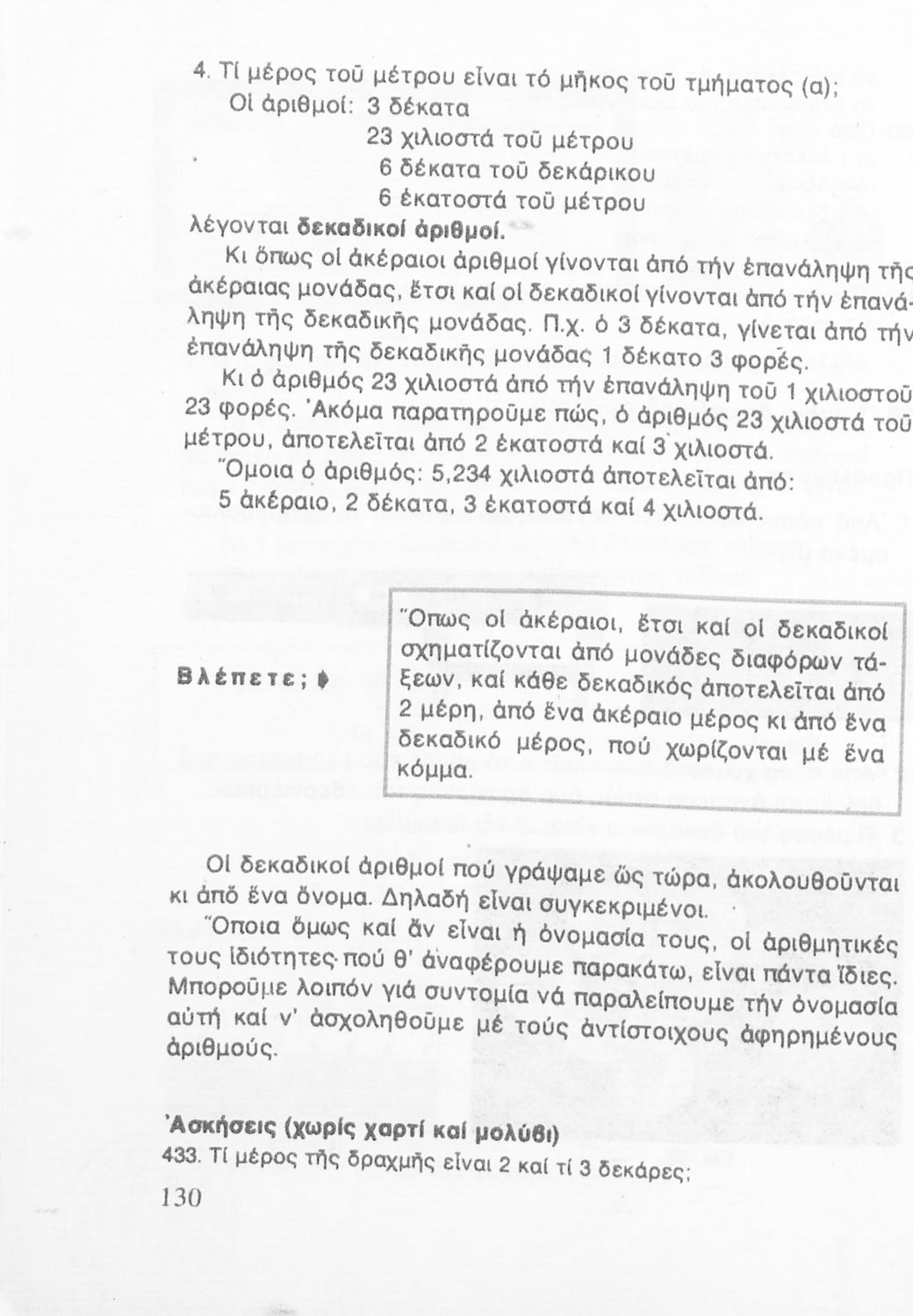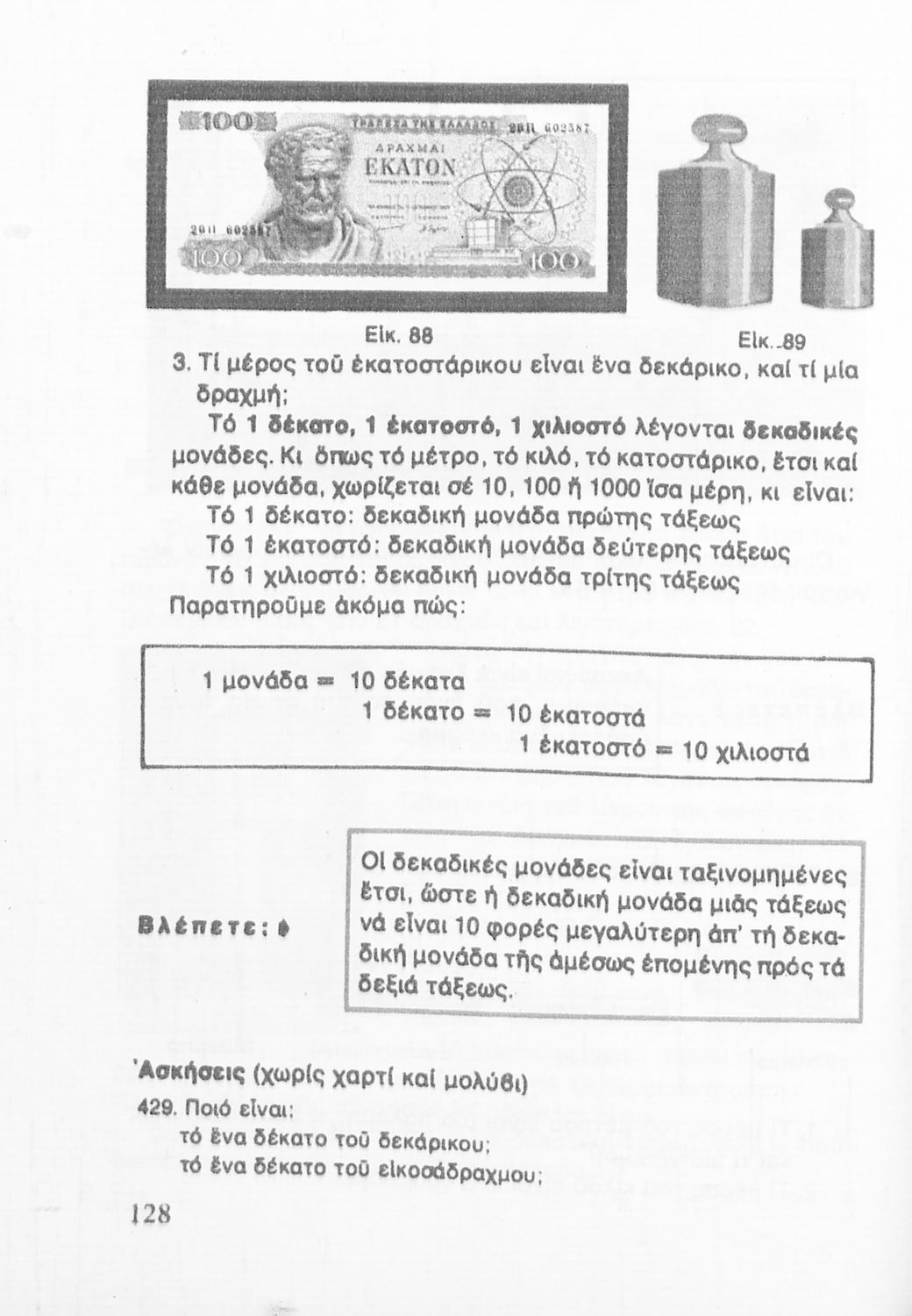 Σχολικό εγχειρίδιο Αριθμητικής Δ΄ Δημοτικού χωρισμένο σε πρακτικά προβλήματα και τις λύσεις τους που περιλαμβάνει και κάποια στοιχεία Γεωμετρίας.