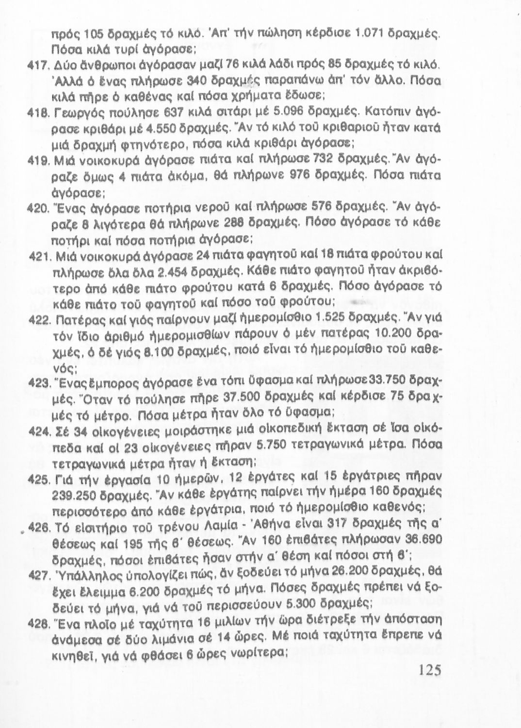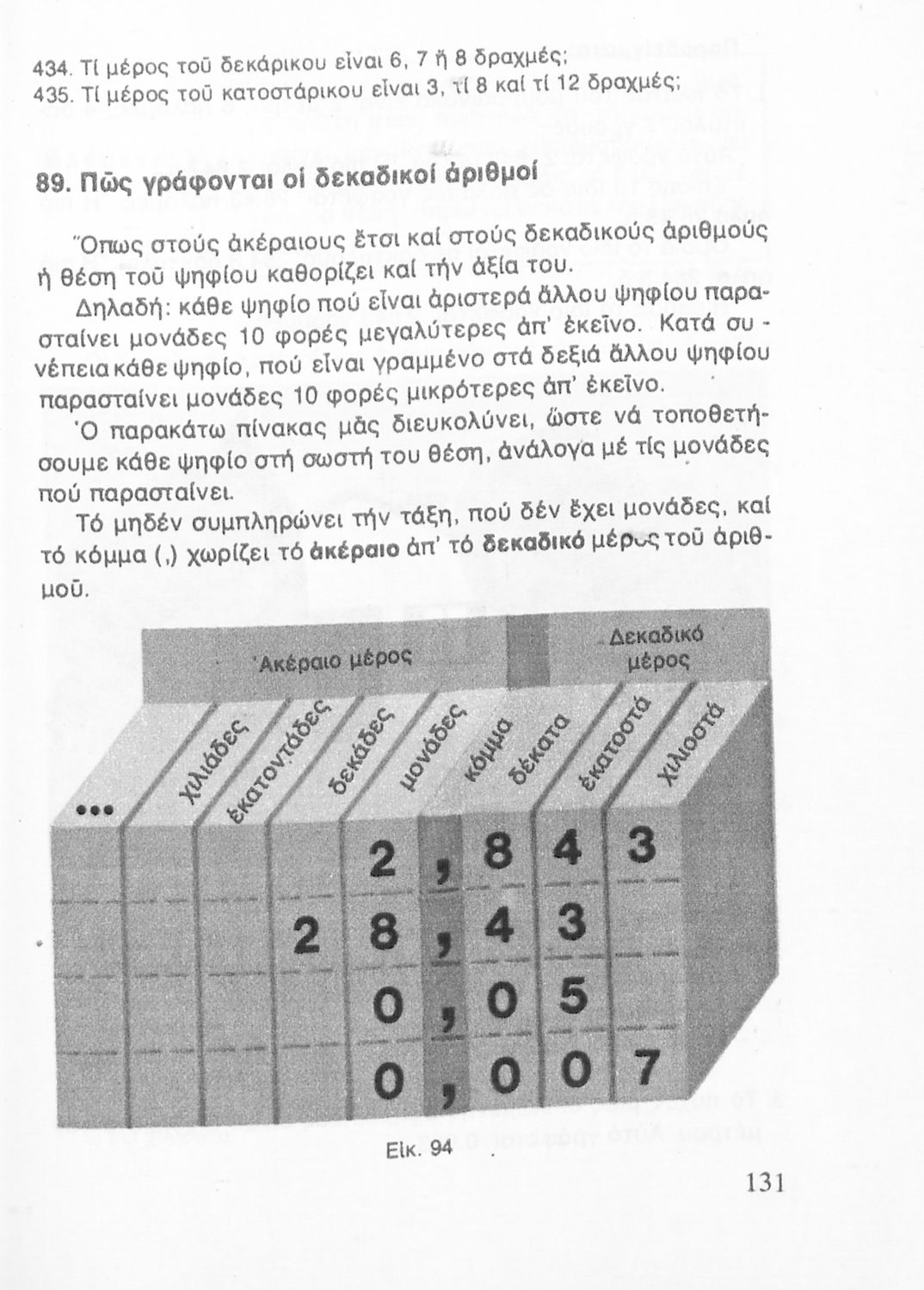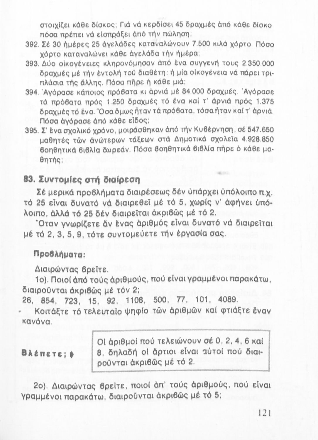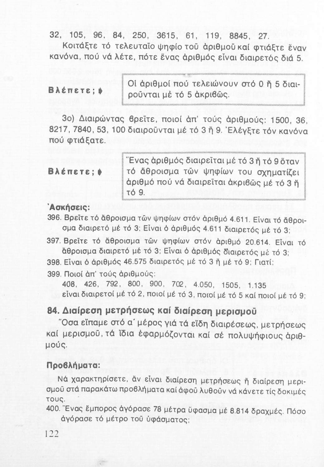 Σχολικό εγχειρίδιο Αριθμητικής Δ΄ Δημοτικού χωρισμένο σε πρακτικά προβλήματα και τις λύσεις τους που περιλαμβάνει και κάποια στοιχεία Γεωμετρίας.