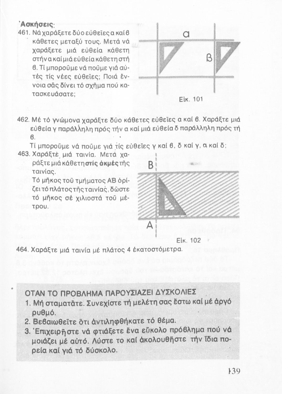 Σχολικό εγχειρίδιο Μαθηματικών ΣΤ΄ Δημοτικού που περιλαμβάνει ασκήσεις λογιστικού χαρακτήρα και ασκήσεις μέτρησης γεωμετρικών σχημάτων. Φέρει το σύμβολο της δικτατορίας.