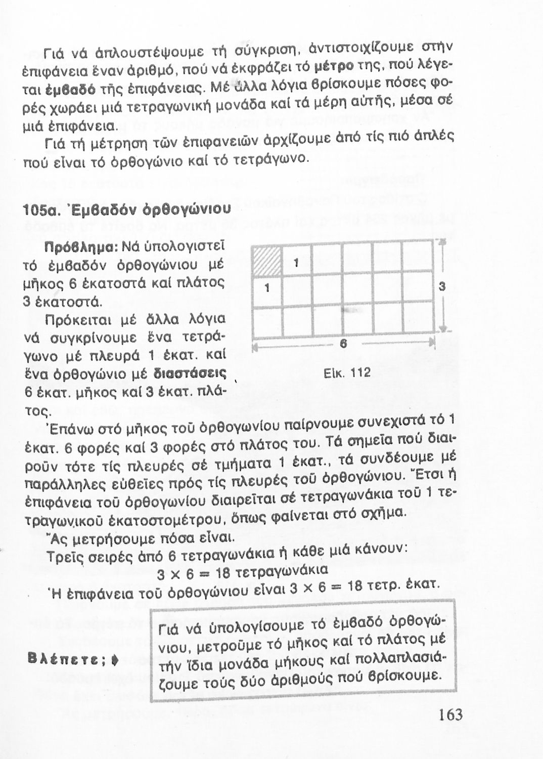 Σχολικό εγχειρίδιο Μαθηματικών ΣΤ΄ Δημοτικού που περιλαμβάνει ασκήσεις λογιστικού χαρακτήρα και ασκήσεις μέτρησης γεωμετρικών σχημάτων. Φέρει το σύμβολο της δικτατορίας.