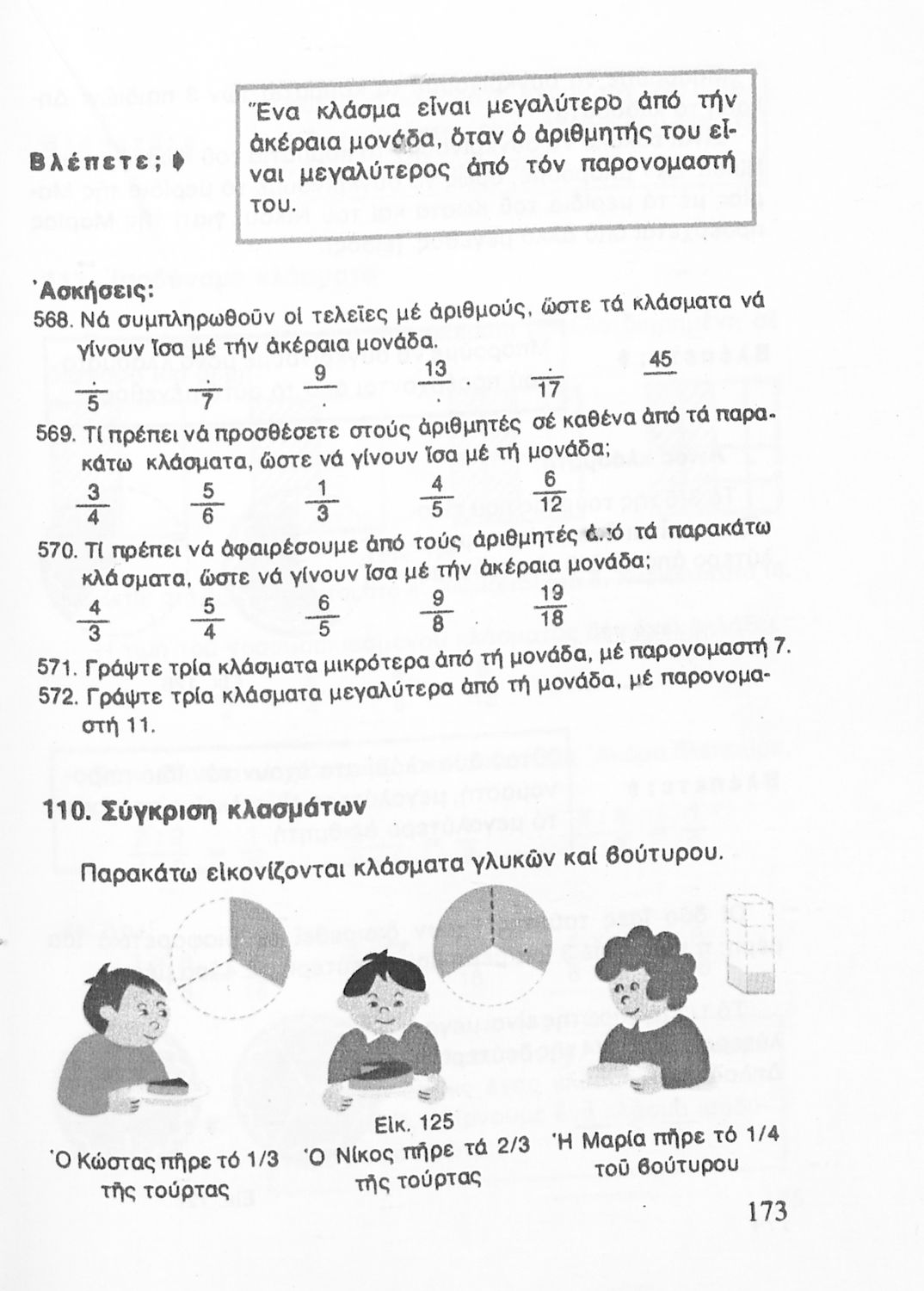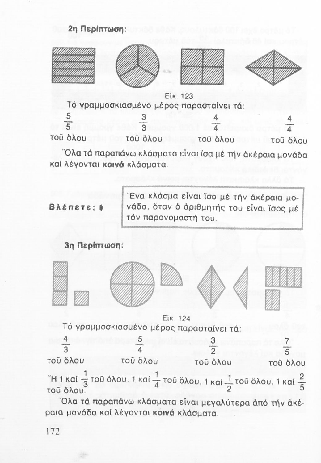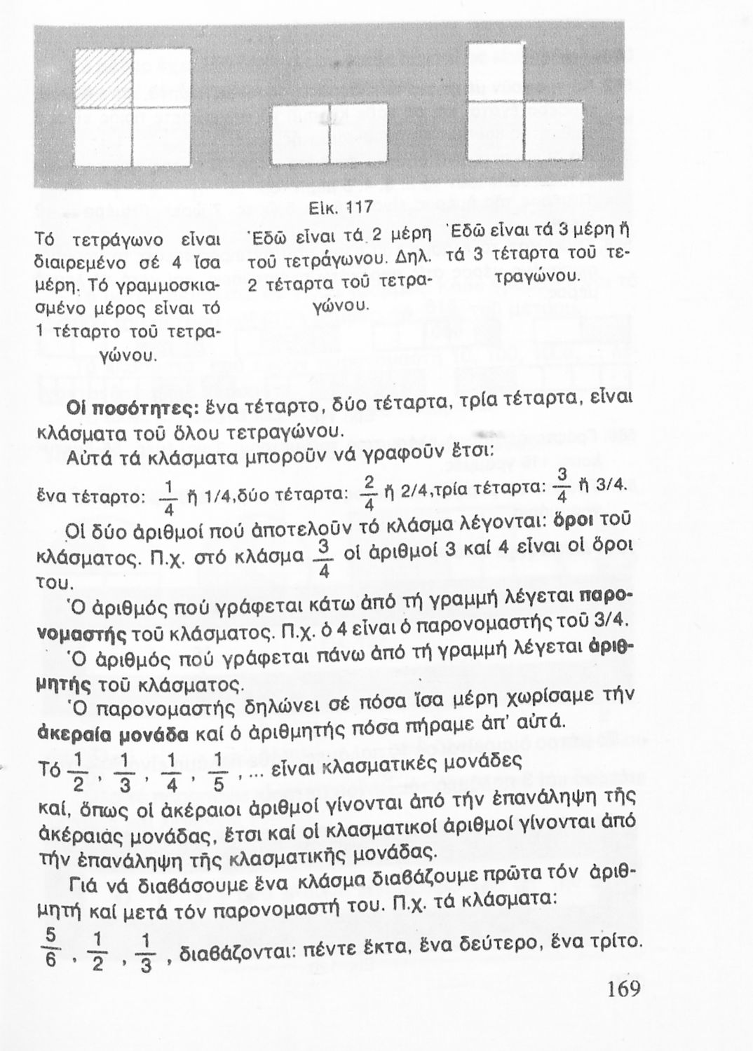 Σχολικό εγχειρίδιο Αριθμητικής Δ΄ Δημοτικού χωρισμένο σε πρακτικά προβλήματα και τις λύσεις τους που εστιάζει στις πράξεις με ακέραιους και συμμιγείς αριθμούς και περιλαμβάνει στοιχεία Γεωμετρίας.