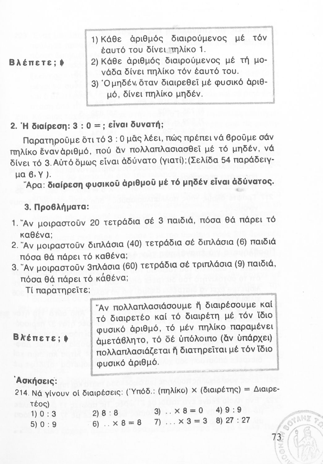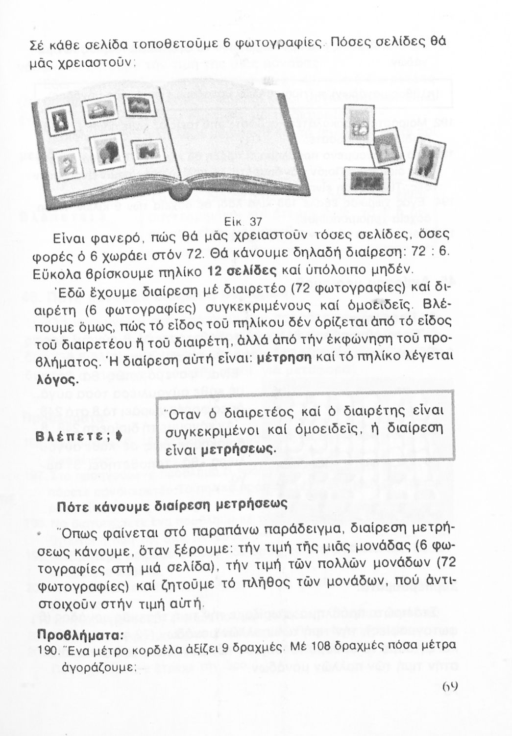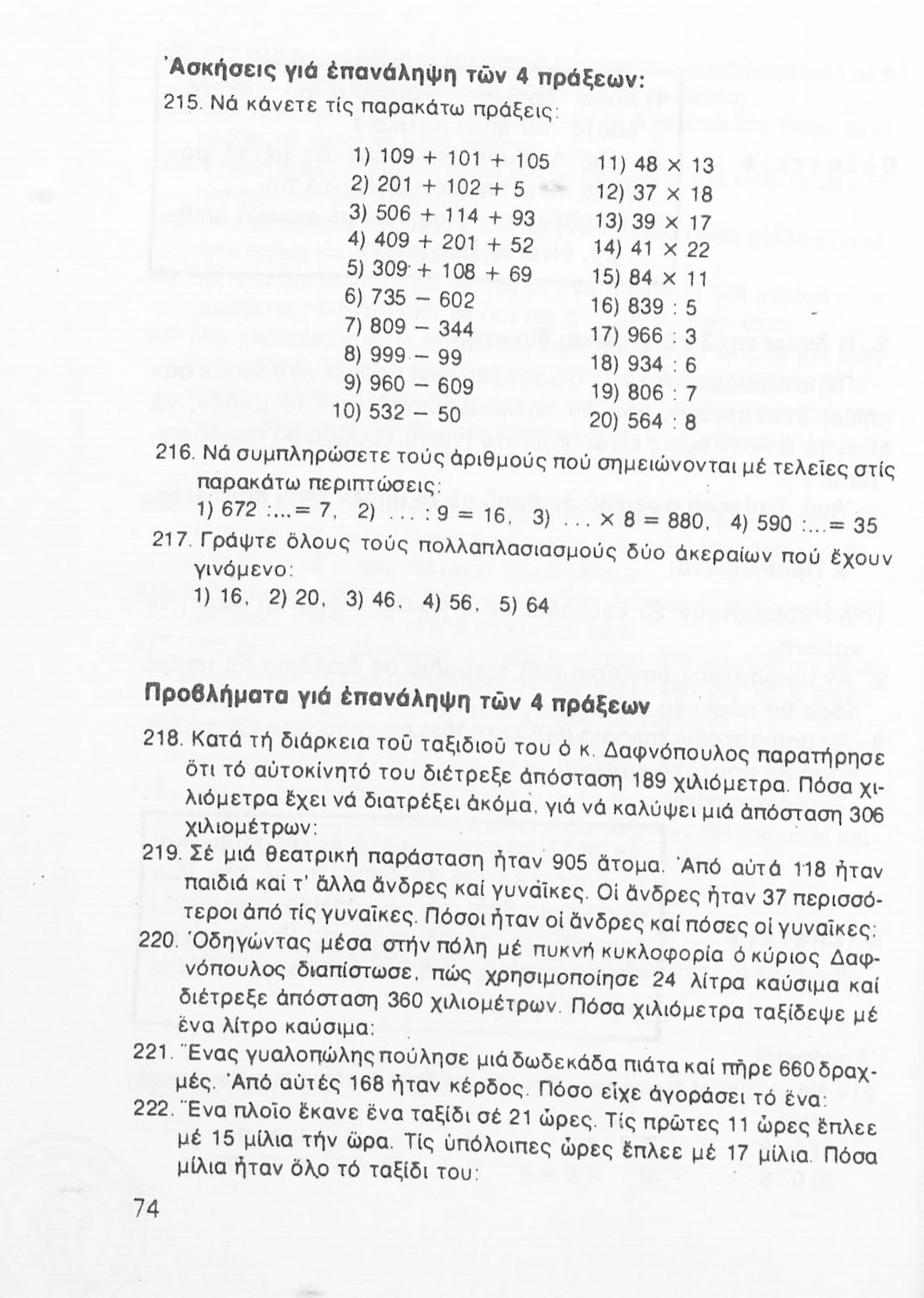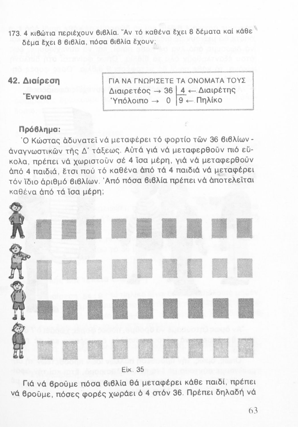 Σχολικό εγχειρίδιο Αριθμητικής Δ΄ Δημοτικού χωρισμένο σε πρακτικά προβλήματα και τις λύσεις τους που περιλαμβάνει και κάποια στοιχεία Γεωμετρίας.