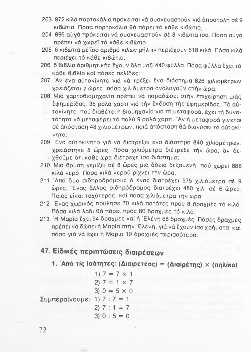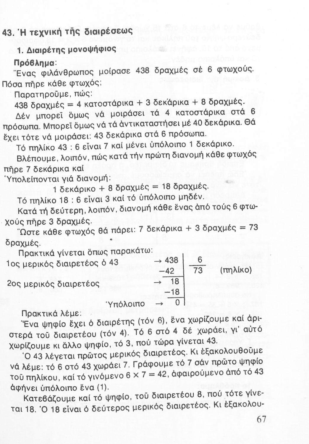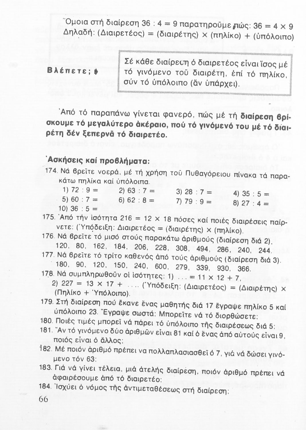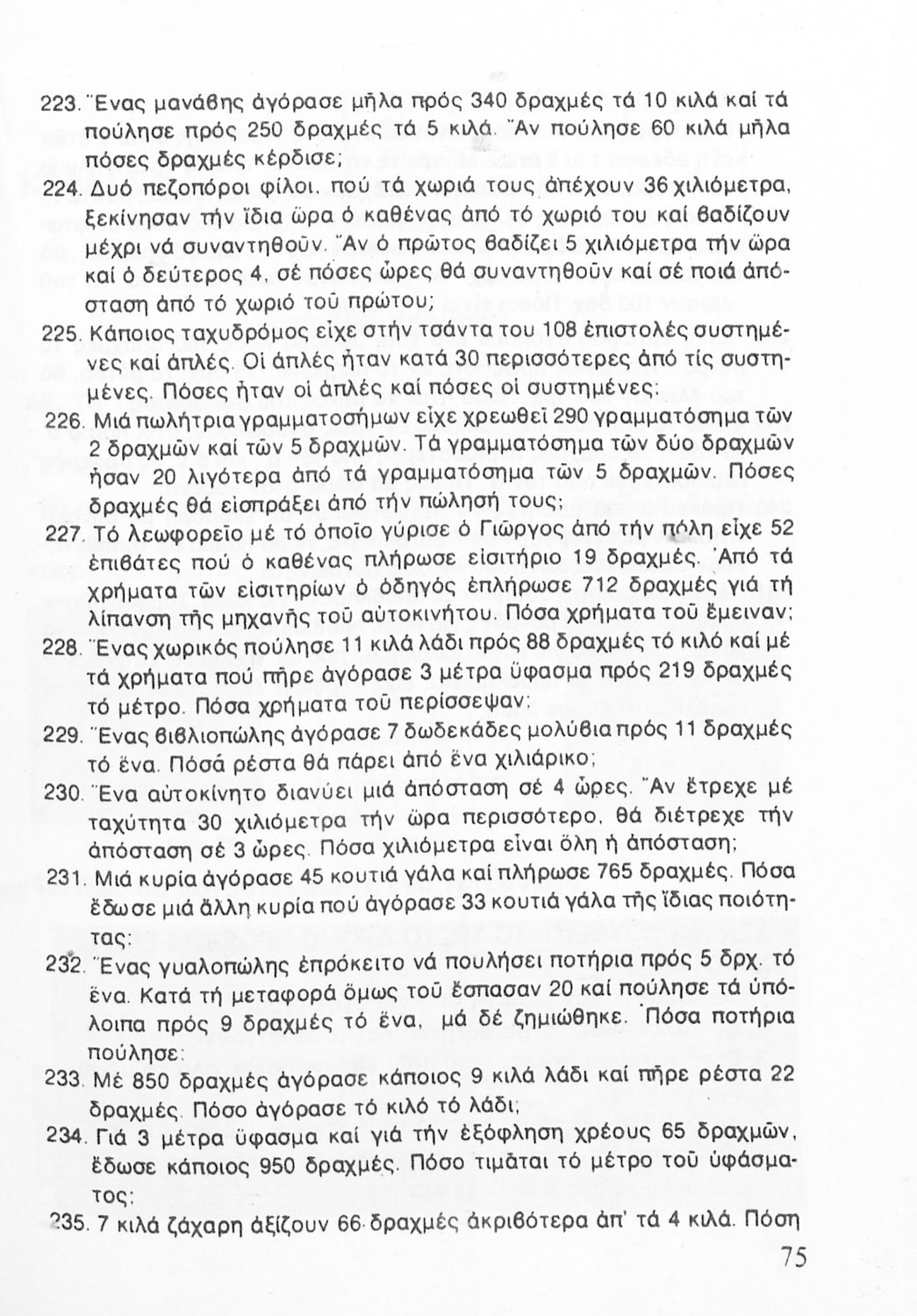 Σχολικό εγχειρίδιο Αριθμητικής Δ΄ Δημοτικού χωρισμένο σε πρακτικά προβλήματα και τις λύσεις τους που περιλαμβάνει και κάποια στοιχεία Γεωμετρίας.