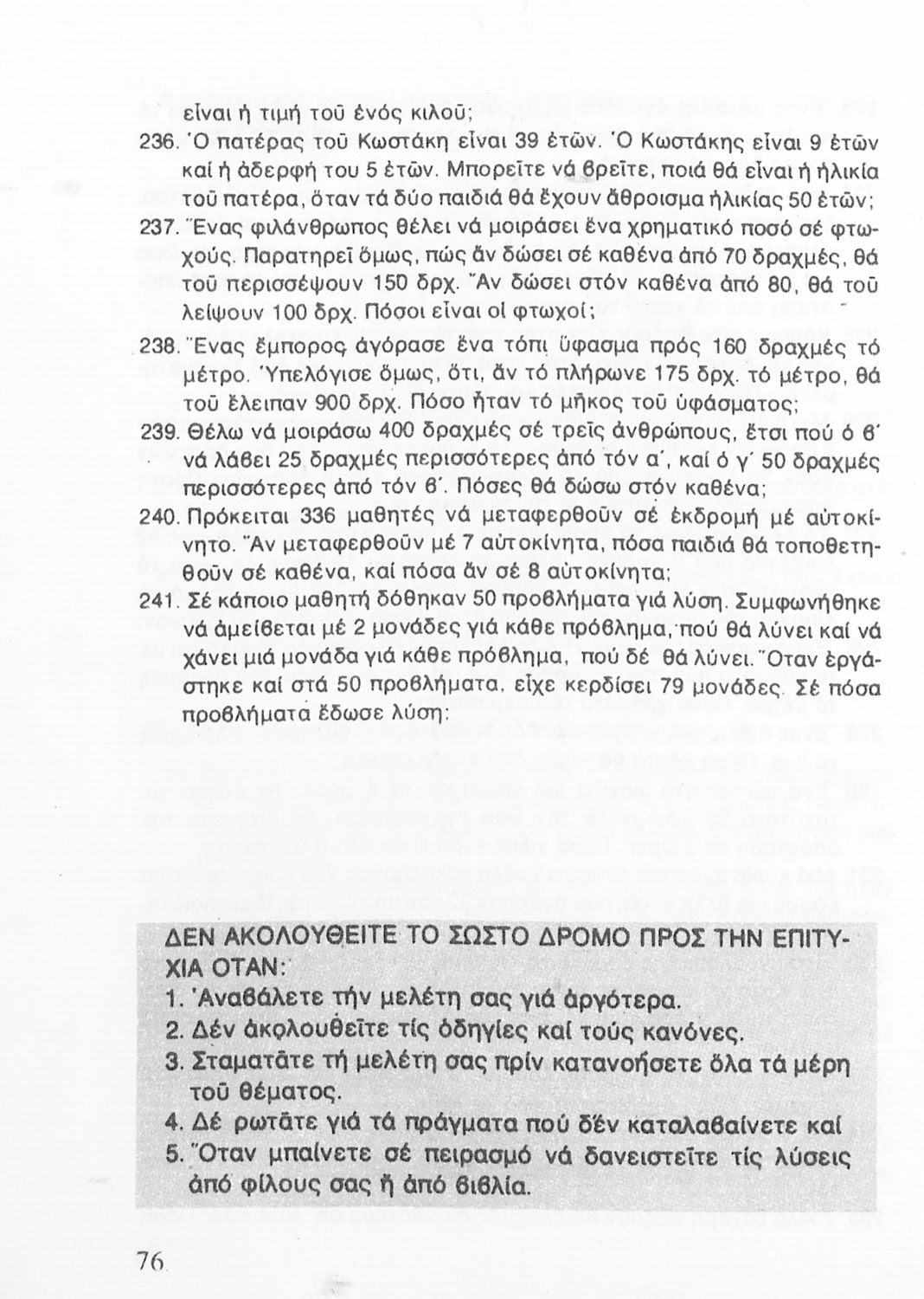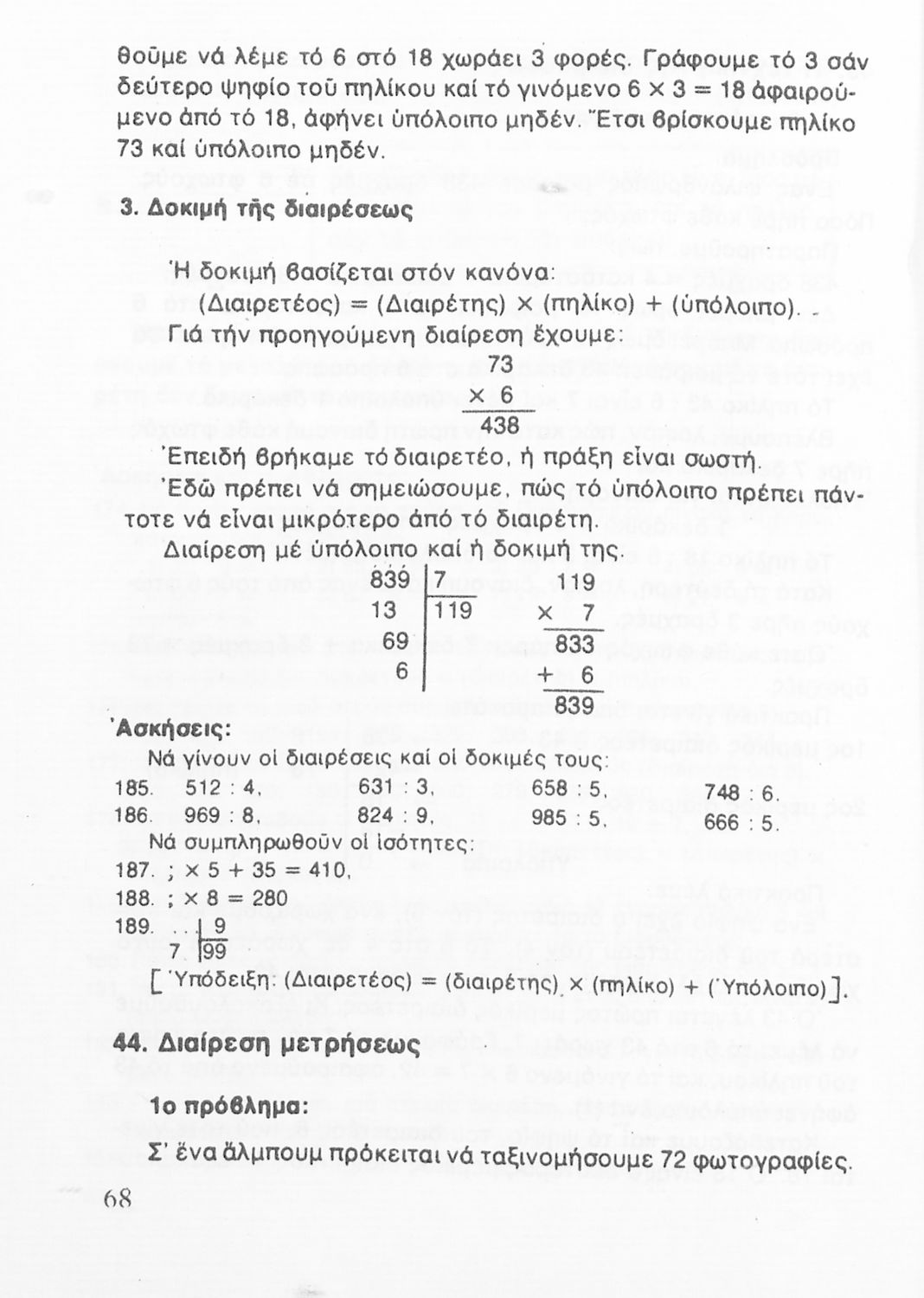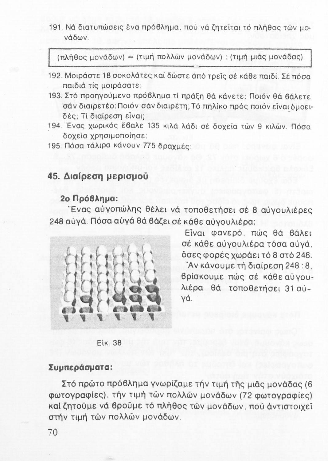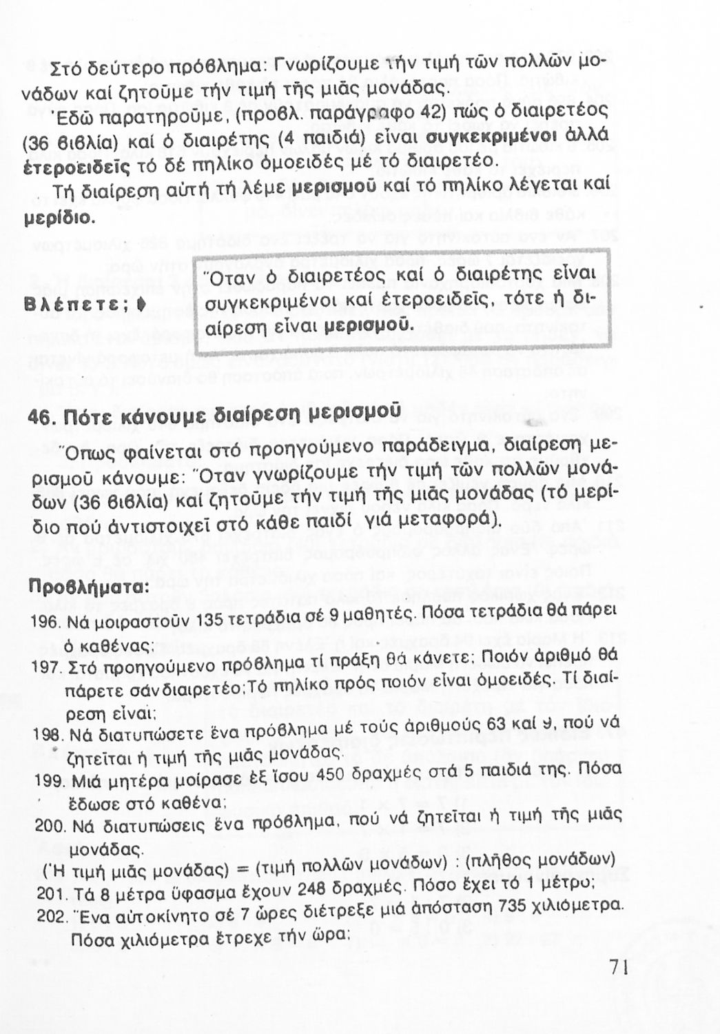 Σχολικό εγχειρίδιο Αριθμητικής Δ΄ Δημοτικού χωρισμένο σε πρακτικά προβλήματα και τις λύσεις τους που περιλαμβάνει και κάποια στοιχεία Γεωμετρίας.