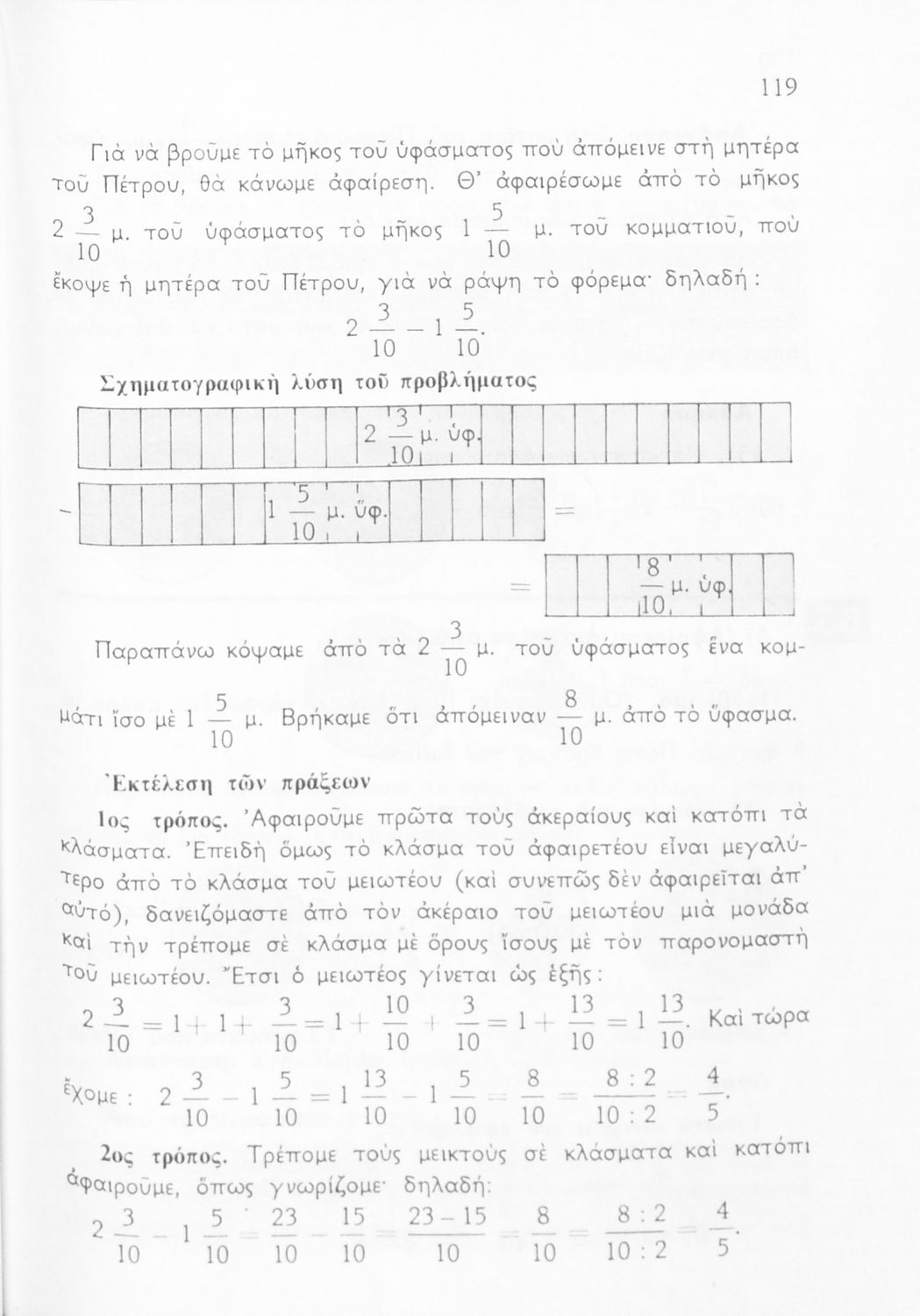 Μαθητικό βοήθημα Μαθηματικών Ε΄ Δημοτικού που περιέχει ασκήσεις και προβλήματα αριθμητικής με κλάσματα
