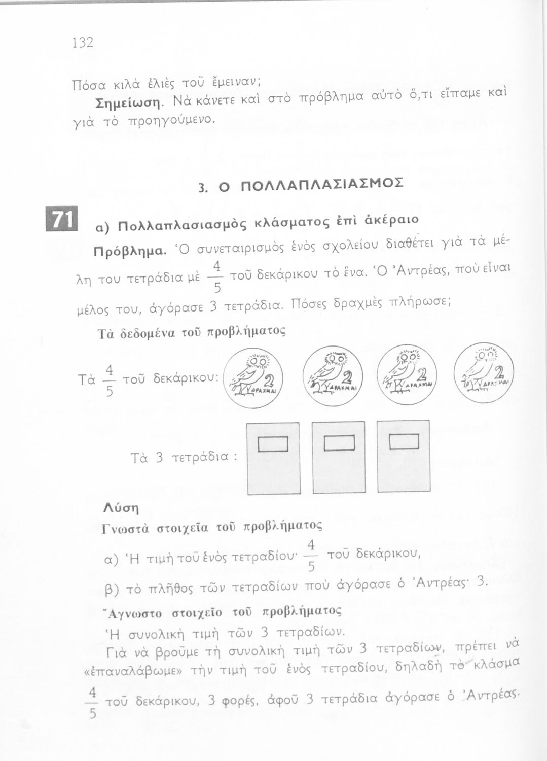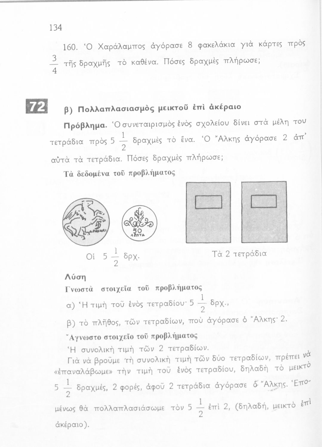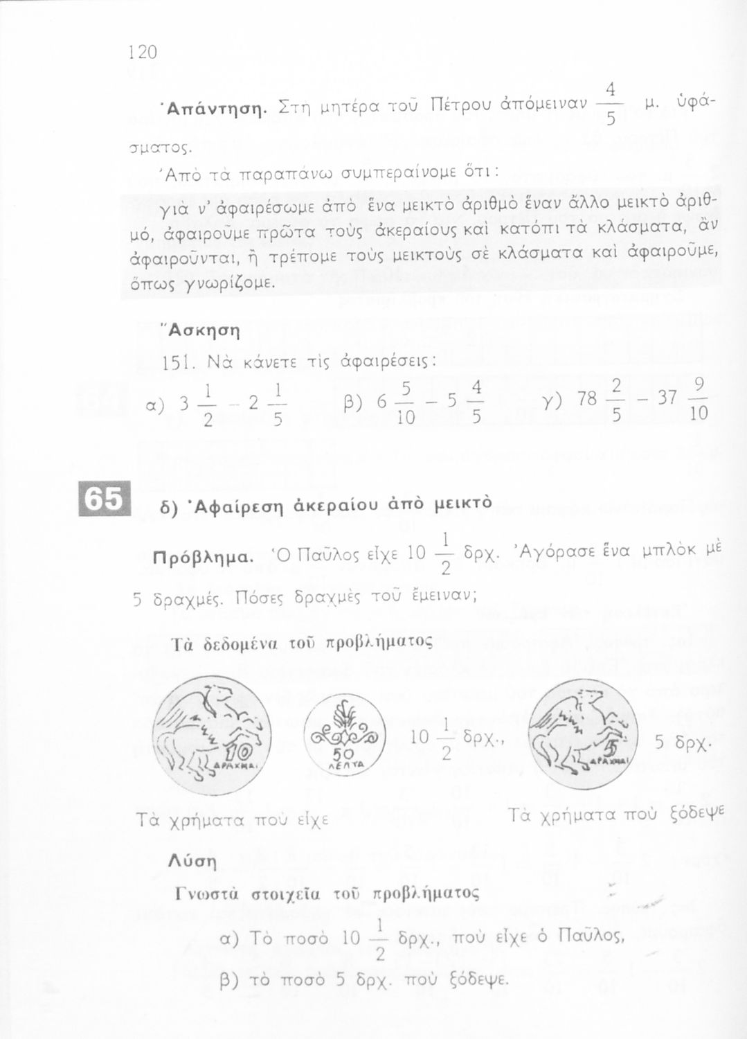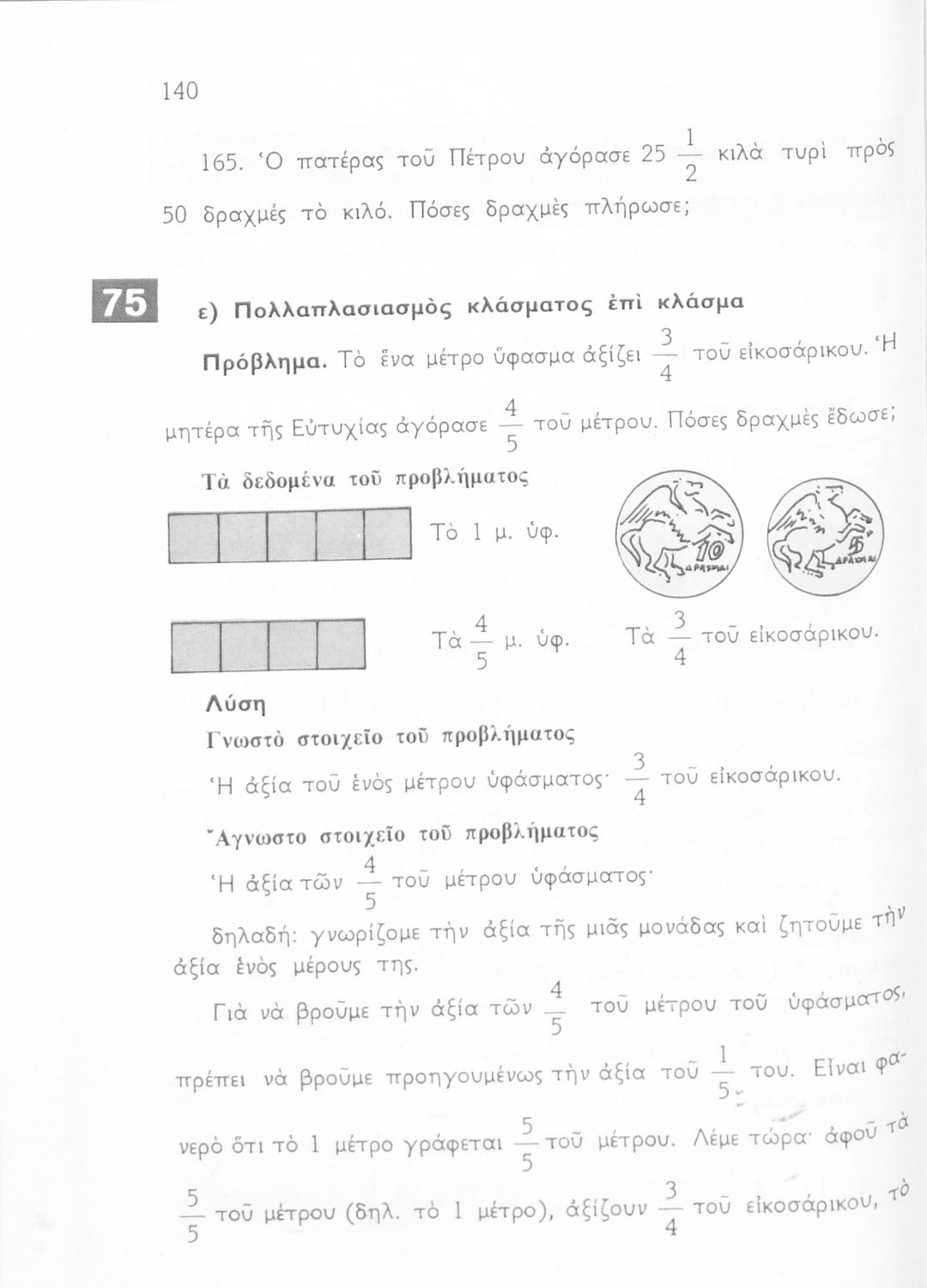 Σχολικό εγχειρίδιο Αριθμητικής και Γεωμετρίας Ε΄ Δημοτικού που περιλαμβάνει προβλήματα και της λύσεις τους.