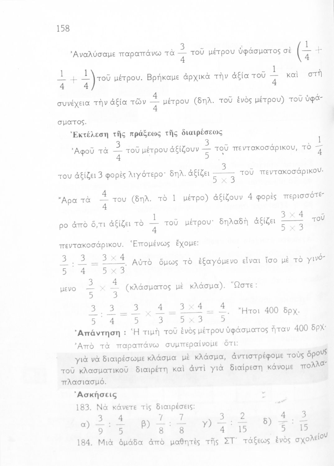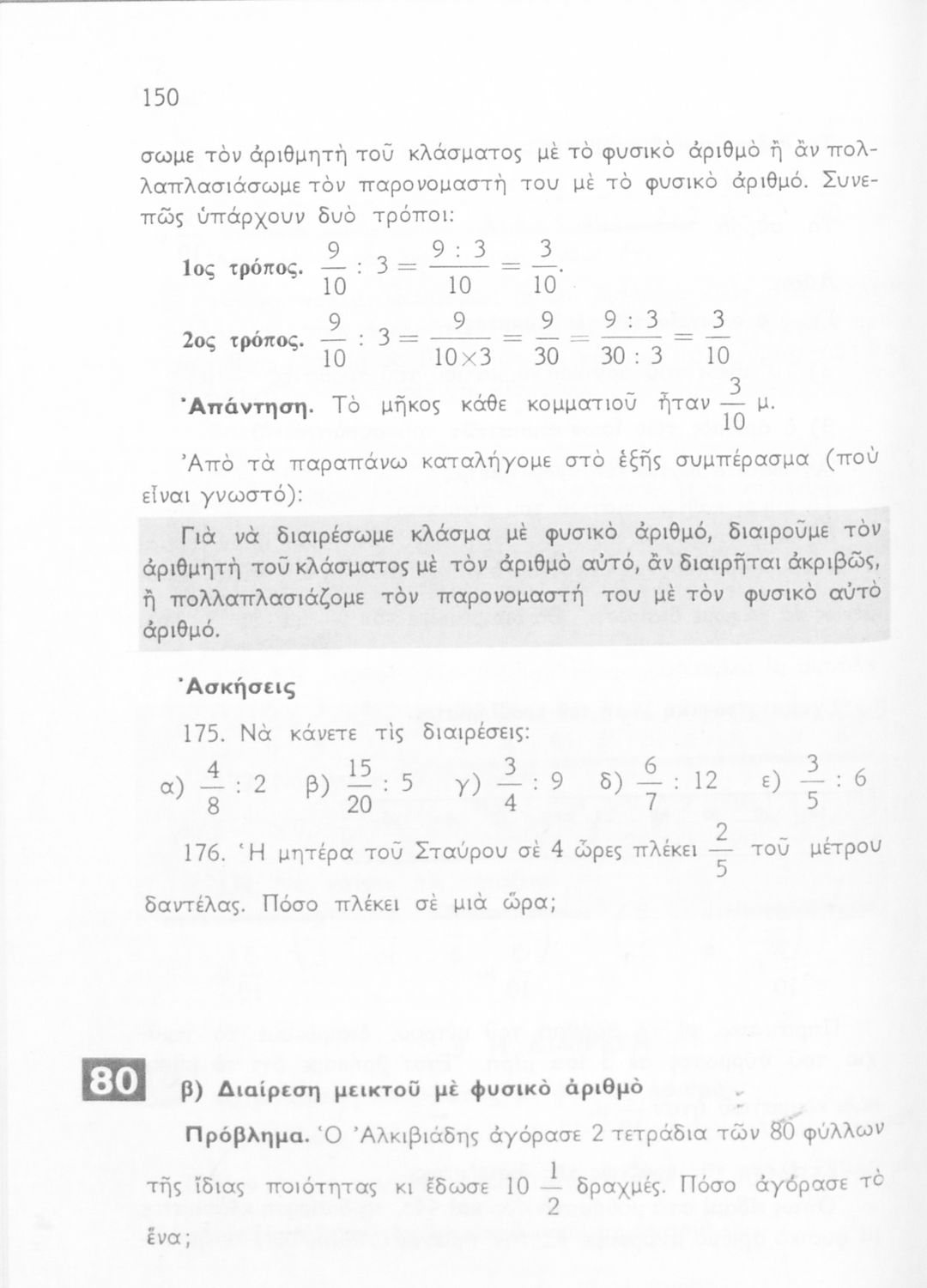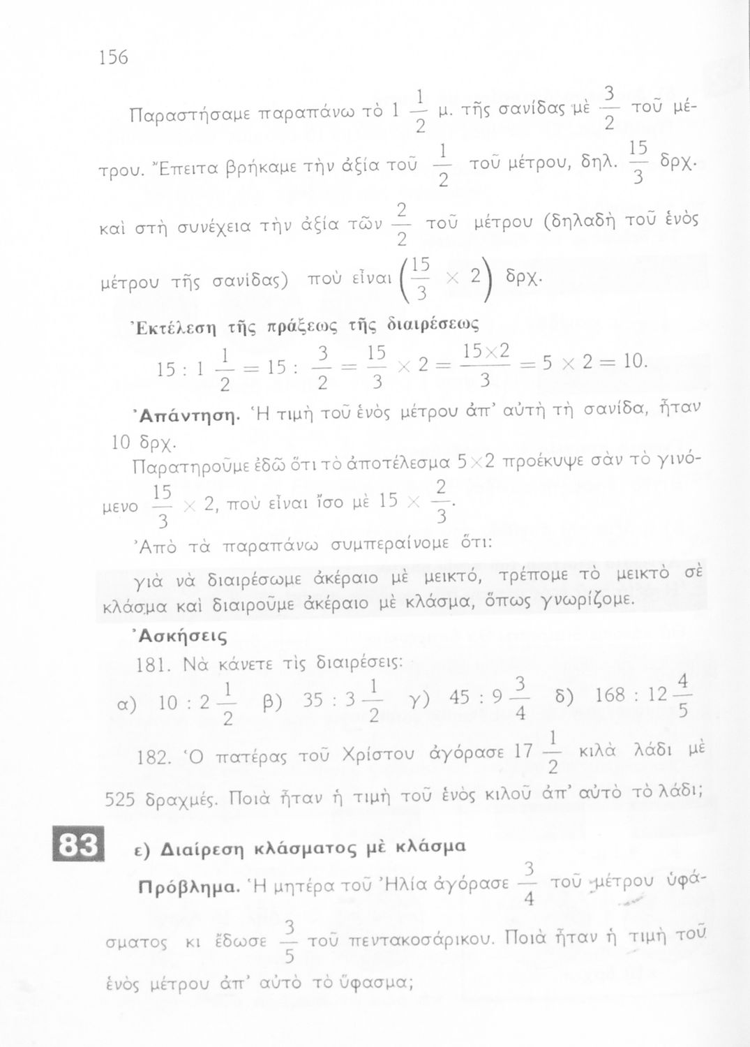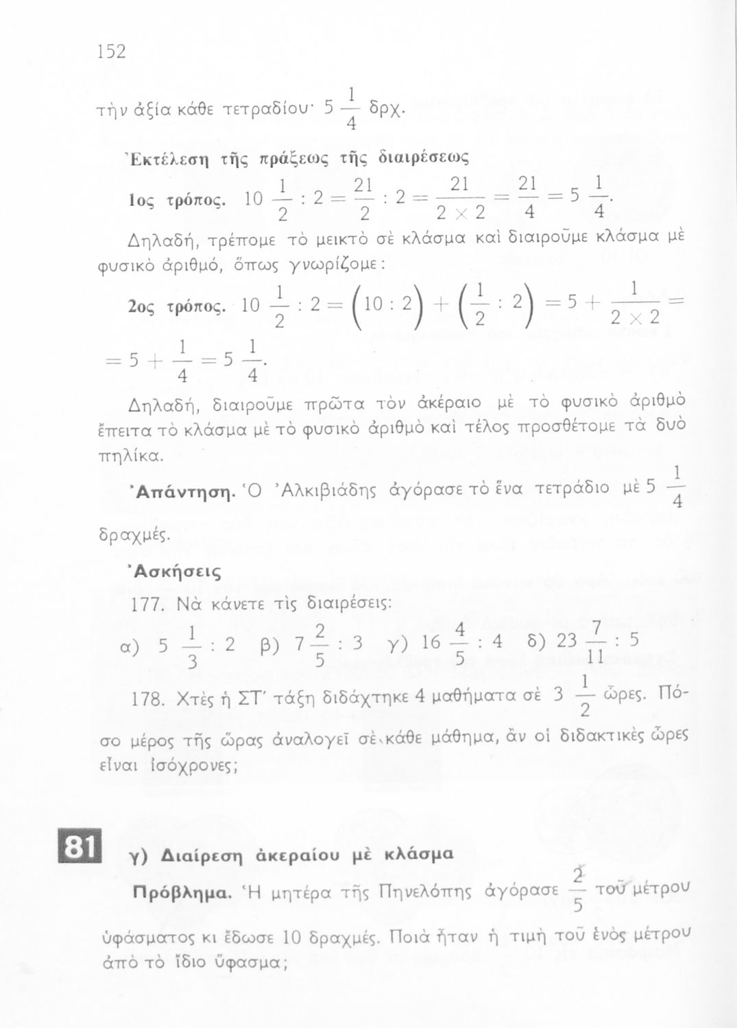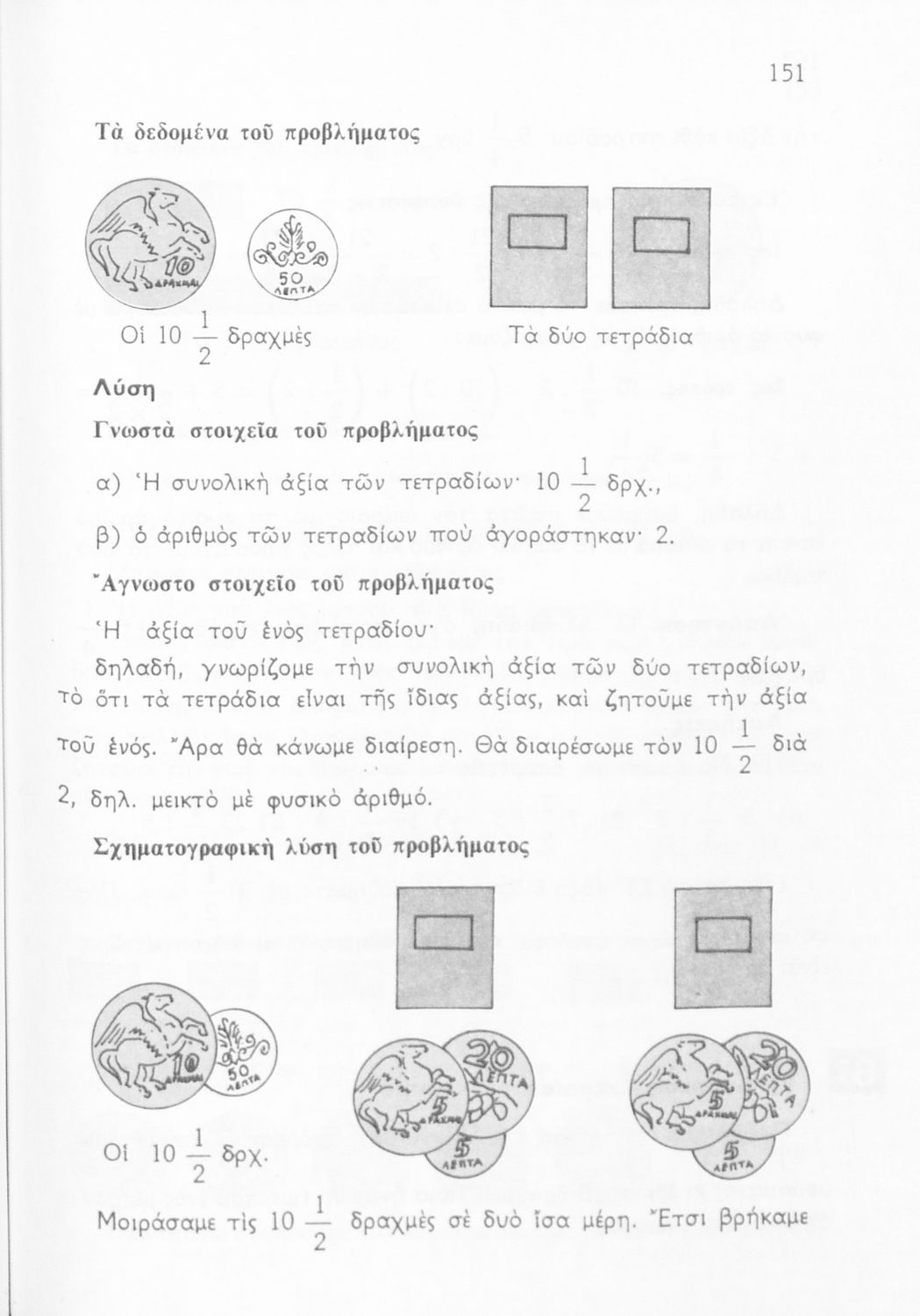 Σχολικό εγχειρίδιο Αριθμητικής και Γεωμετρίας Ε΄ Δημοτικού που περιλαμβάνει προβλήματα και της λύσεις τους.