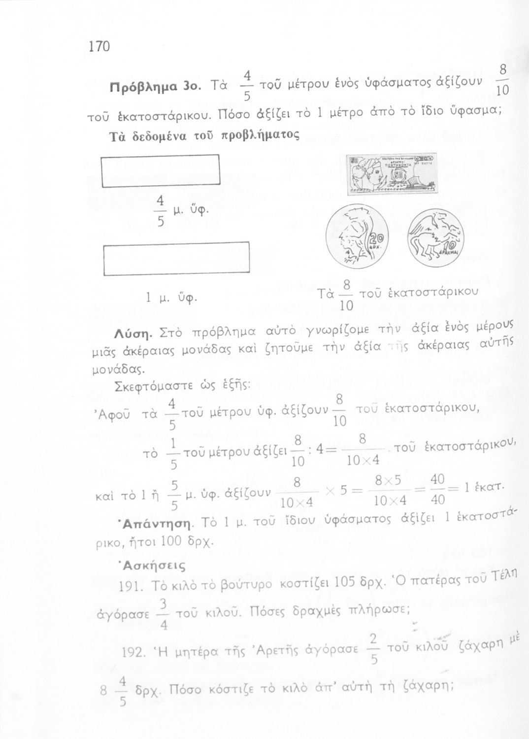 Σχολικό εγχειρίδιο Αριθμητικής και Γεωμετρίας Ε΄ Δημοτικού που περιλαμβάνει προβλήματα και της λύσεις τους.