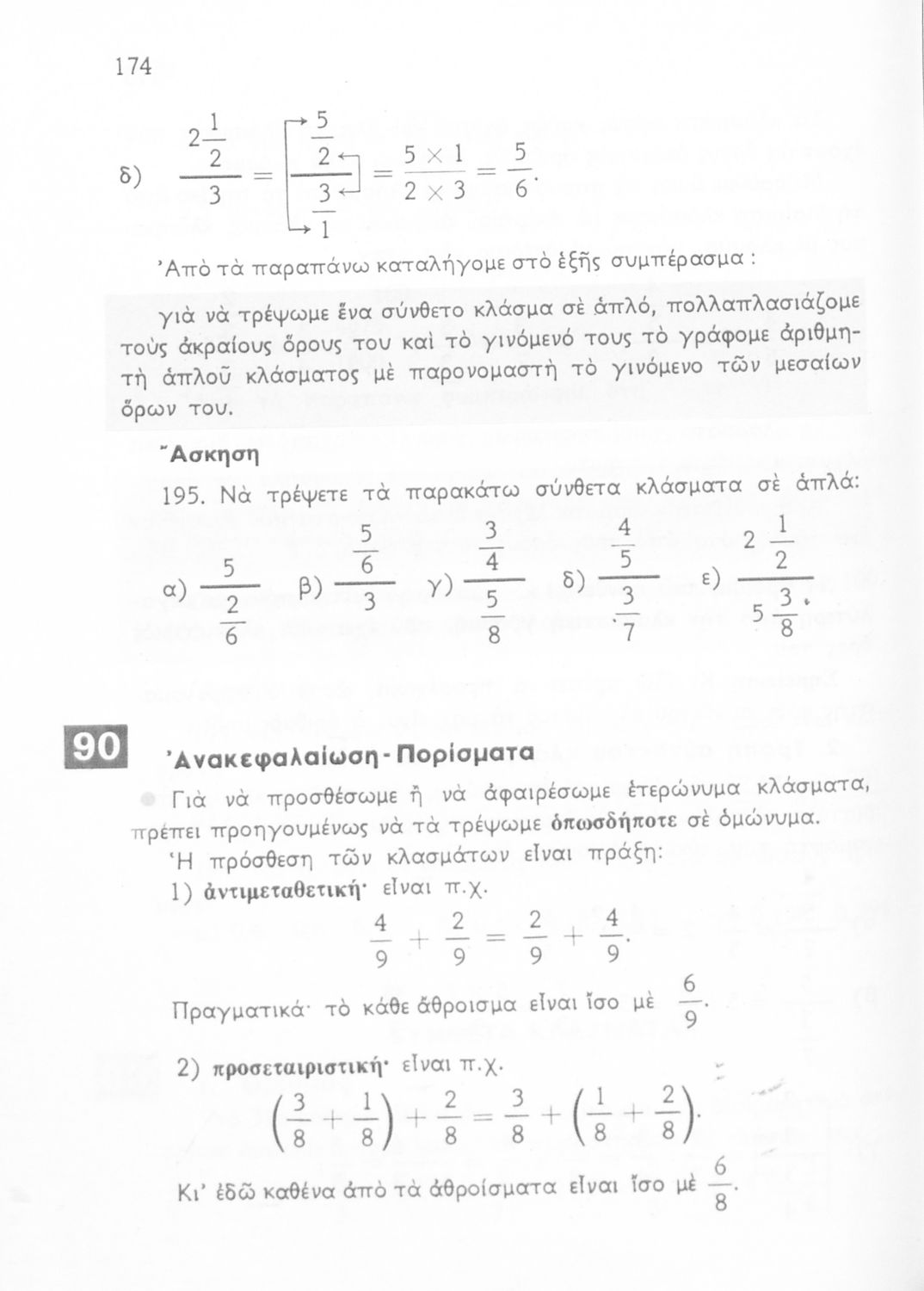 Μαθητικό βοήθημα Μαθηματικών Ε΄ Δημοτικού που περιέχει ασκήσεις και προβλήματα αριθμητικής με κλάσματα