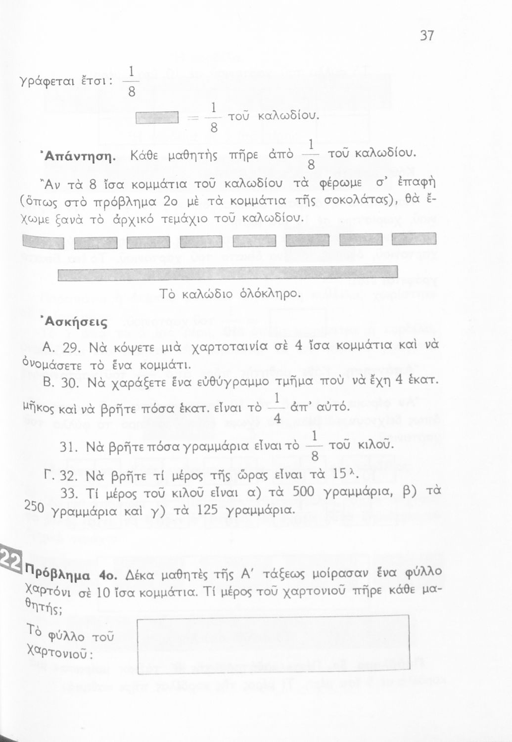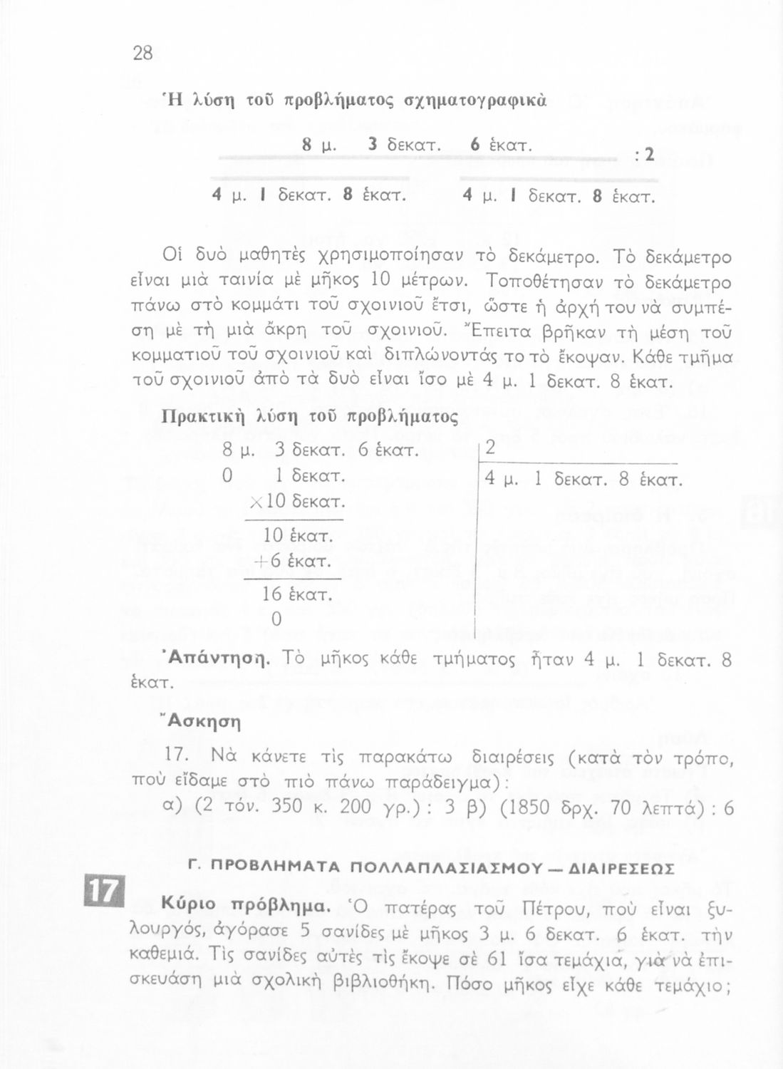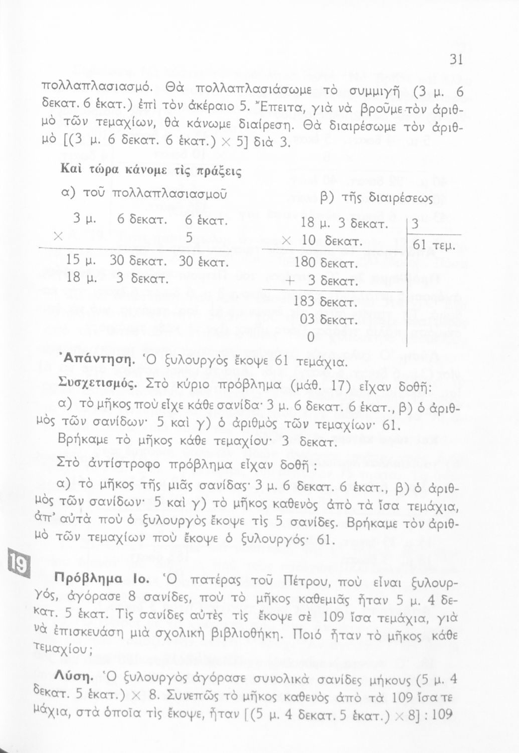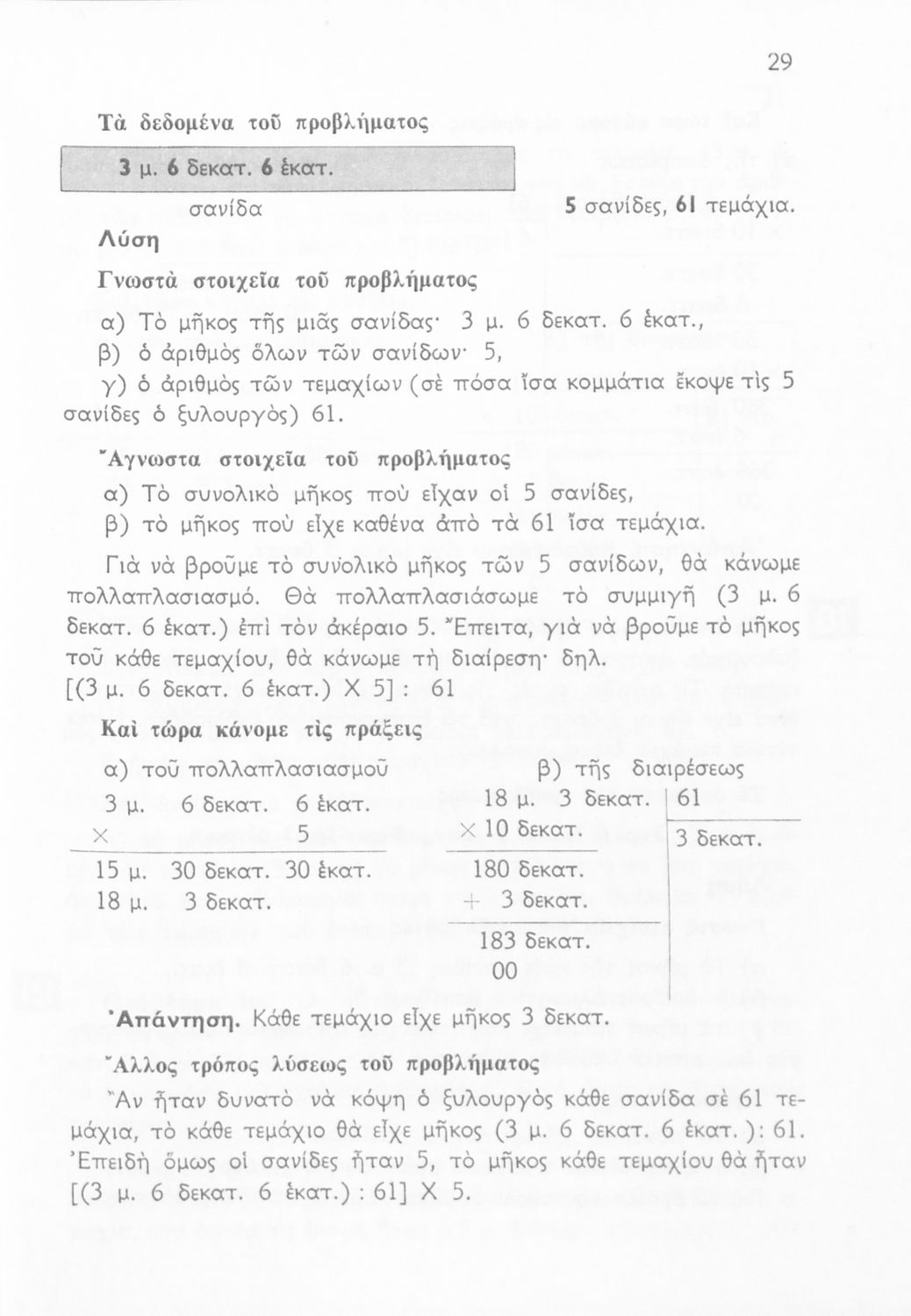 Σχολικό εγχειρίδιο Αριθμητικής και Γεωμετρίας Ε΄ Δημοτικού που περιλαμβάνει προβλήματα και της λύσεις τους.