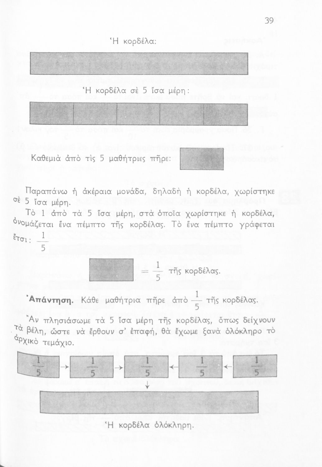 Σχολικό εγχειρίδιο Μαθηματικών Ε΄ Δημοτικού που εστιάζει στα προβλήματα αριθμητικής με κλάσματα και περιέχει ασκήσεις και προβλήματα γεωμετρίας.