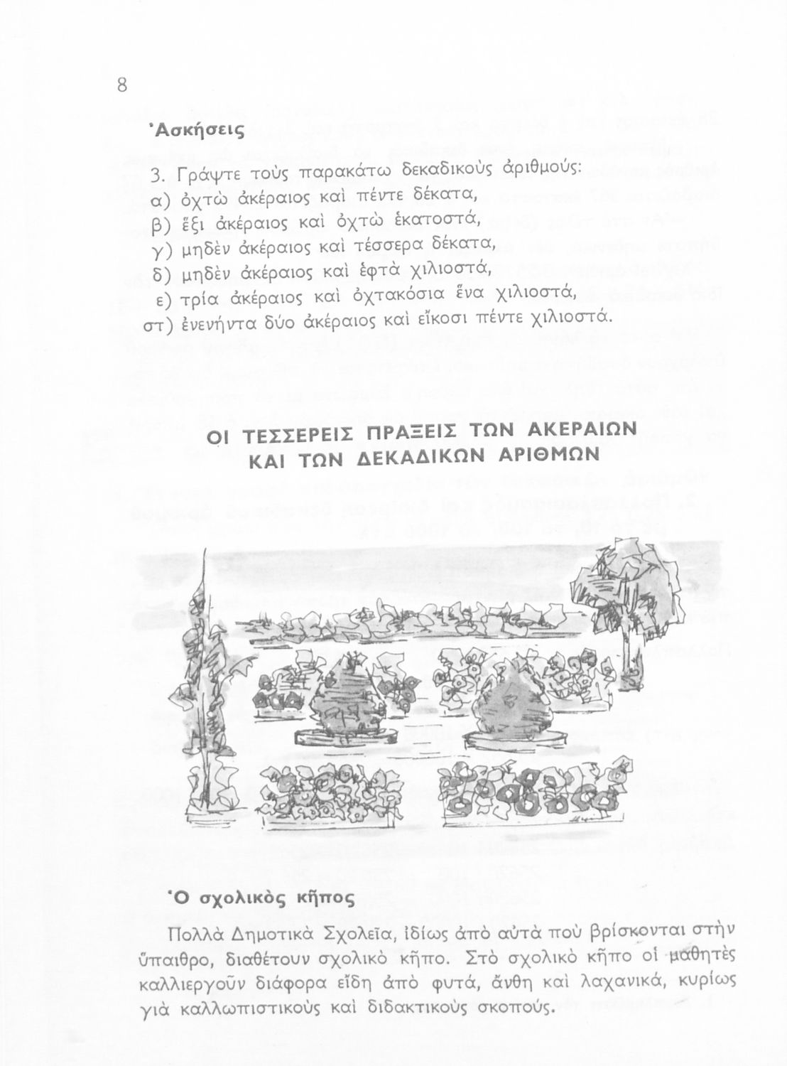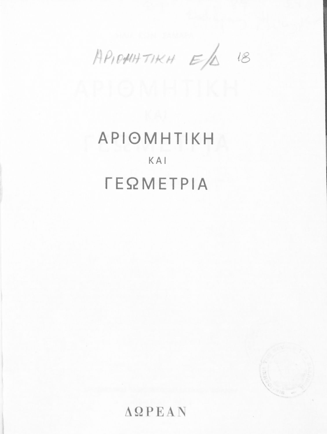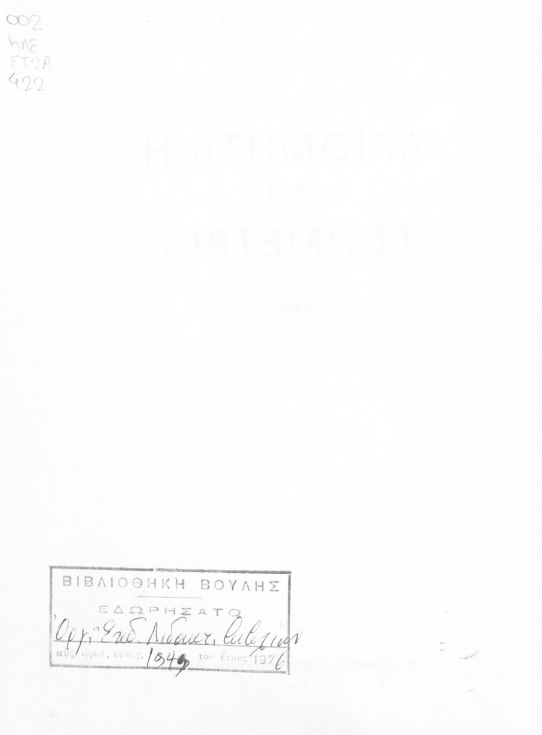 Σχολικό εγχειρίδιο Μαθηματικών Ε' Δημοτικού που περιέχει τις βασικές πράξεις αριθμητικής και παρουσιάζει τα κυριότερα γεωμετρικά σχήματα και τους τρόπους μέτρησής τους.