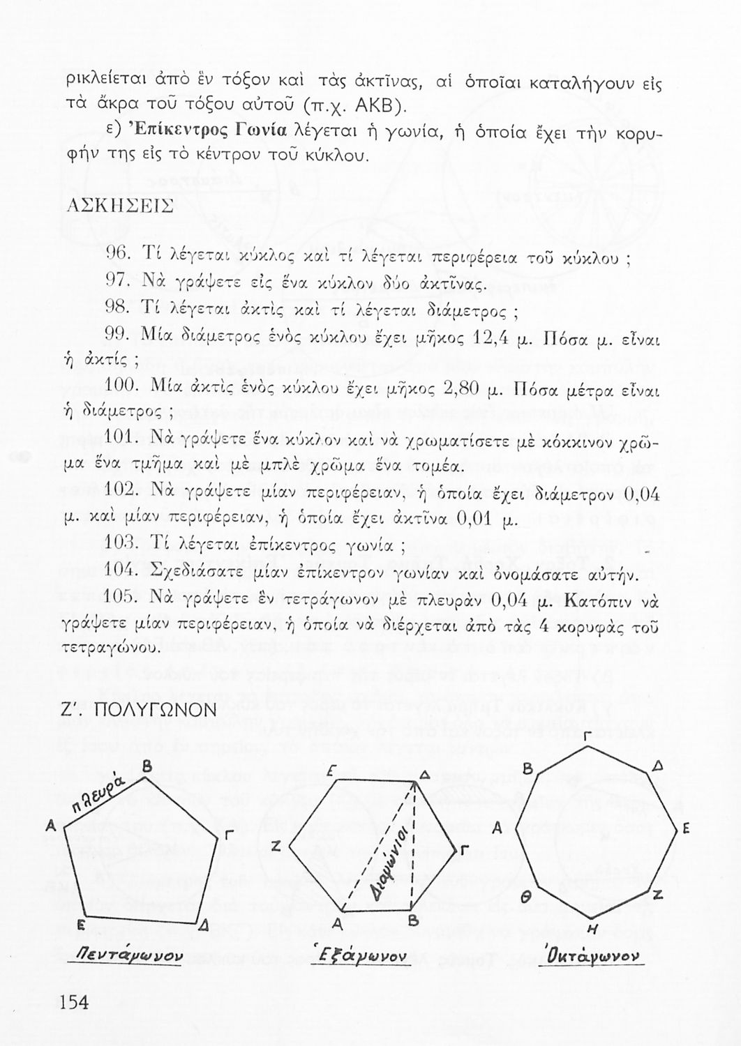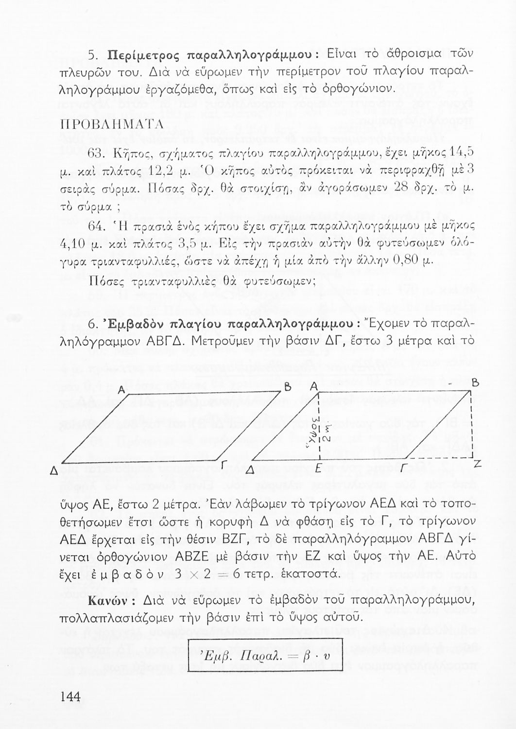 Σχολικό εγχειρίδιο Μαθηματικών ΣΤ΄ Δημοτικού που περιλαμβάνει ασκήσεις λογιστικού χαρακτήρα και ασκήσεις μέτρησης γεωμετρικών σχημάτων.