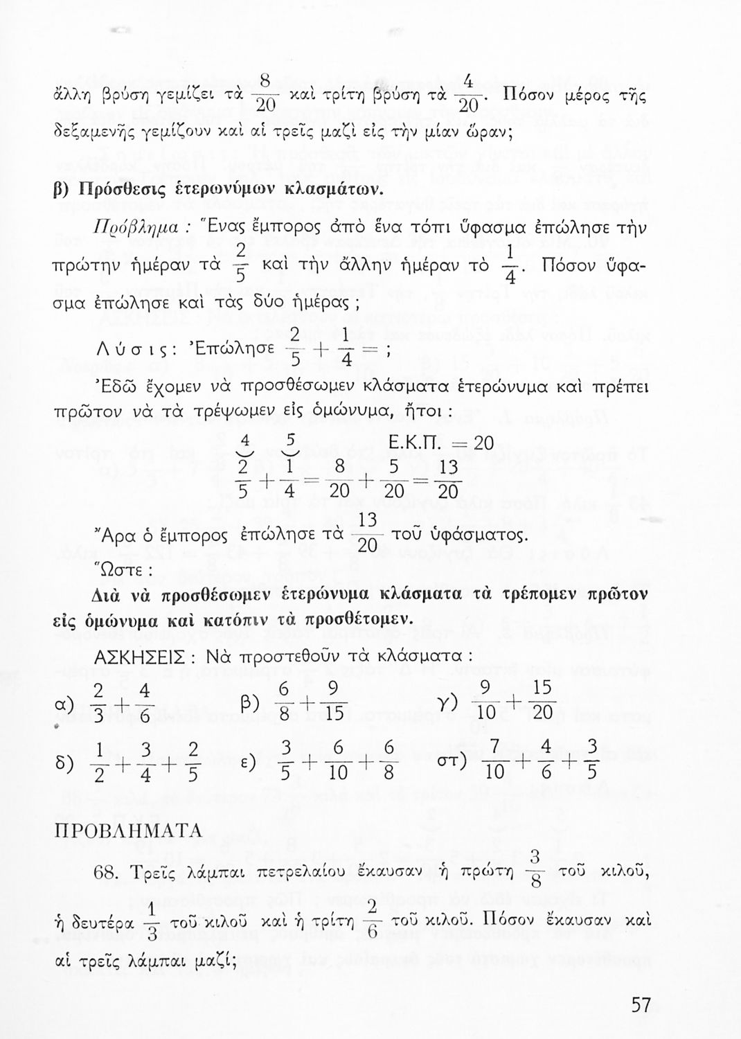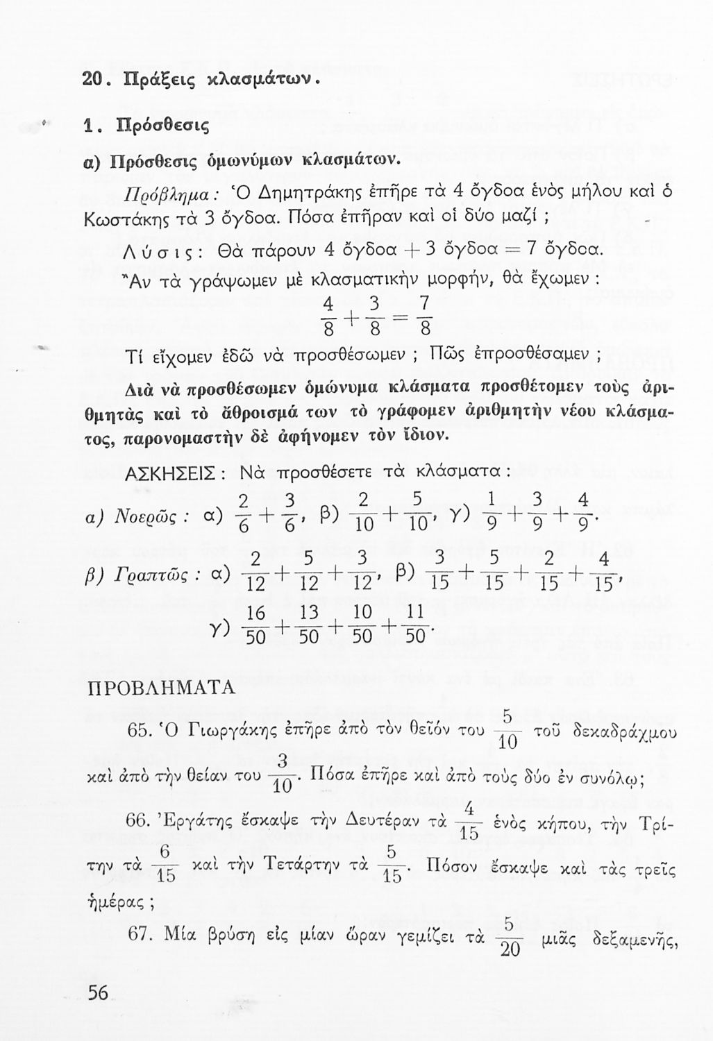 Μαθητικό βοήθημα Αριθμητικής για τις Ε΄ και ΣΤ΄ Δημοτικού που περιέχει ασκήσεις με επιχειρηματικό προσανατολισμό και εστιάζει στις αριθμητικές πράξεις με κλάσματα και την απλή μέθοδο των τριών.