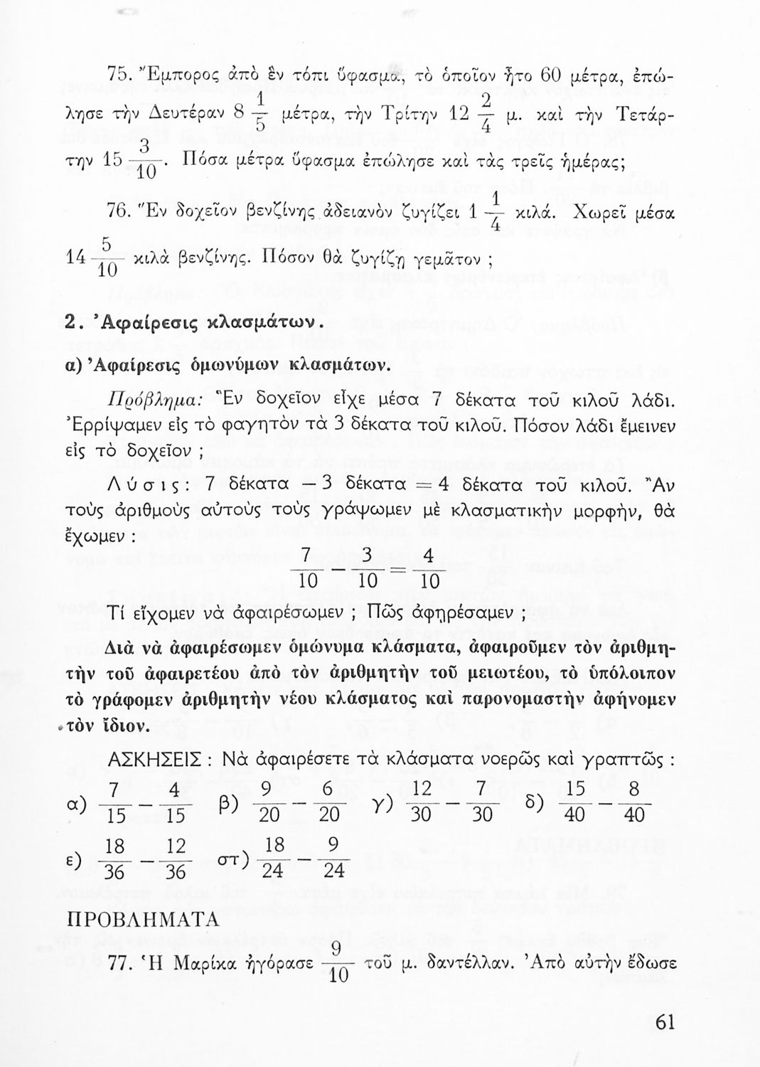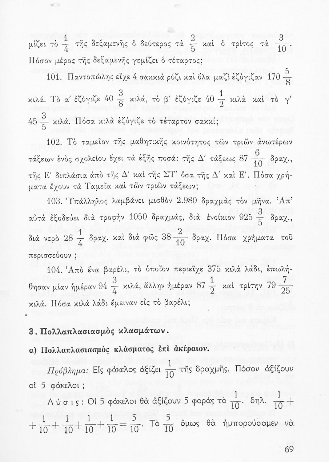 Μαθητικό βοήθημα Αριθμητικής για τις Ε΄ και ΣΤ΄ Δημοτικού που περιέχει ασκήσεις με επιχειρηματικό προσανατολισμό και εστιάζει στις αριθμητικές πράξεις με κλάσματα και την απλή μέθοδο των τριών.
