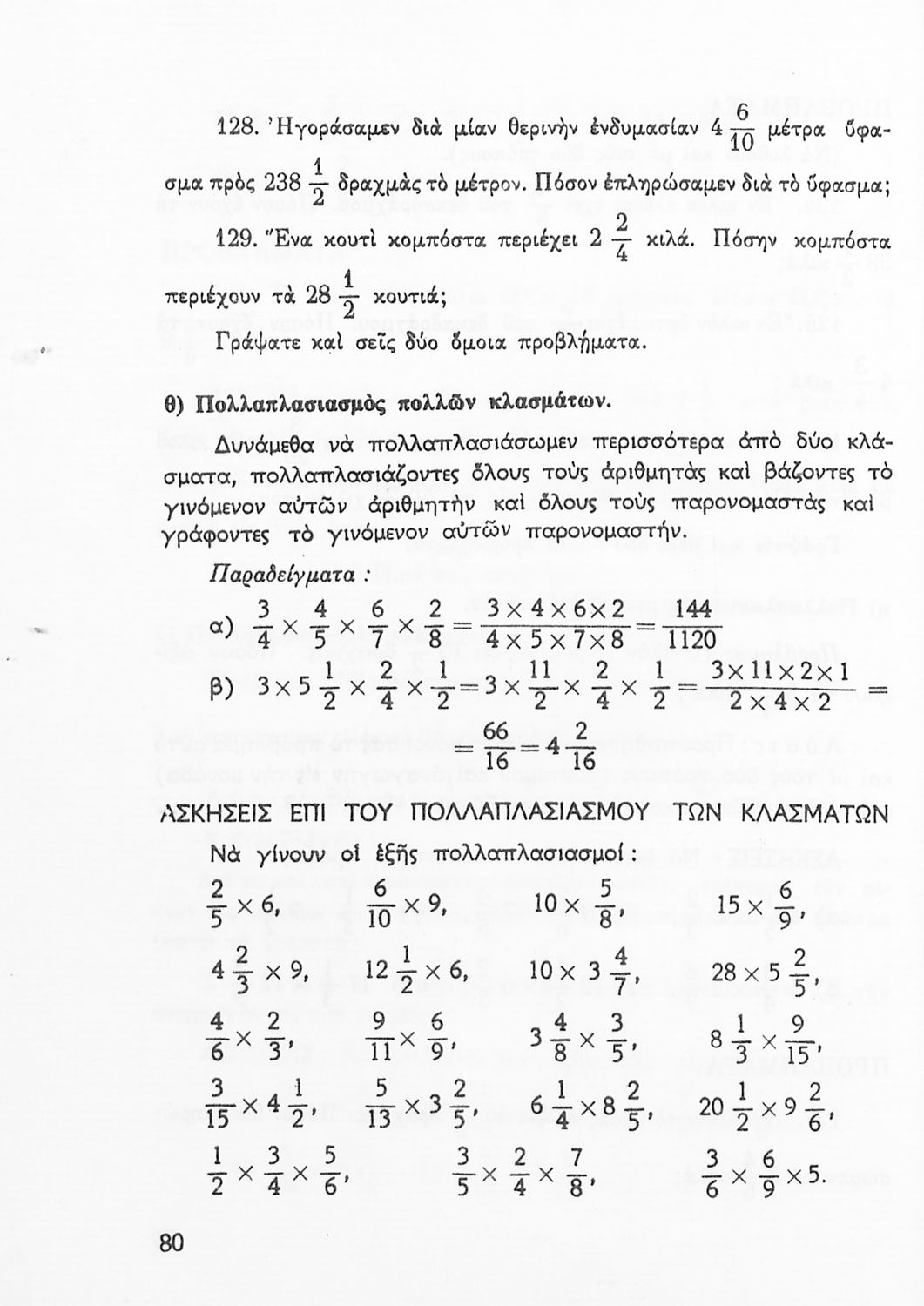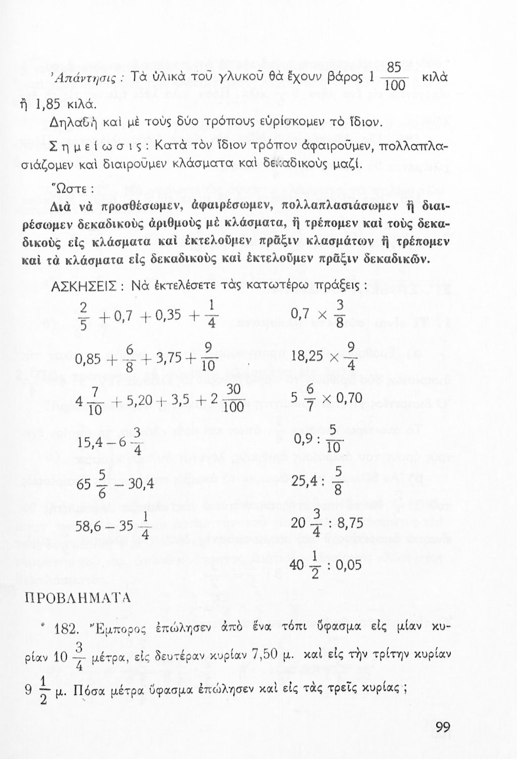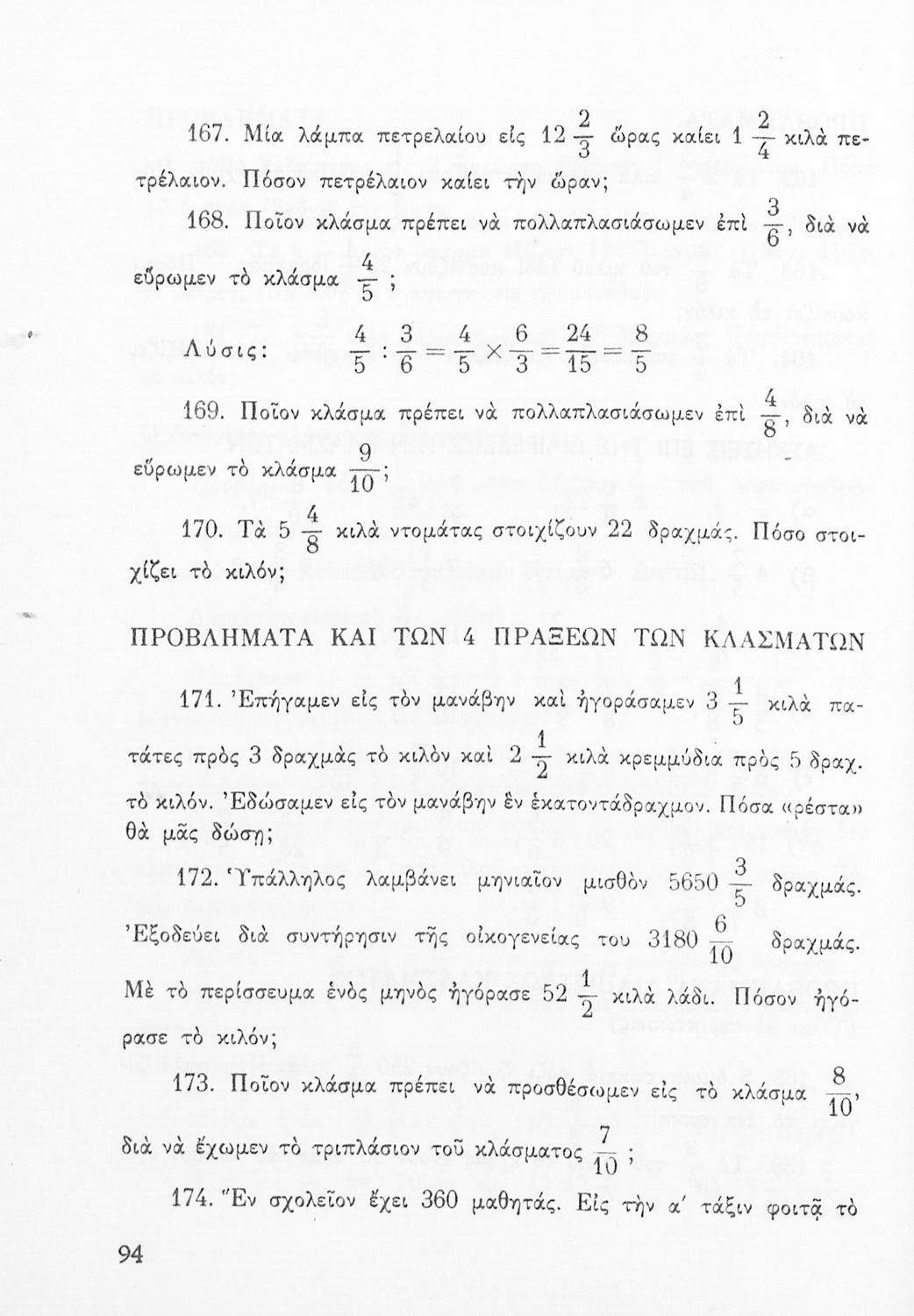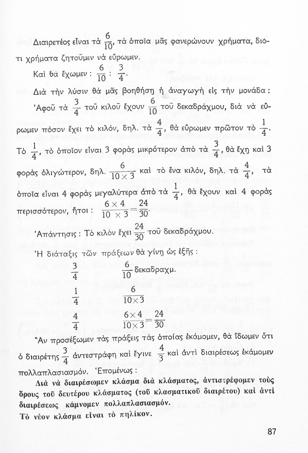 Μαθητικό βοήθημα Αριθμητικής για τις Ε΄ και ΣΤ΄ Δημοτικού που περιέχει ασκήσεις με επιχειρηματικό προσανατολισμό και εστιάζει στις αριθμητικές πράξεις με κλάσματα και την απλή μέθοδο των τριών.