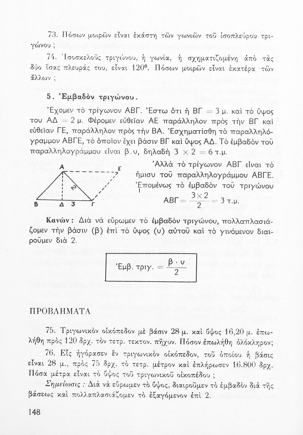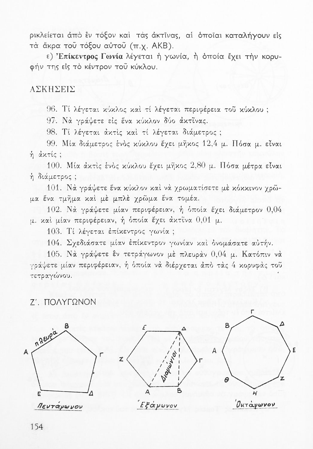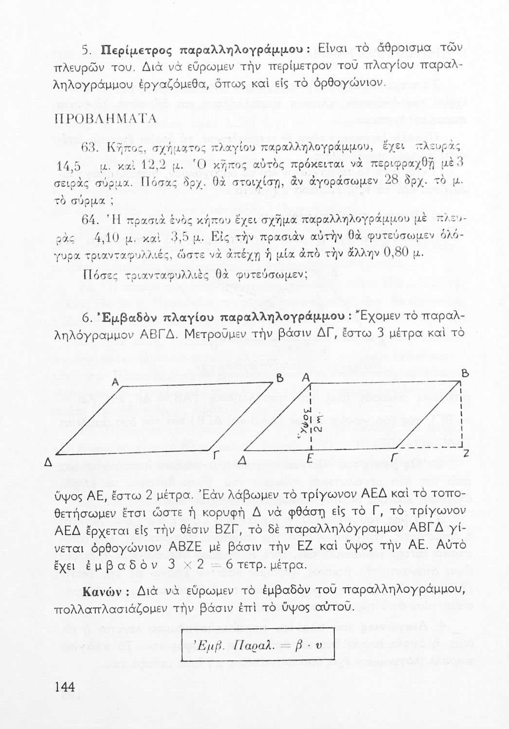 Σχολικό εγχειρίδιο Μαθηματικών ΣΤ΄ Δημοτικού που περιλαμβάνει ασκήσεις λογιστικού χαρακτήρα και ασκήσεις μέτρησης γεωμετρικών σχημάτων.