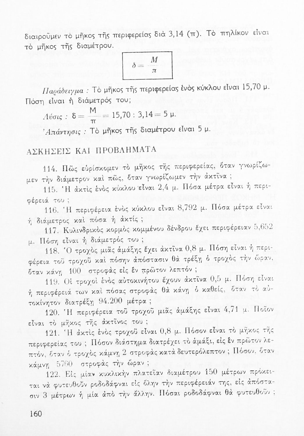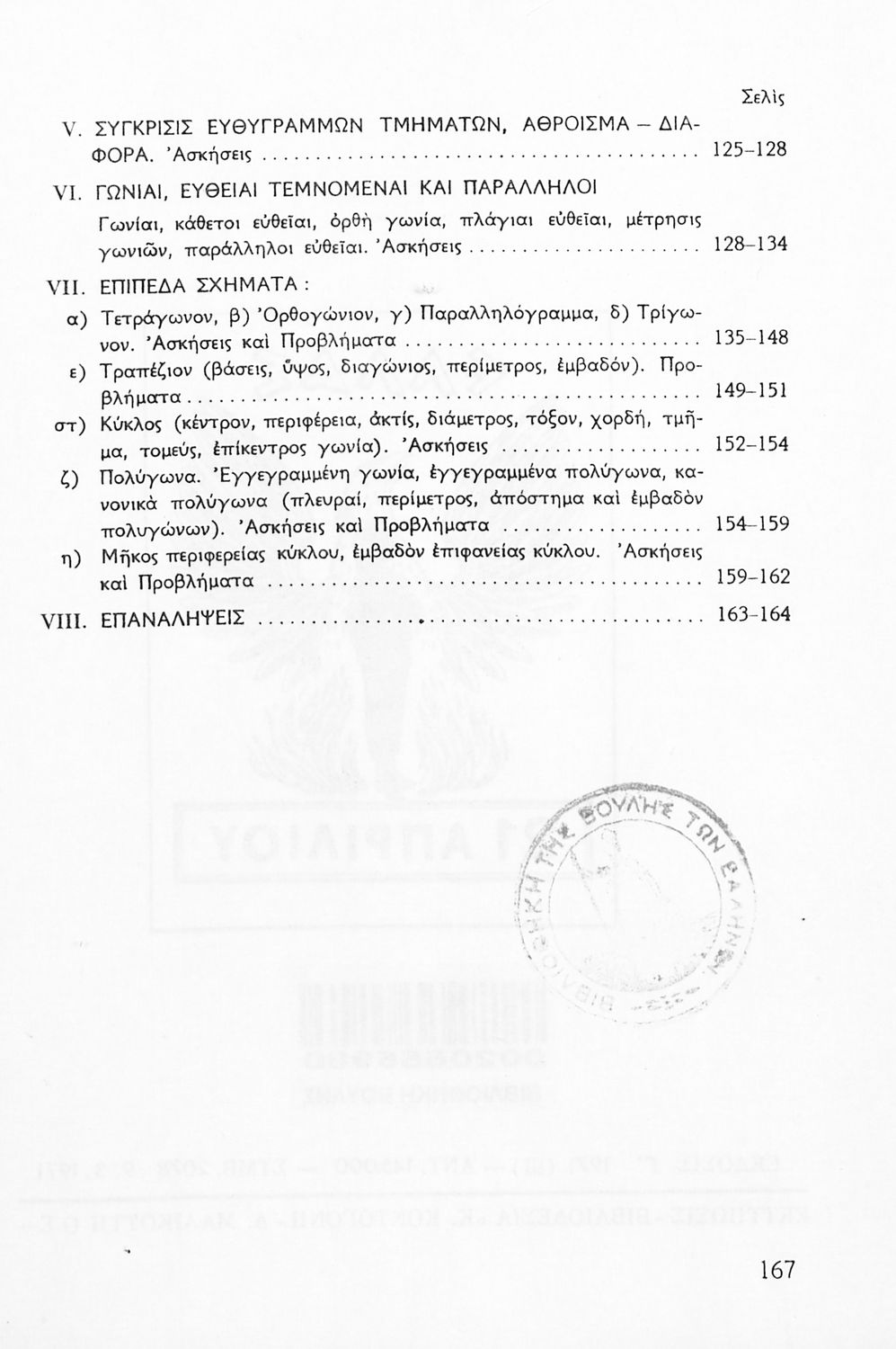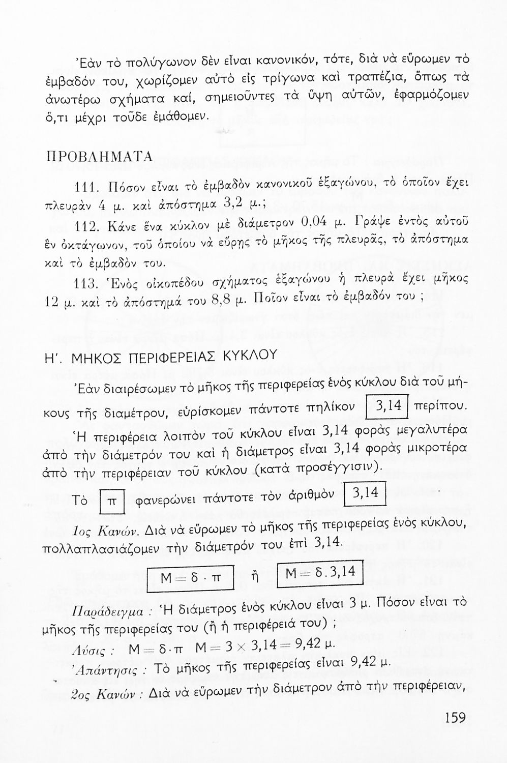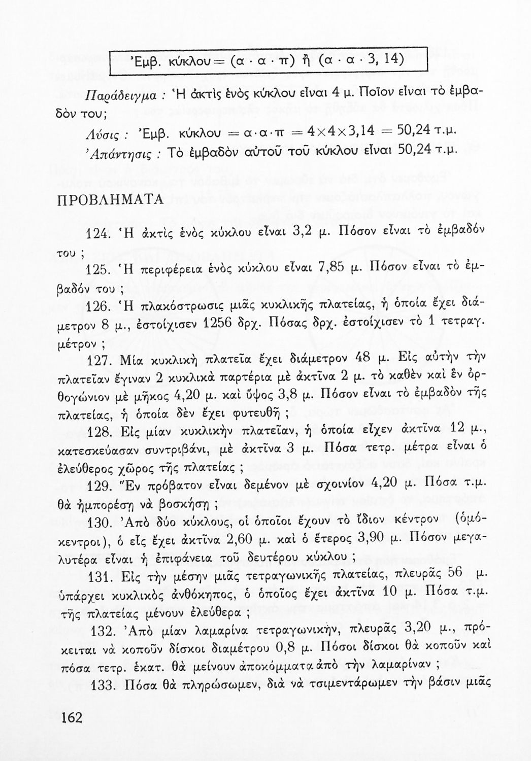 Σχολικό εγχειρίδιο Μαθηματικών ΣΤ΄ Δημοτικού που περιλαμβάνει ασκήσεις λογιστικού χαρακτήρα και ασκήσεις μέτρησης γεωμετρικών σχημάτων. Φέρει το σύμβολο της δικτατορίας.