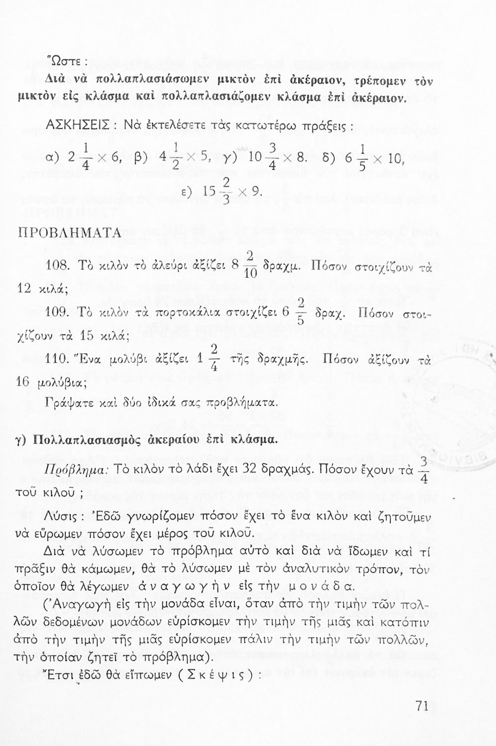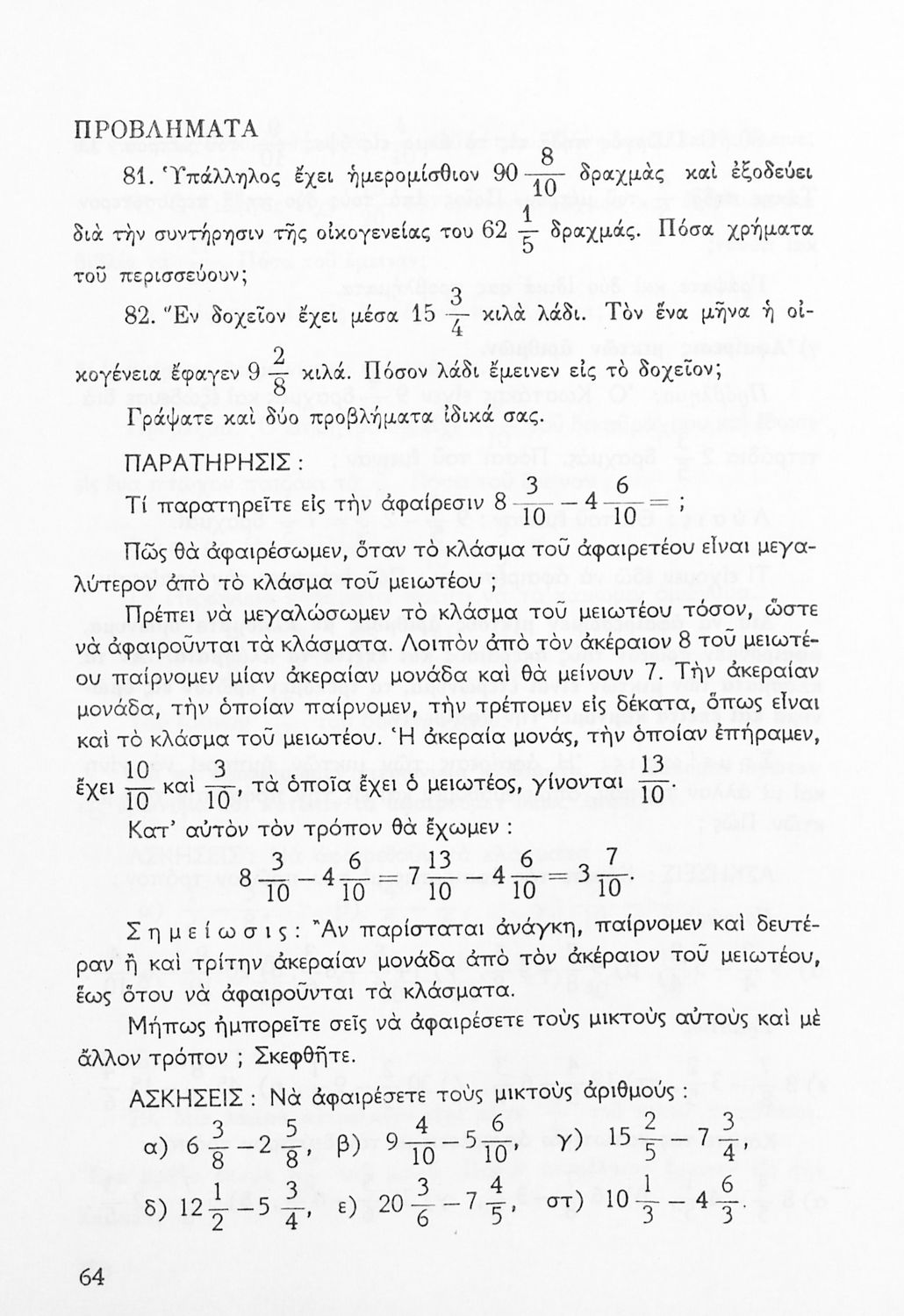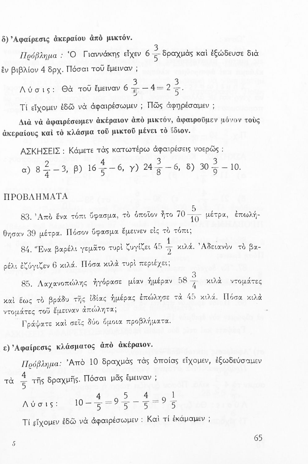 Κωδικός αναγνώρισης: 03-20555980 Τίτλος: Αριθμητική – Γεωμετρία Ε΄ τάξεως Δημοτικού Σχολείου Συγγραφέας: Α. Κυριαζόπουλος, Β. Αλεξόπουλος Μέγεθος και υπόστρωμα: Σχολικό εγχειρίδιο, μαλακό εξώφυλλο, 168 σελίδες. Εικόνες (ασπρόμαυρες), σκίτσα (ασπρόμαυρα). |