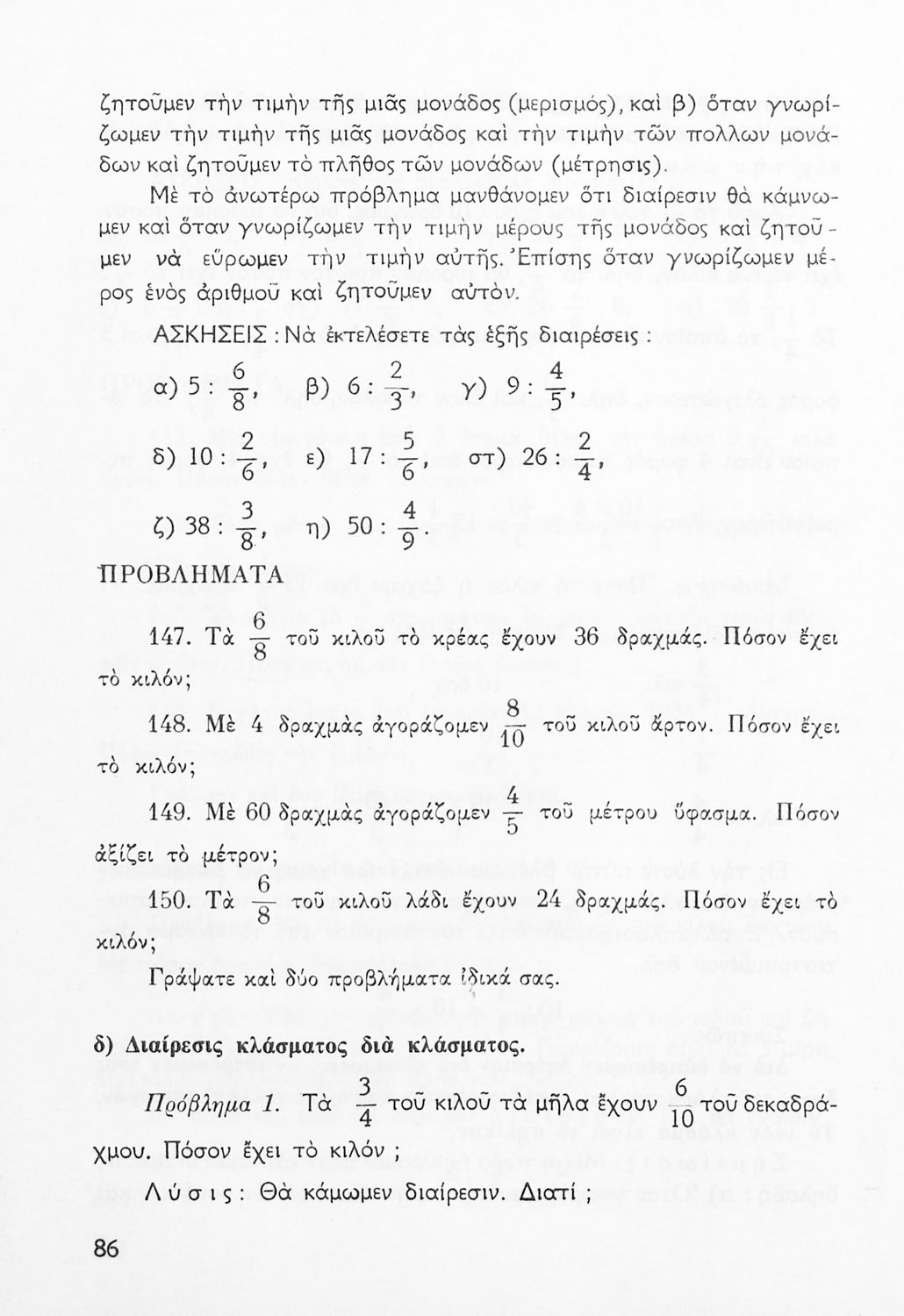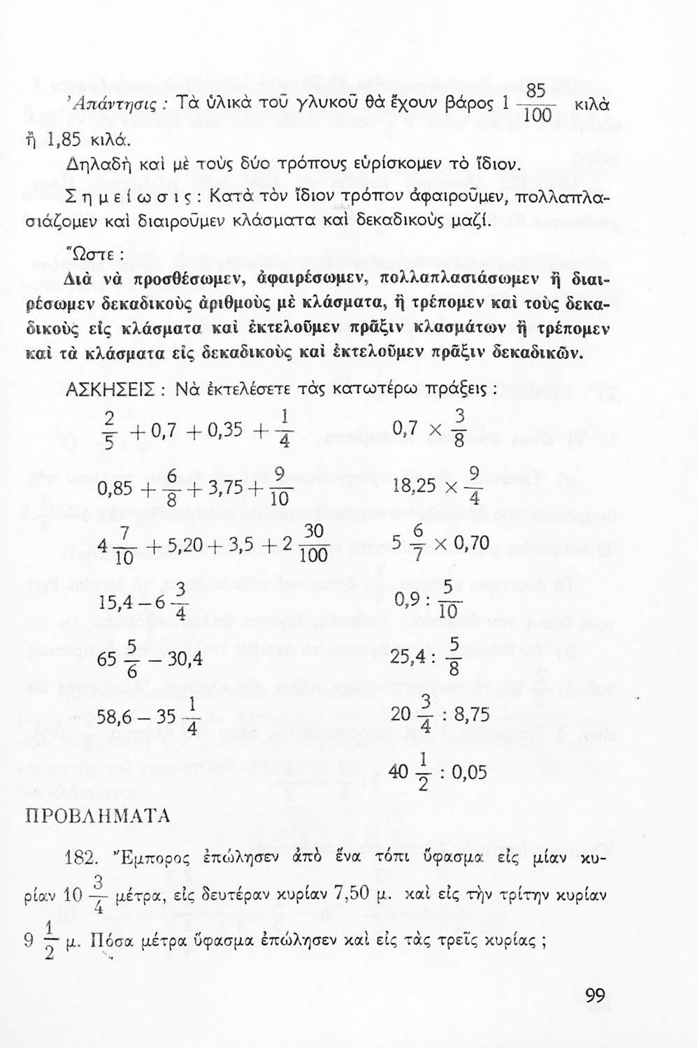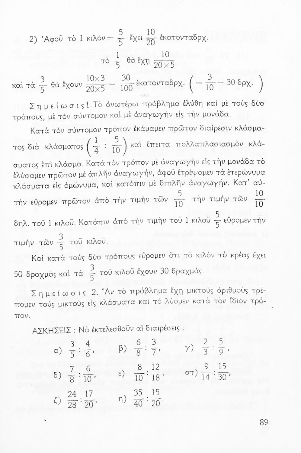 Μαθητικό βοήθημα Αριθμητικής για τις Ε΄ και ΣΤ΄ Δημοτικού που περιέχει ασκήσεις με επιχειρηματικό προσανατολισμό και εστιάζει στις αριθμητικές πράξεις με κλάσματα και την απλή μέθοδο των τριών.
