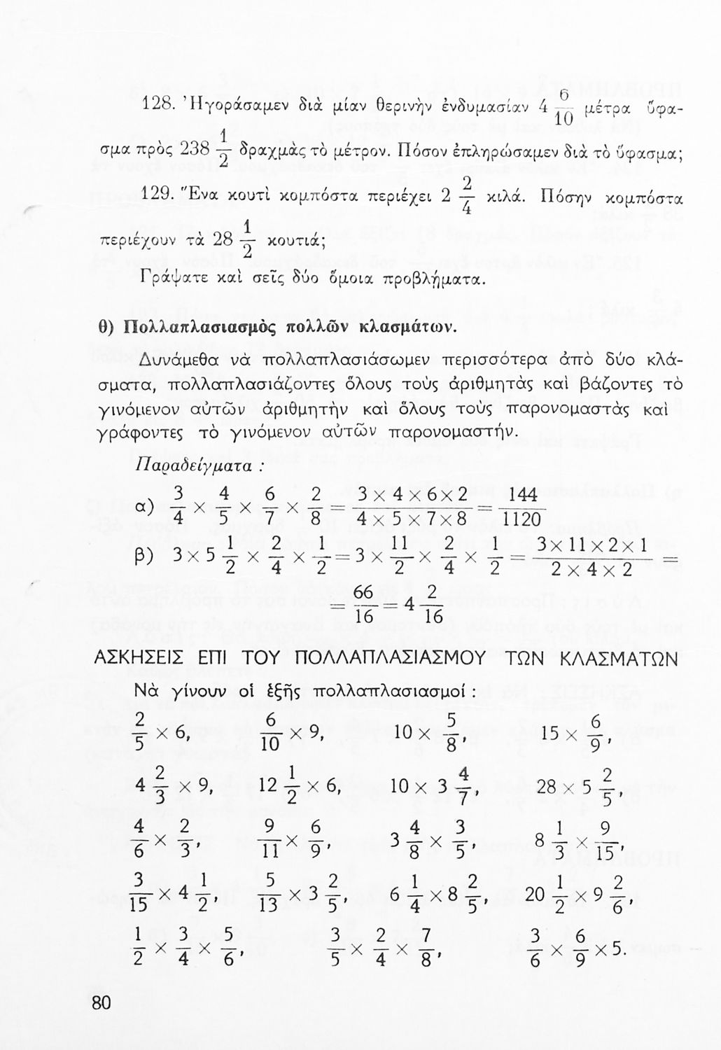 Σχολικό εγχειρίδιο Μαθηματικών ΣΤ΄ Δημοτικού που περιλαμβάνει ασκήσεις λογιστικού χαρακτήρα και ασκήσεις μέτρησης γεωμετρικών σχημάτων.