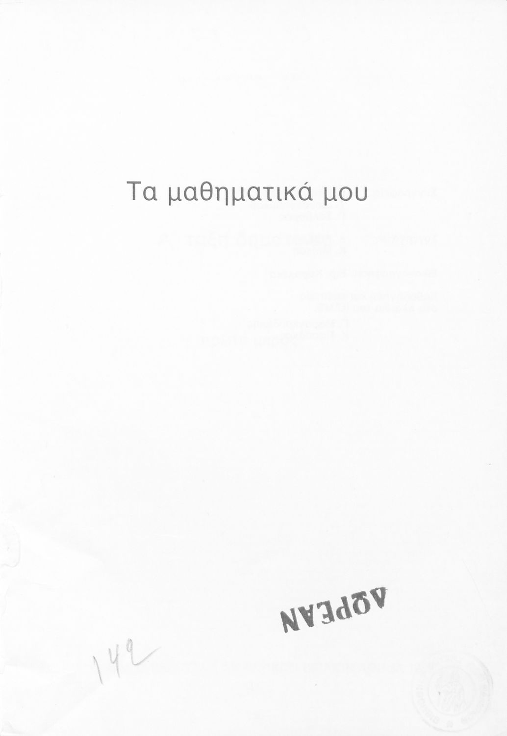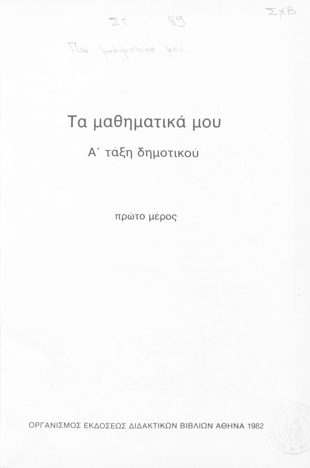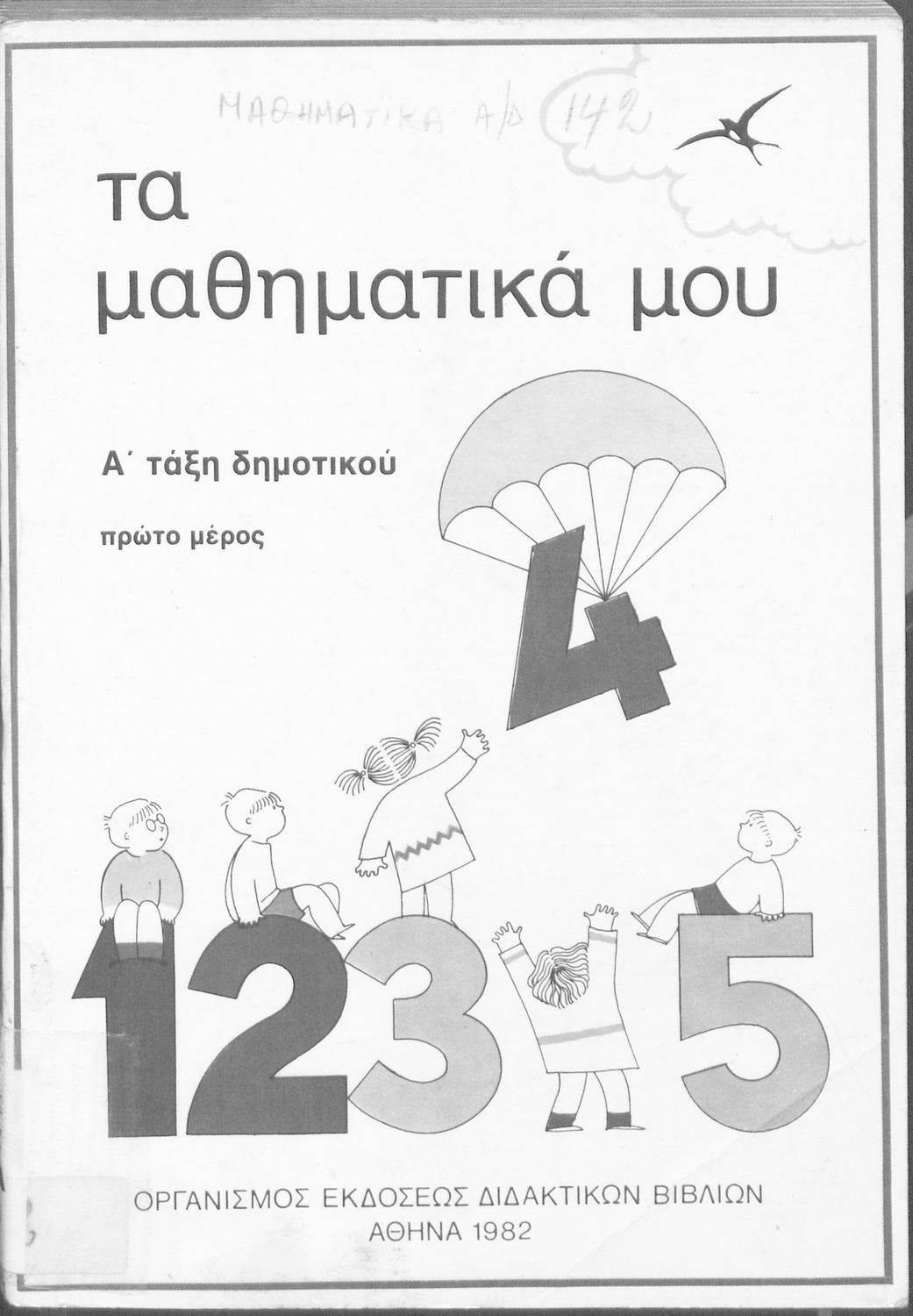 Σχολικό εγχειρίδιο Μαθηματικών για τους μαθητές της Α ΄ Δημοτικού. Το βιβλίο εξηγεί τη βασική λογική των μαθηματικών μέσω απλών ασκήσεων και εικόνων με αριθμούς, μετρήσεις και αριθμητικές πράξεις.