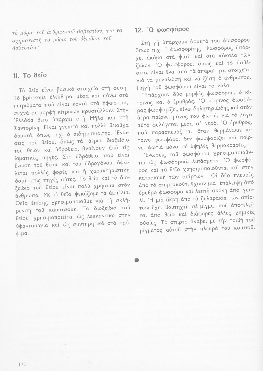 Παρουσίαση περιεχομένου: Σχολικό εγχειρίδιο για το μάθημα της Φυσικής και της Χημείας στο Δημοτικό. Περιέχει βασικές γνώσεις φυσικής, όπως για τις ιδιότητες των σωμάτων, τη θερμότητα, τη μηχανική, την υδροστατική και τη μηχανική των αερίων. Όσον αφορά τη χημεία αναφέρεται στις χημικές ενώσεις, τα μόρια, τα άτομα, τον άνθρακα και διάφορα άλλα χημικά στοιχεία.