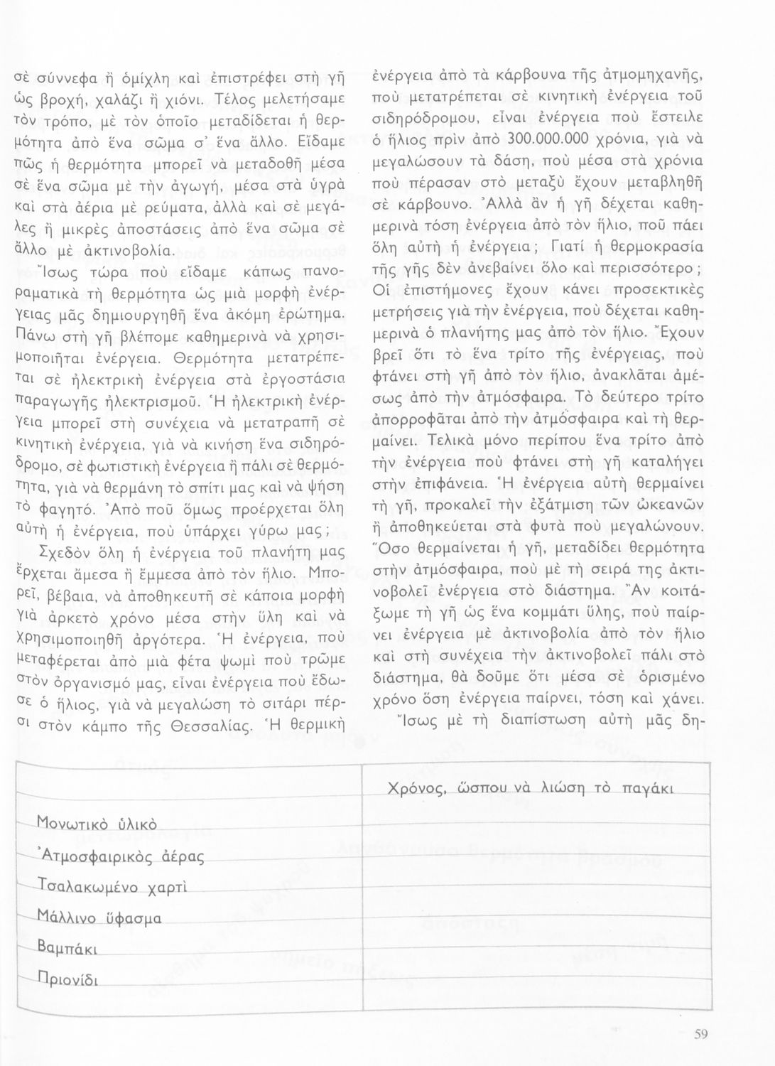 Σχολικό εγχειρίδιο Φυσικής και Χημείας Ε΄ Δημοτικού που αποτελεί μια εισαγωγή στις έννοιες της ύλης, της ενέργειας και της θερμότητας