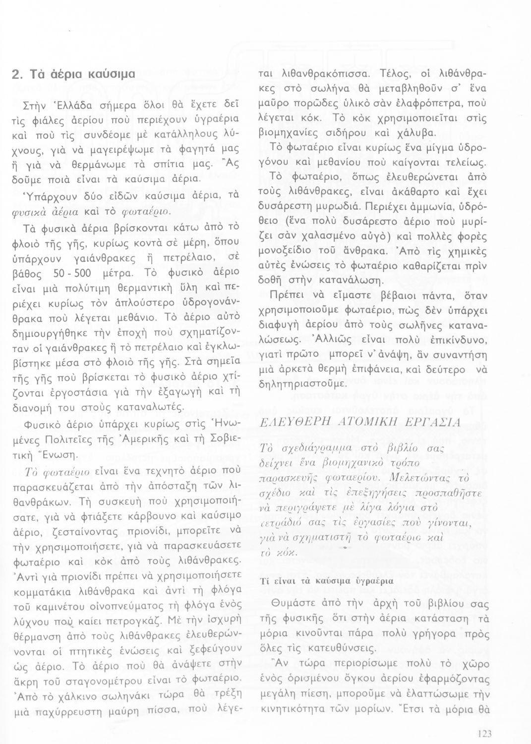 Σχολικό εγχειρίδιο Φυσικής και Χημείας της ΣΤ΄ Δημοτικού. Το βιβλίο αποτελεί μια εισαγωγή στις βασικές έννοιες της Φυσικής και της Χημείας. Εξετάζει ζητήματα ακουστικής, οπτικής, ηλεκτρομαγνητισμού, ατομικής και πυρηνικής φυσικής. Το βιβλίο τελειώνει με μια εισαγωγή στη Χημεία, τα καύσιμα και τη χρησιμότητά τους στον άνθρωπο.