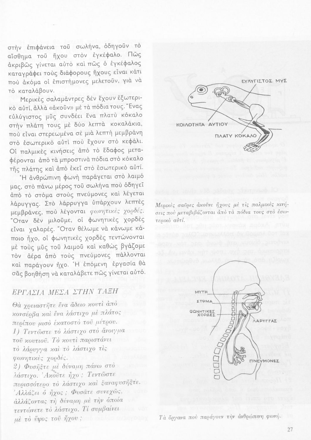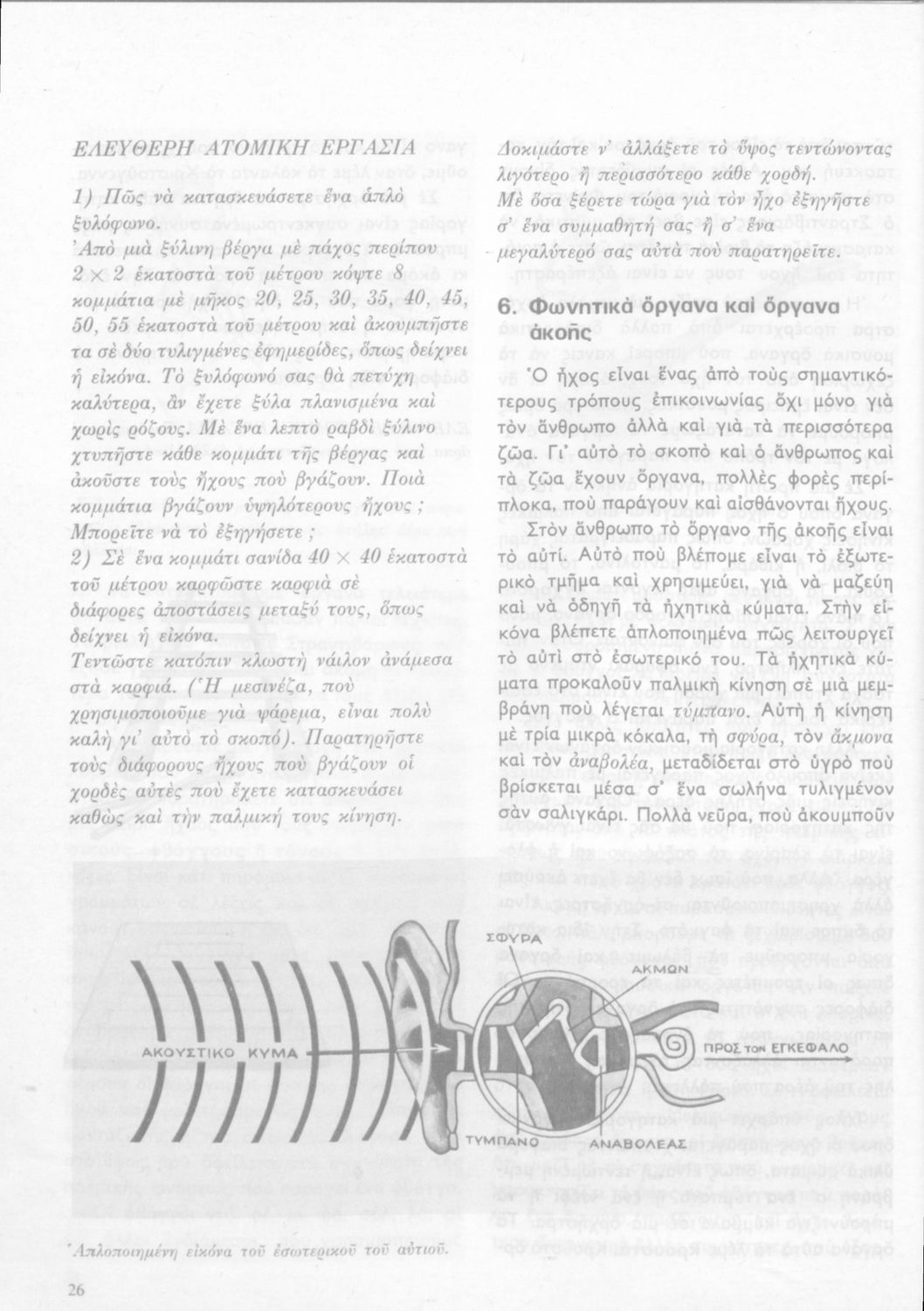 Σχολικό εγχειρίδιο Φυσικής και Χημείας ΣΤ΄ Δημοτικού που εστιάζει στα φυσικά φαινόμενα της ακουστικής, οπτικής, του ηλεκτρισμού, της ατομικής φυσικής. Περιέχει και στοιχεία χημείας.