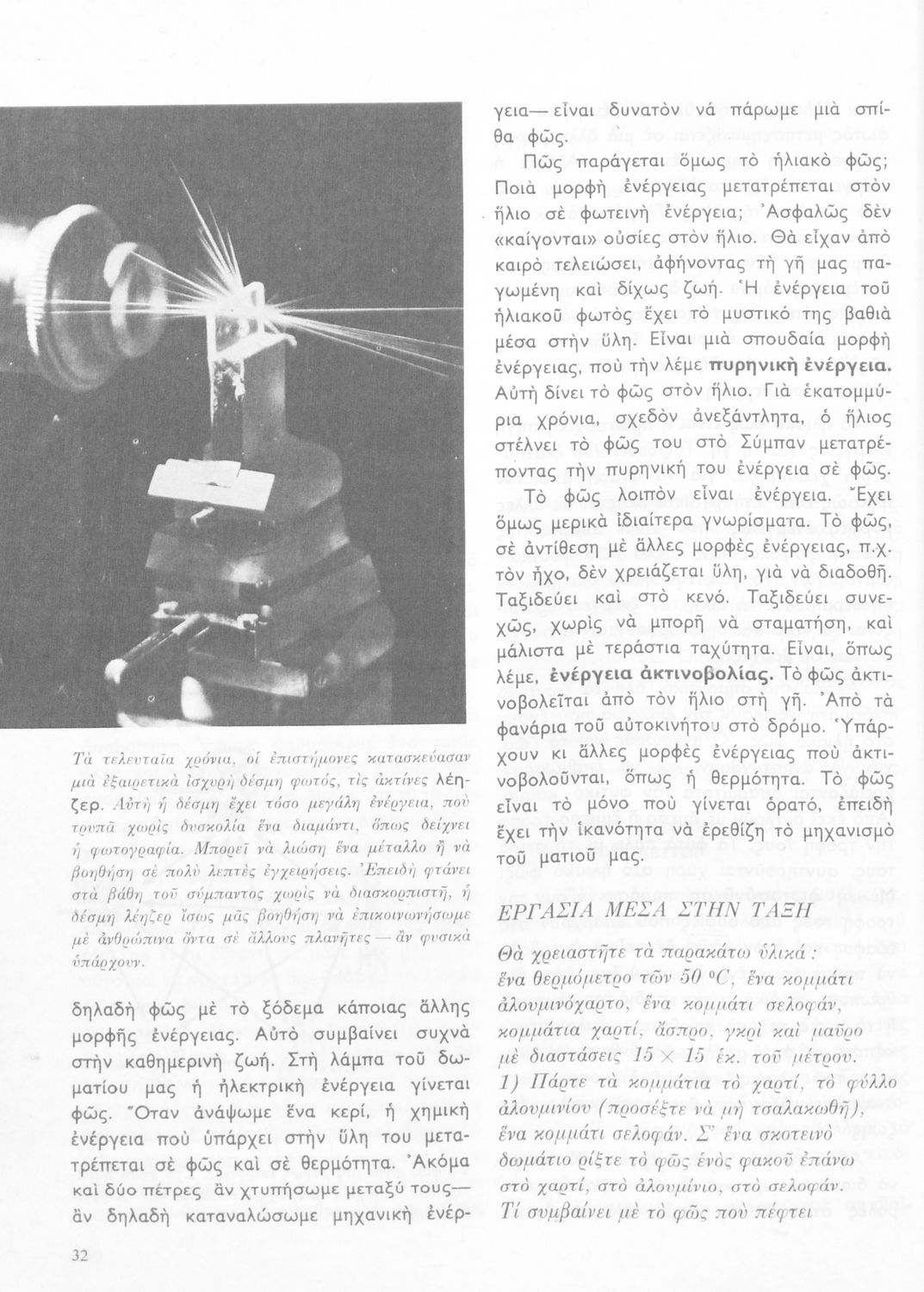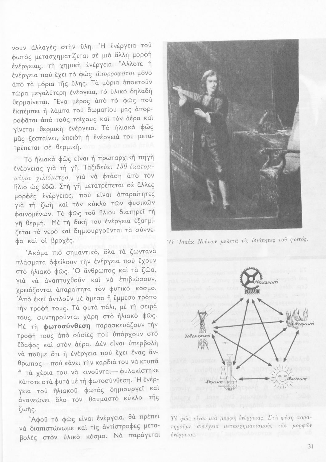 Σχολικό εγχειρίδιο Φυσικής και Χημείας της ΣΤ΄ Δημοτικού. Το βιβλίο αποτελεί μια εισαγωγή στις βασικές έννοιες της Φυσικής και της Χημείας. Εξετάζει ζητήματα ακουστικής, οπτικής, ηλεκτρομαγνητισμού, ατομικής και πυρηνικής φυσικής. Το βιβλίο τελειώνει με μια εισαγωγή στη Χημεία, τα καύσιμα και τη χρησιμότητά τους στον άνθρωπο.