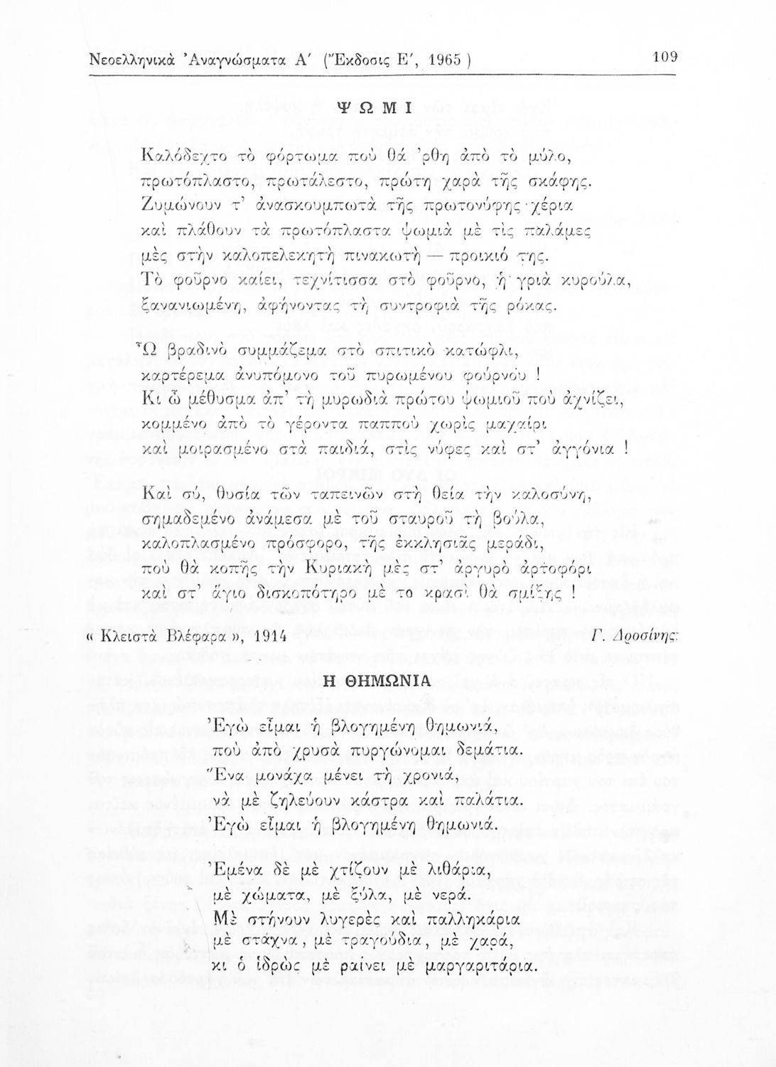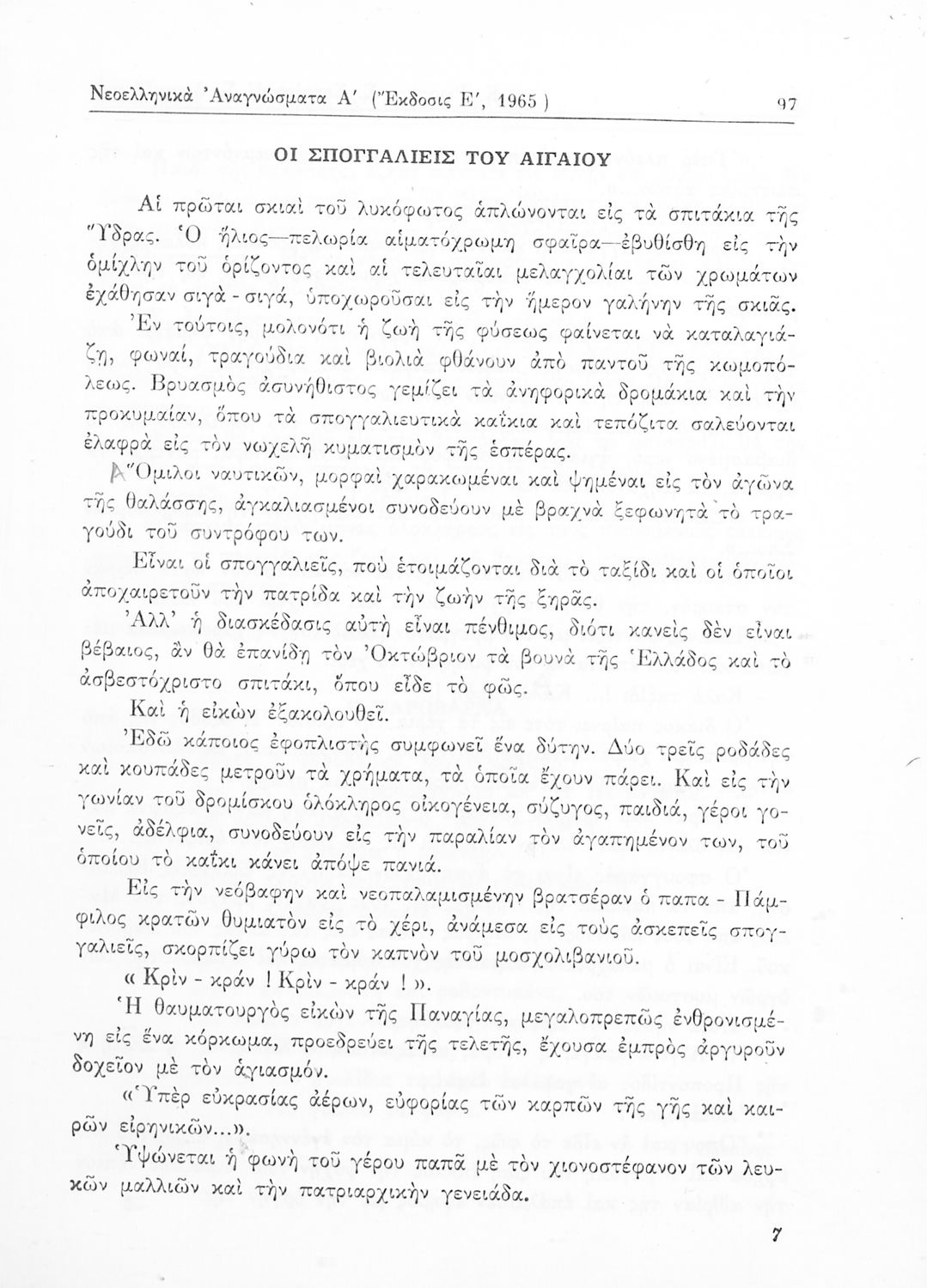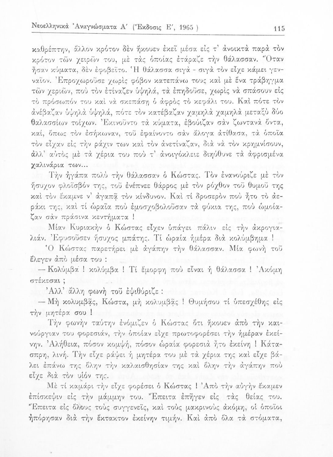 Σχολικό εγχειρίδιο Νέων Ελληνικών Α' Γυμνασίου που περιέχει ποιήματα και πεζά Ελλήνων συγγραφέων εμπνευσμένα από την αρχαία ελληνική ιστορία και μυθολογία, τη βυζαντινή και σύγχρονη ελληνική ιστορία και την καθημερινή ζωή. Περιέχει παράρτημα με βιογραφίες των συγγραφέων και λεξιλόγιο.
