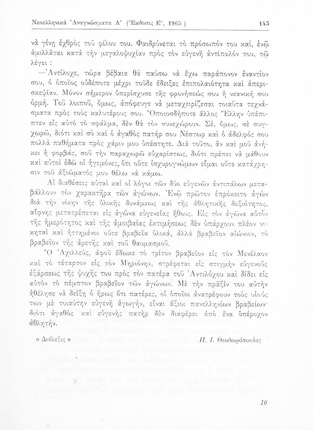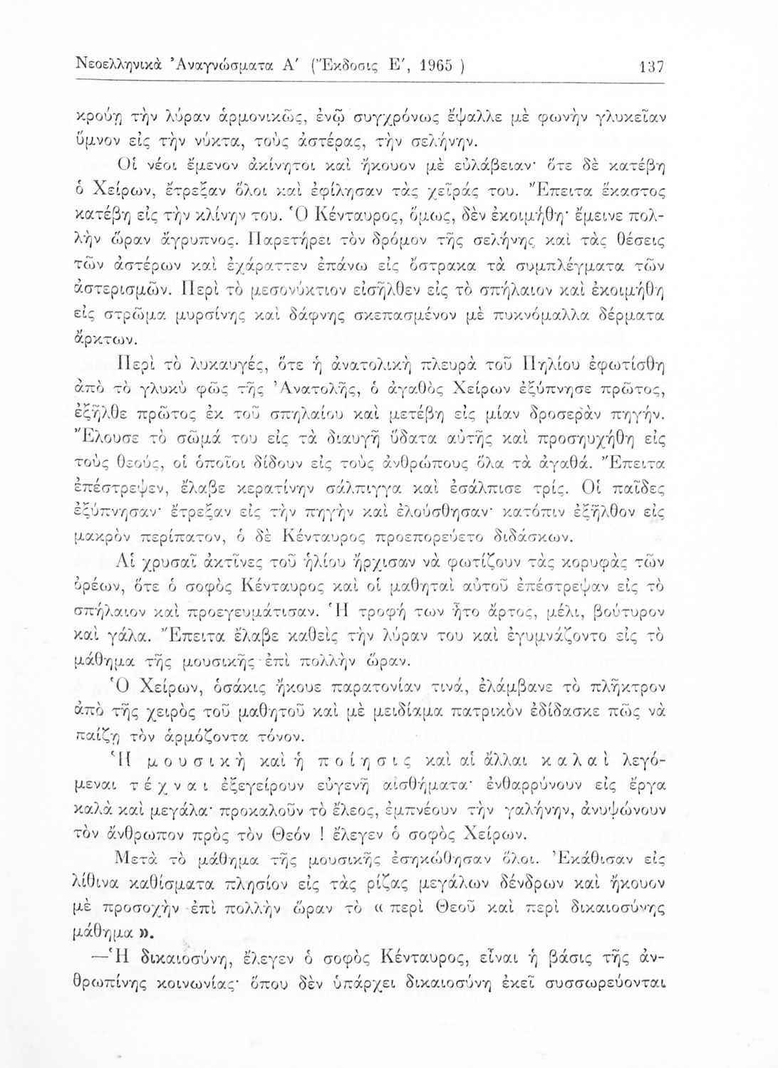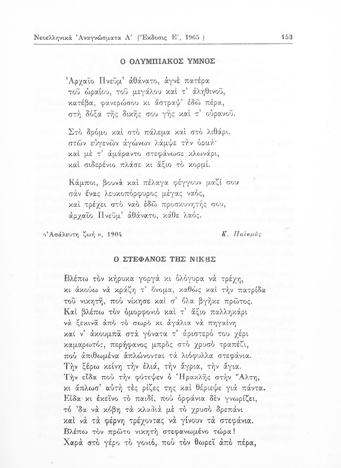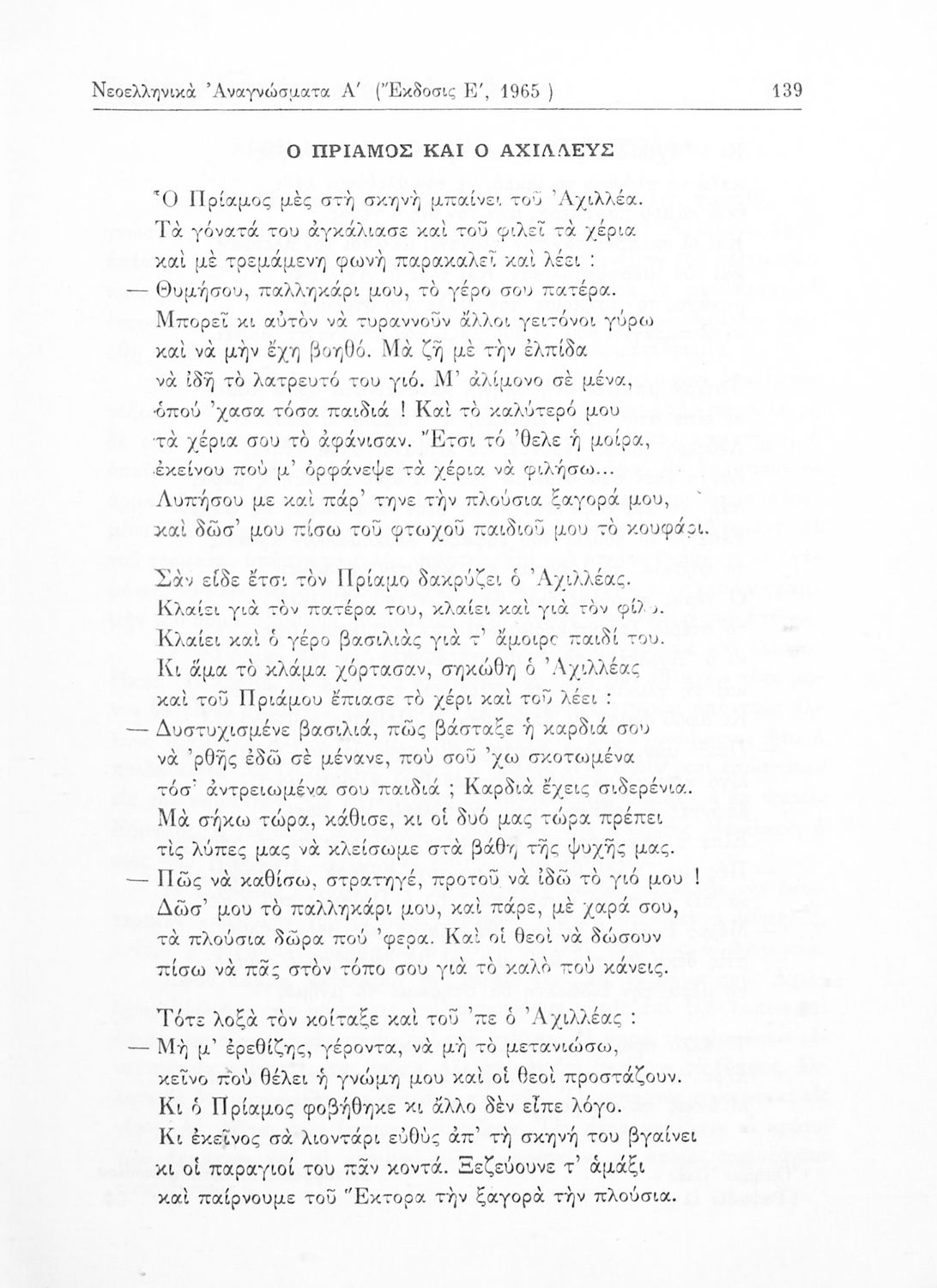 Σχολικό εγχειρίδιο Νέων Ελληνικών Γ΄ Γυμνασίου και Α' Αστικού Σχολείου που περιέχει πεζά και ποιήματα Ελλήνων συγγραφέων εμπνευσμένα από τη θρησκευτική και κοινωνική ζωή, την ελληνική μυθολογία, την αρχαία και