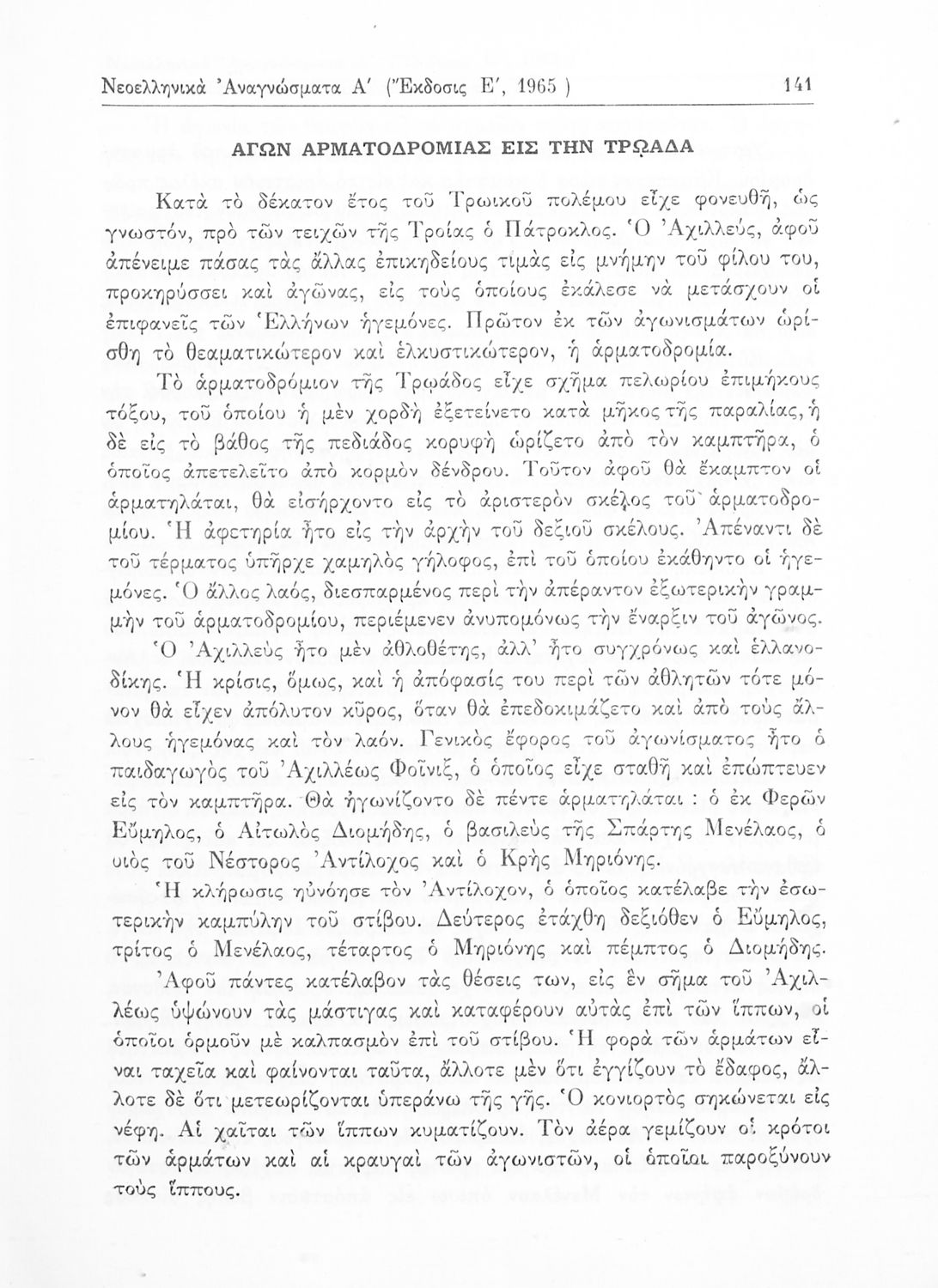 Σχολικό εγχειρίδιο Νέων Ελληνικών Α' Γυμνασίου που περιέχει ποιήματα και πεζά Ελλήνων συγγραφέων εμπνευσμένα από την αρχαία ελληνική ιστορία και μυθολογία, τη βυζαντινή και σύγχρονη ελληνική ιστορία και την καθημερινή ζωή. Περιέχει παράρτημα με βιογραφίες των συγγραφέων και λεξιλόγιο.