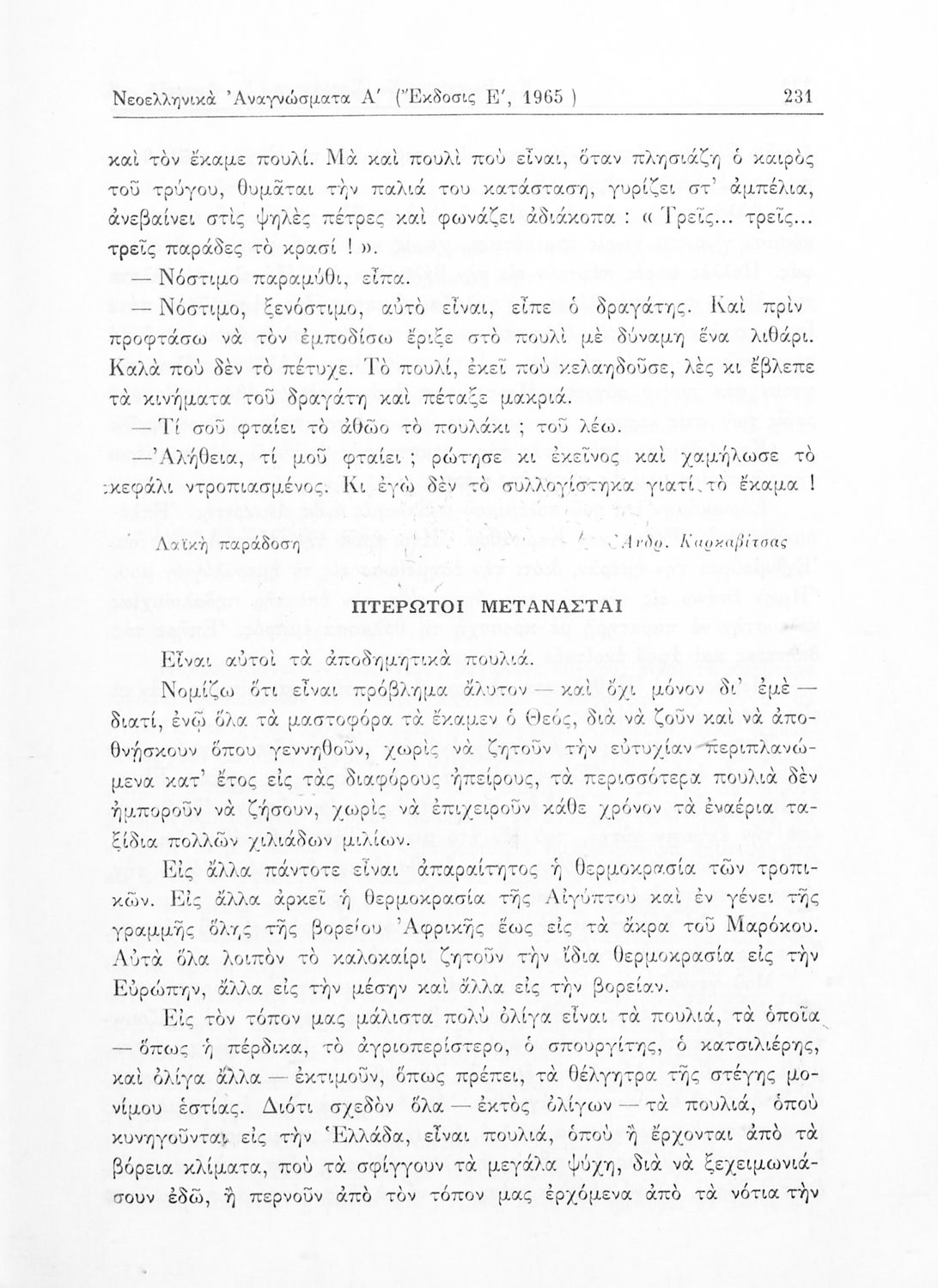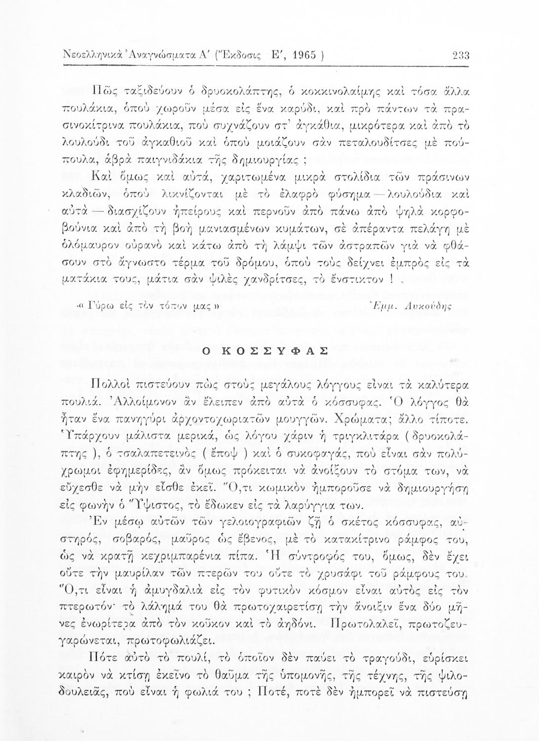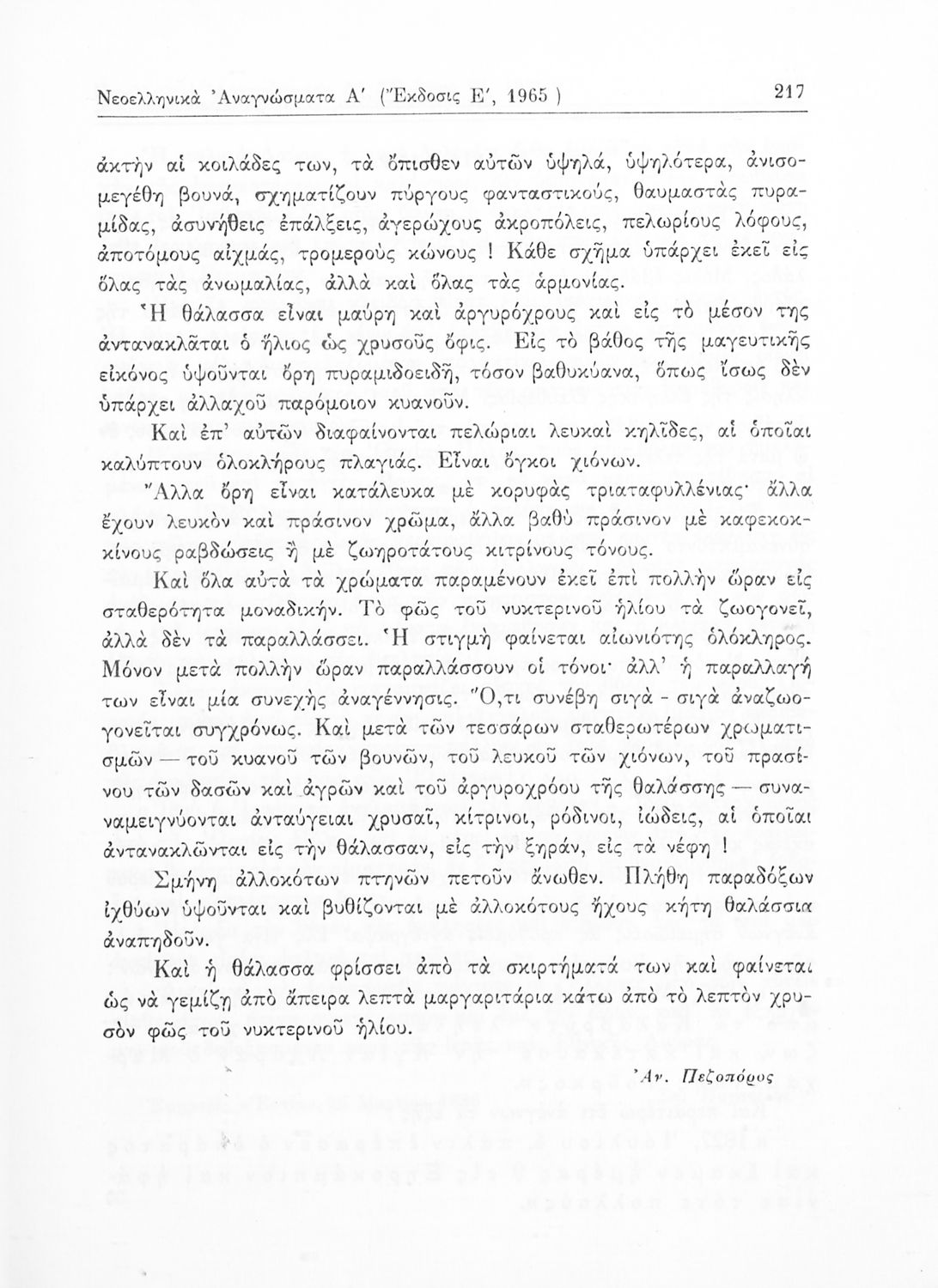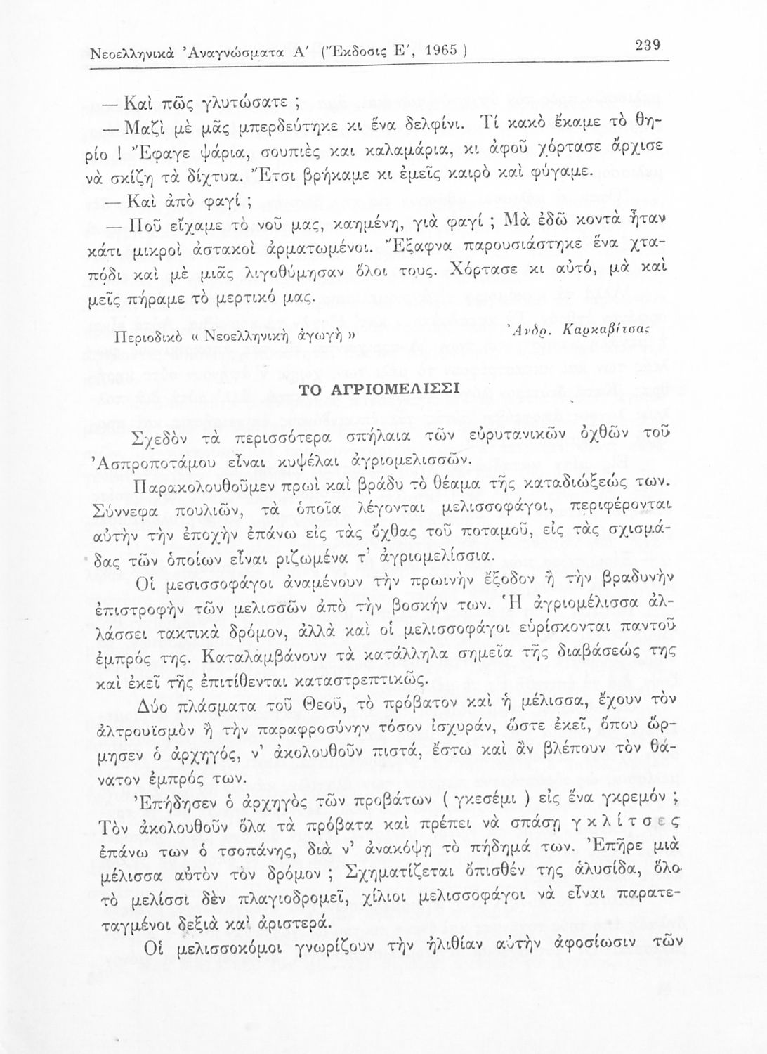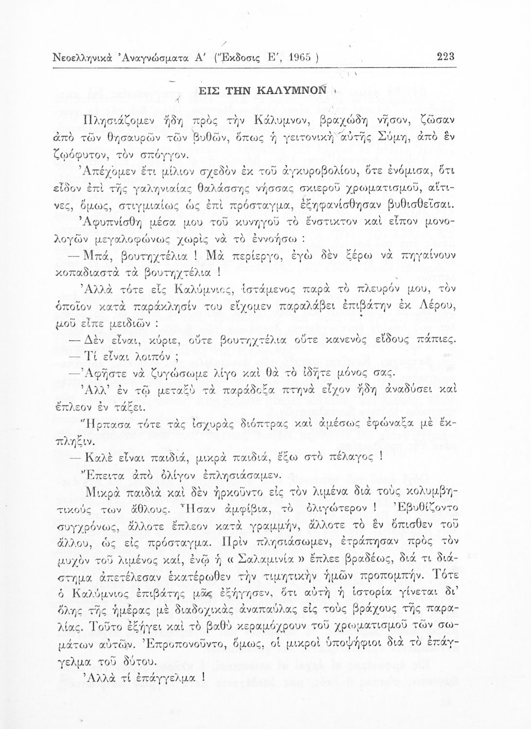 Σχολικό εγχειρίδιο Νέων Ελληνικών Α' Γυμνασίου που περιέχει ποιήματα και πεζά Ελλήνων συγγραφέων εμπνευσμένα από την αρχαία ελληνική ιστορία και μυθολογία, τη βυζαντινή και σύγχρονη ελληνική ιστορία και την καθημερινή ζωή. Περιέχει παράρτημα με βιογραφίες των συγγραφέων και λεξιλόγιο.