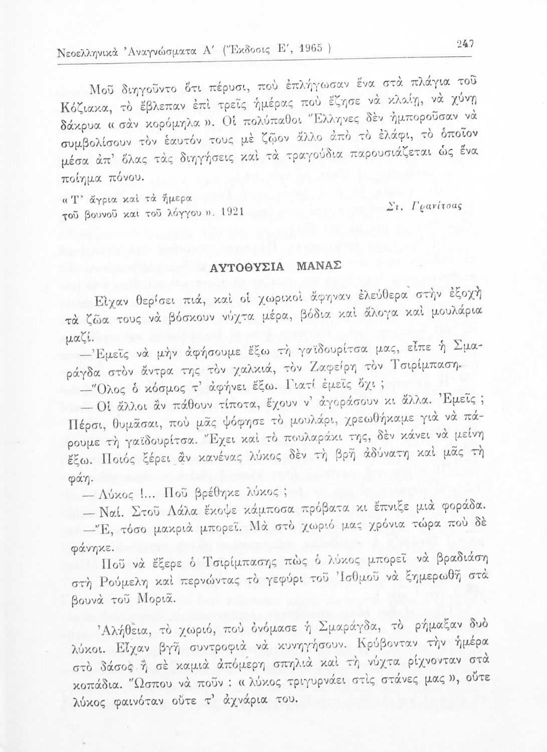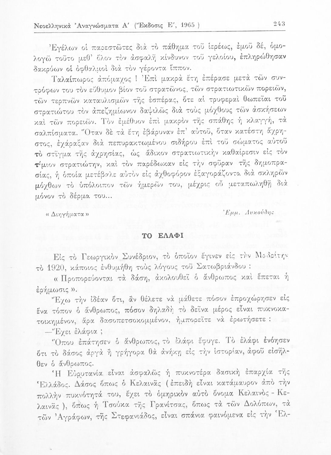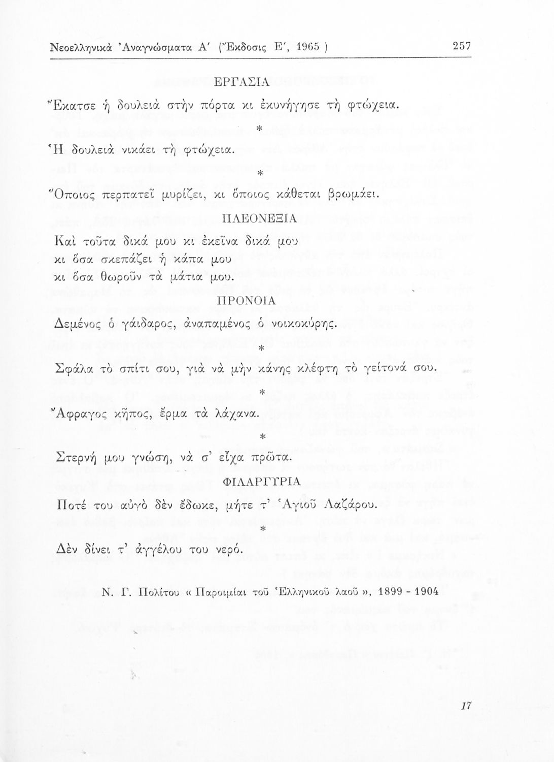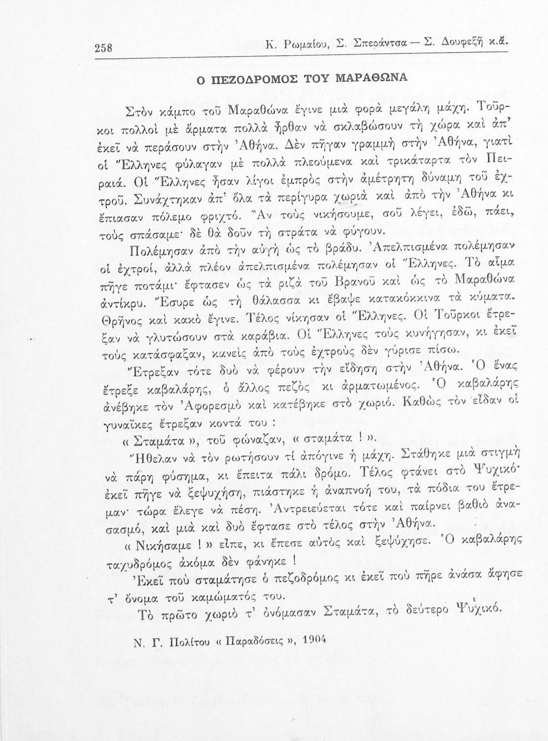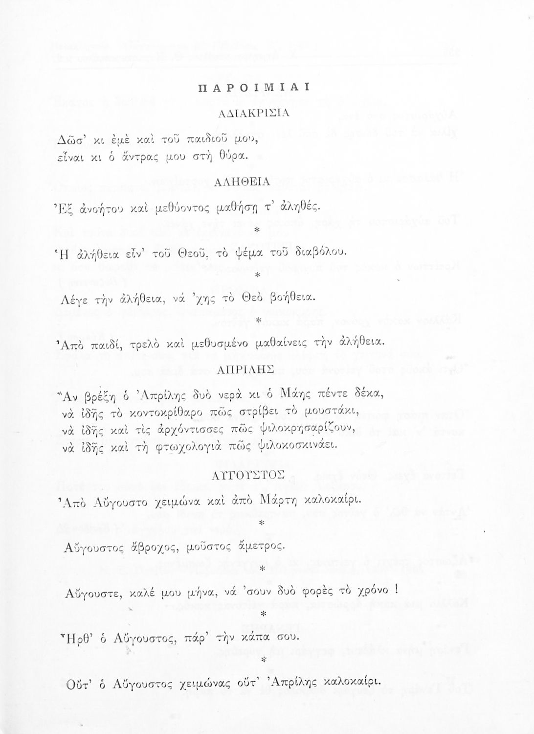 Σχολικό εγχειρίδιο Νέων Ελληνικών Γ΄ Γυμνασίου και Α' Αστικού Σχολείου που περιέχει πεζά και ποιήματα Ελλήνων συγγραφέων εμπνευσμένα από τη θρησκευτική και κοινωνική ζωή, την ελληνική μυθολογία, την αρχαία και