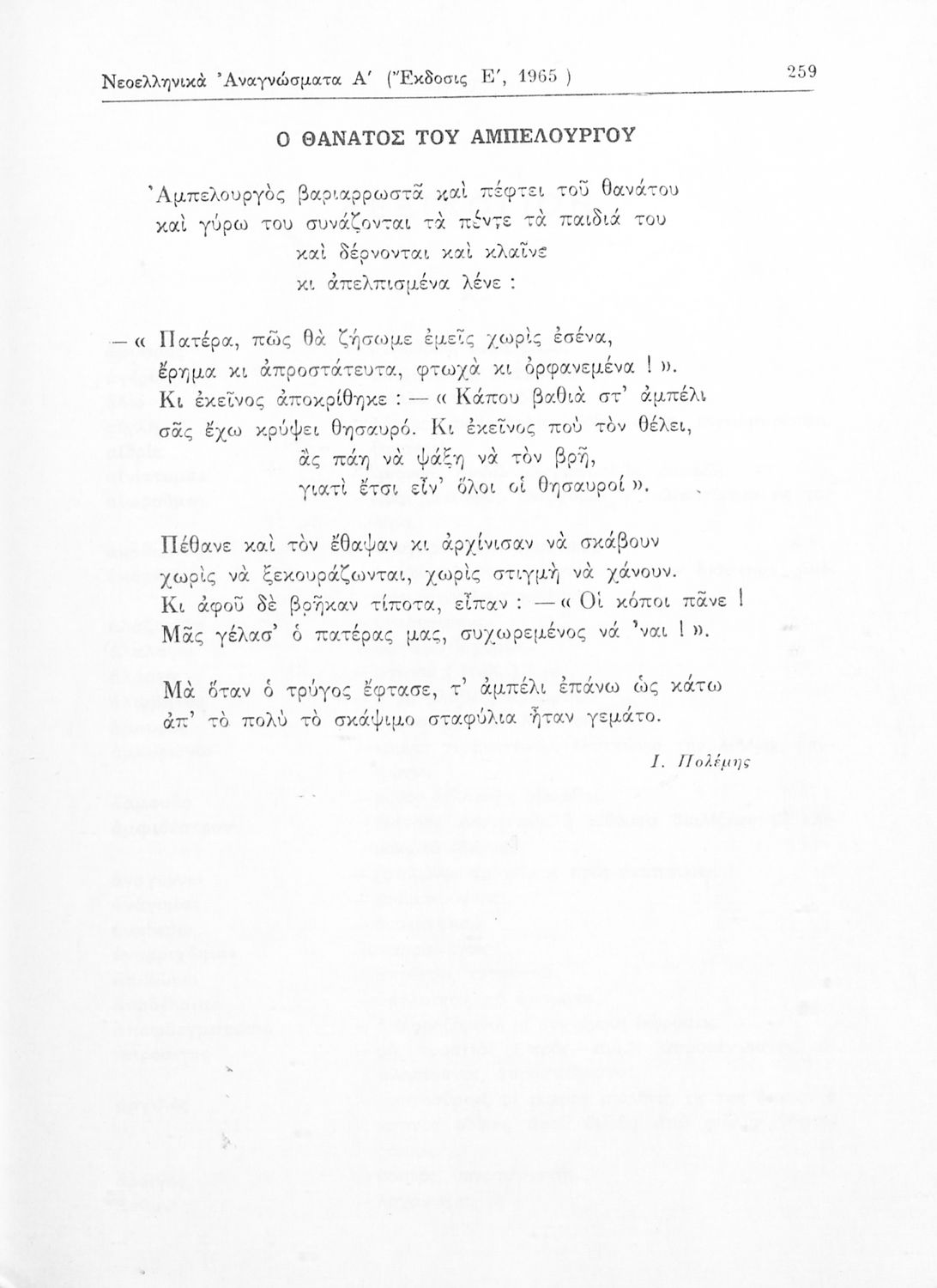 Σχετιζόμενοι όροι:  Παπαντωνίου, Πολέμης, Παλαμάς, Βηλαράς