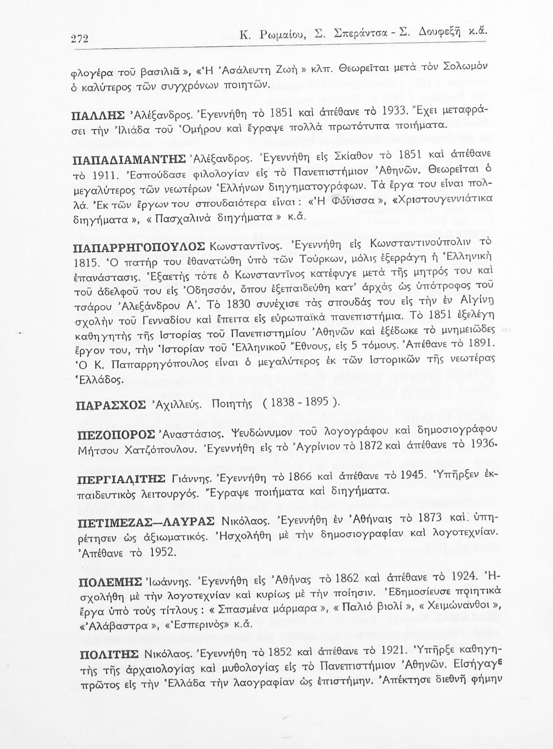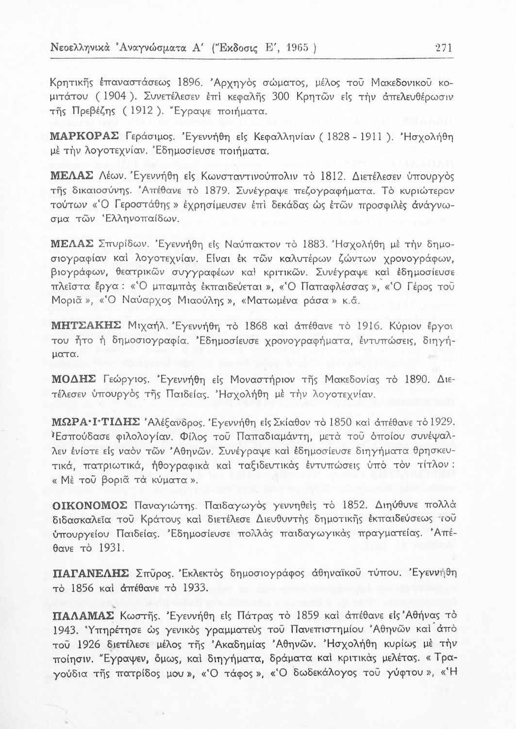 Σχετιζόμενοι όροι:  Παπαντωνίου, Πολέμης, Παλαμάς, Βηλαράς