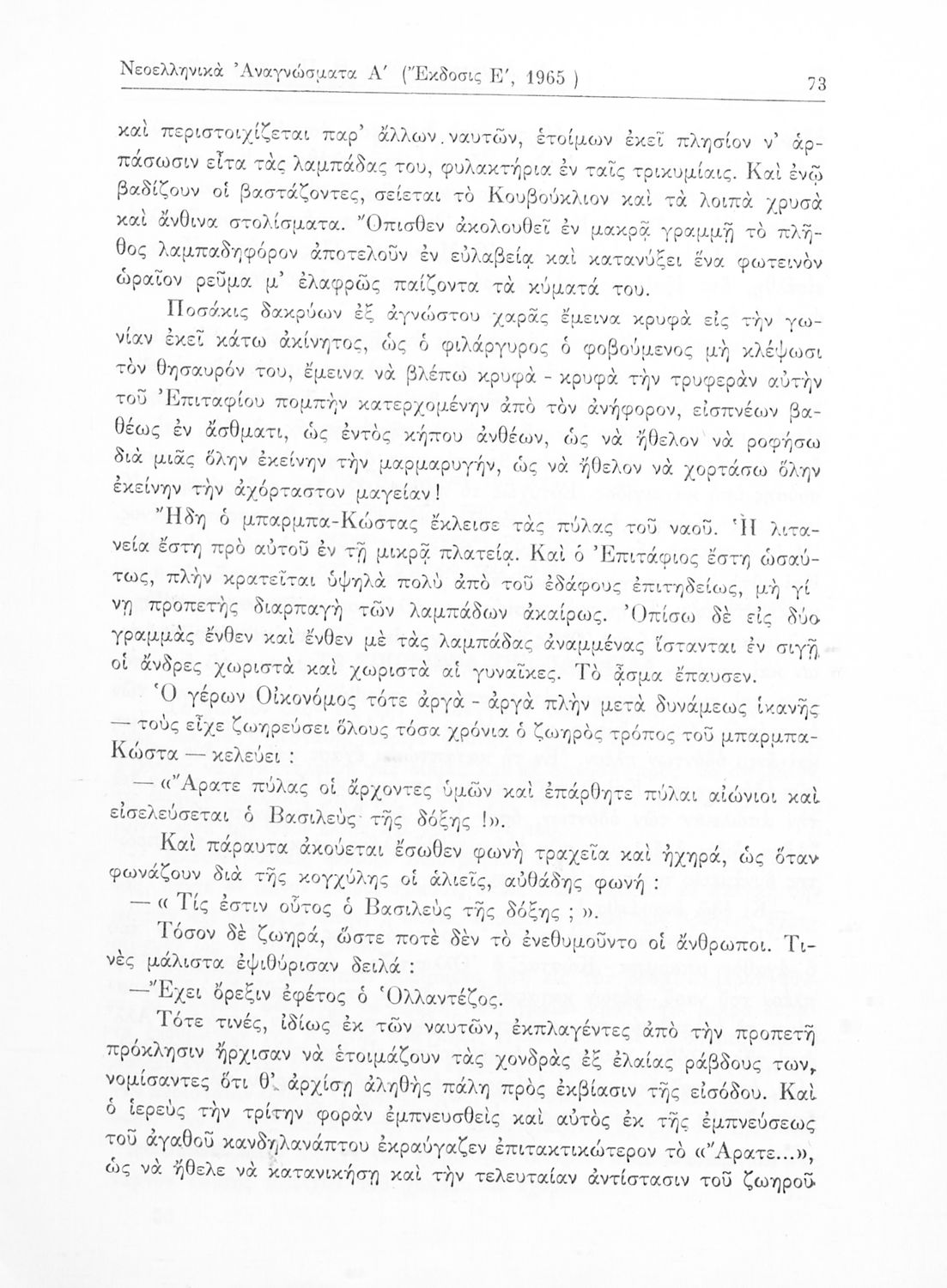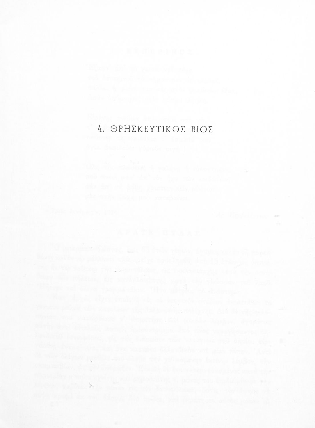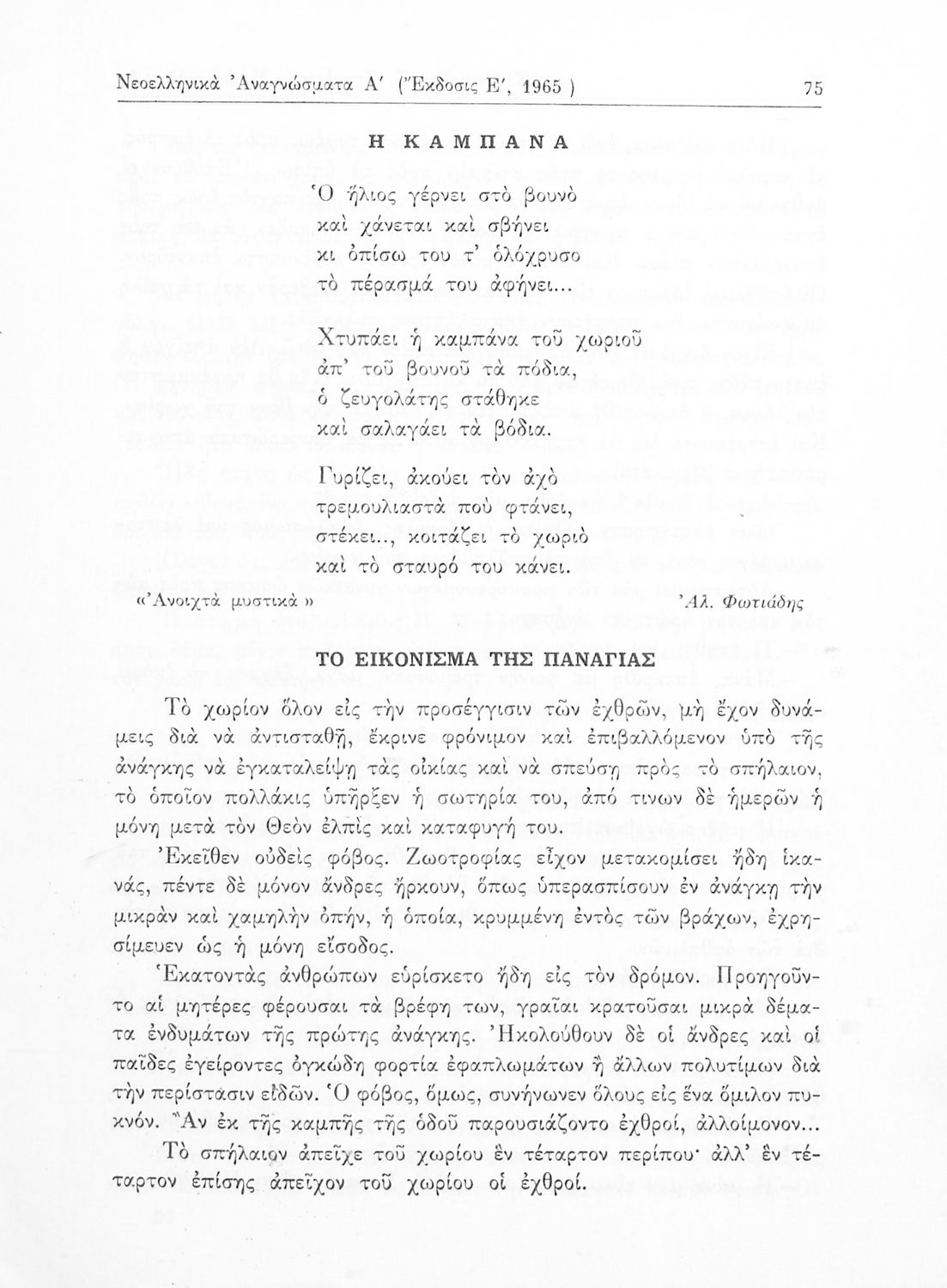 Σχολικό εγχειρίδιο Νέων Ελληνικών Γ΄ Γυμνασίου και Α' Αστικού Σχολείου που περιέχει πεζά και ποιήματα Ελλήνων συγγραφέων εμπνευσμένα από τη θρησκευτική και κοινωνική ζωή, την ελληνική μυθολογία, την αρχαία και