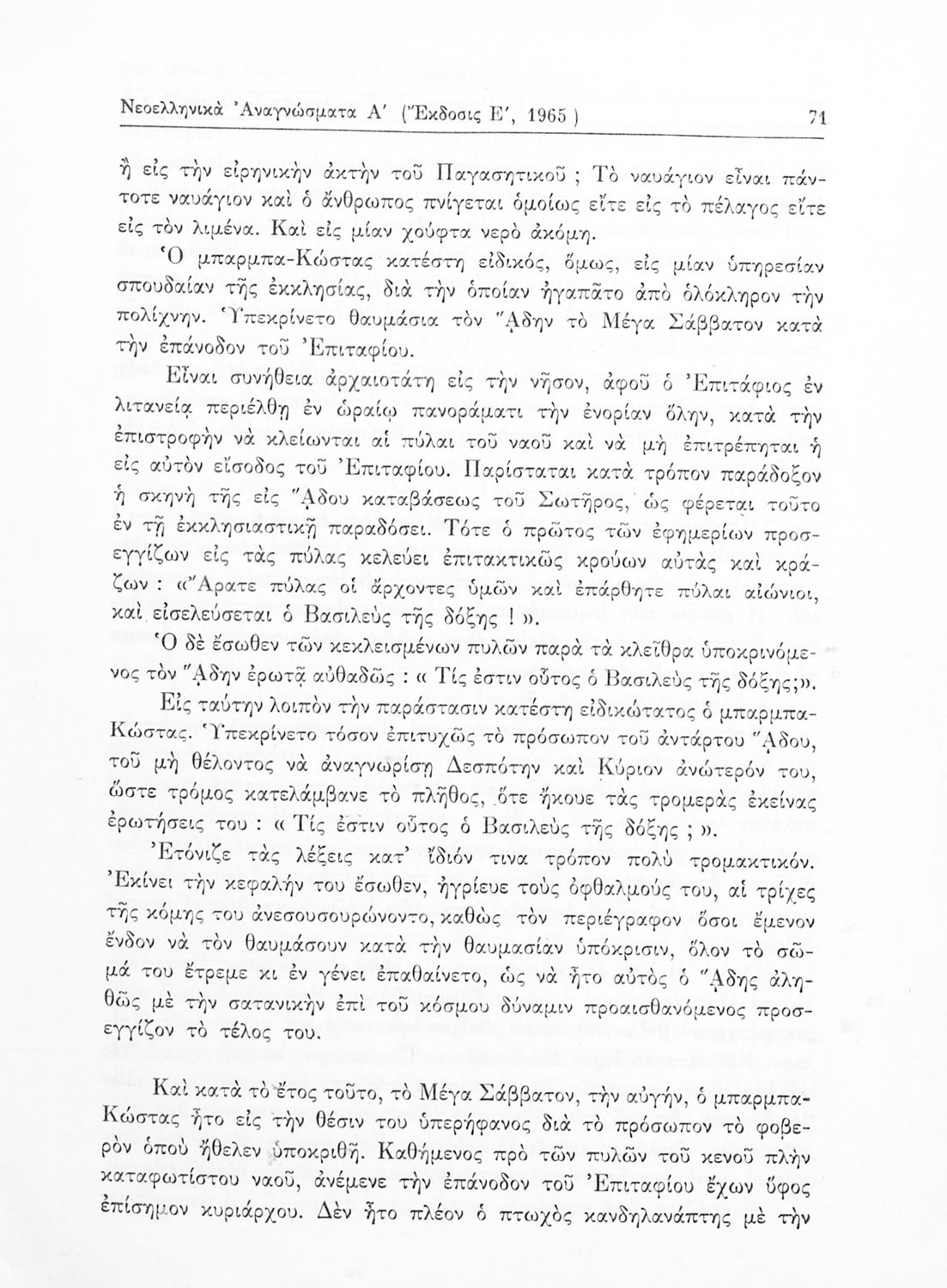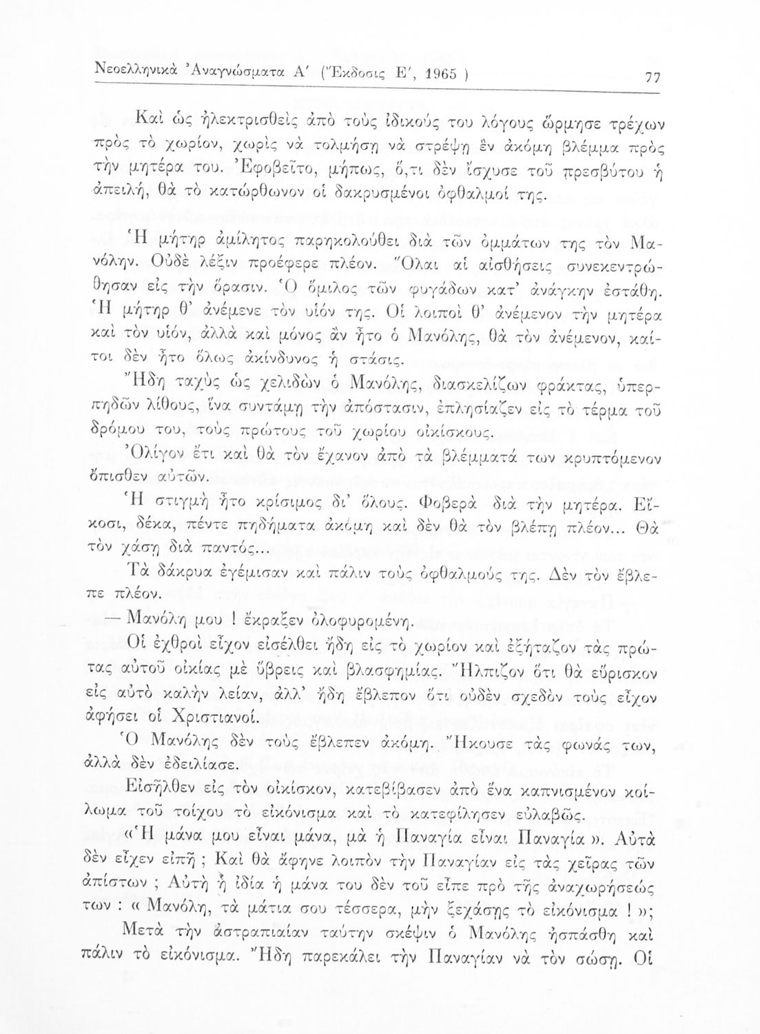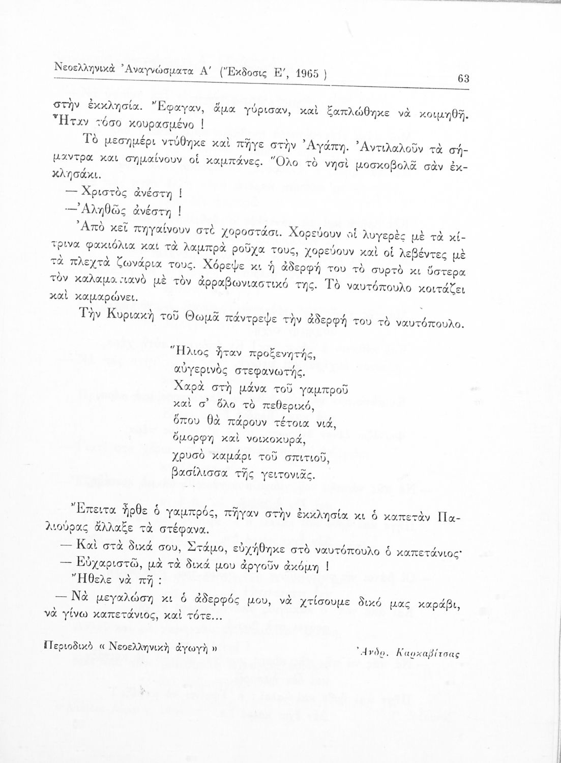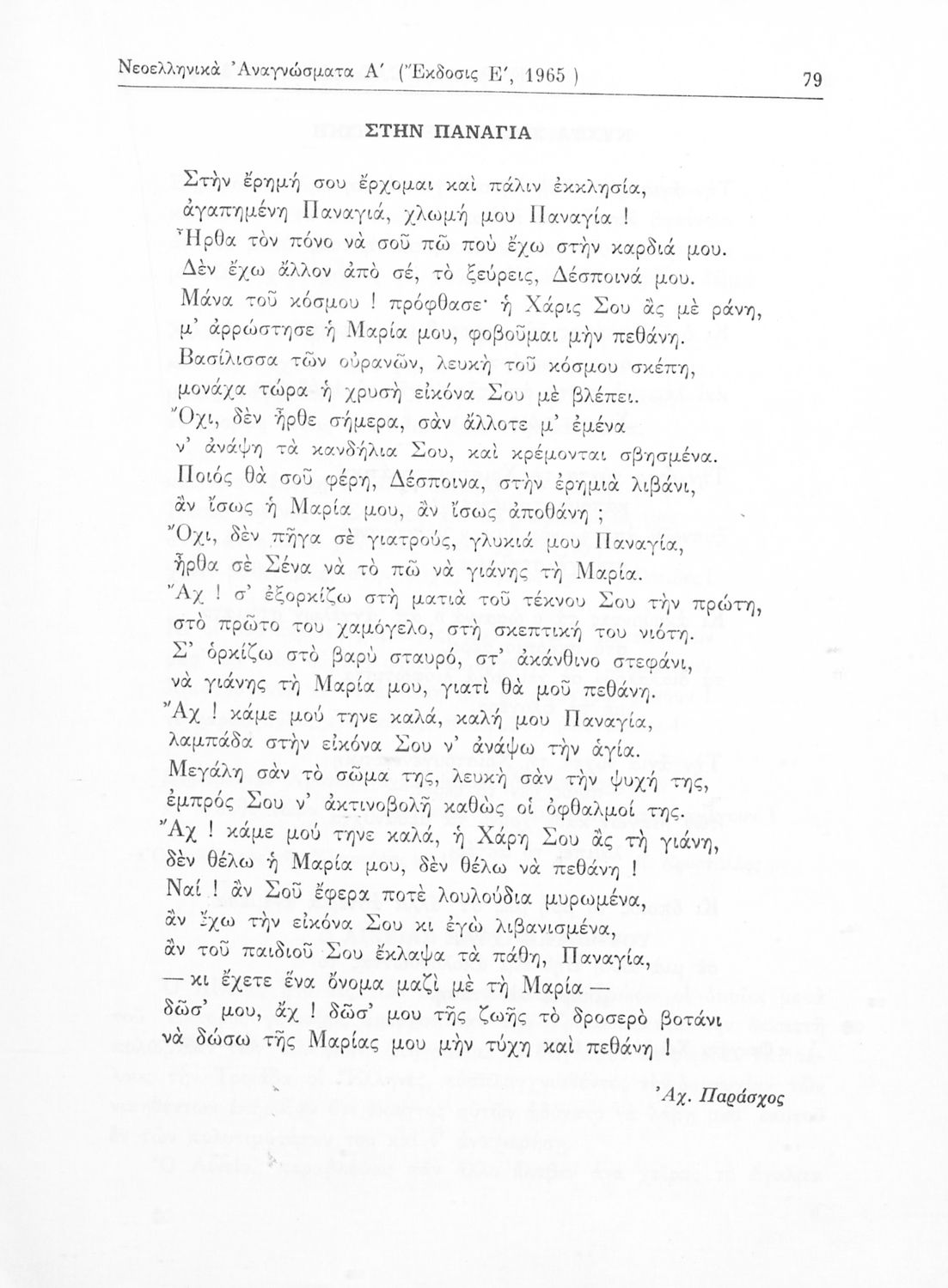 Σχολικό εγχειρίδιο Νέων Ελληνικών Γ΄ Γυμνασίου και Α' Αστικού Σχολείου που περιέχει πεζά και ποιήματα Ελλήνων συγγραφέων εμπνευσμένα από τη θρησκευτική και κοινωνική ζωή, την ελληνική μυθολογία, την αρχαία και