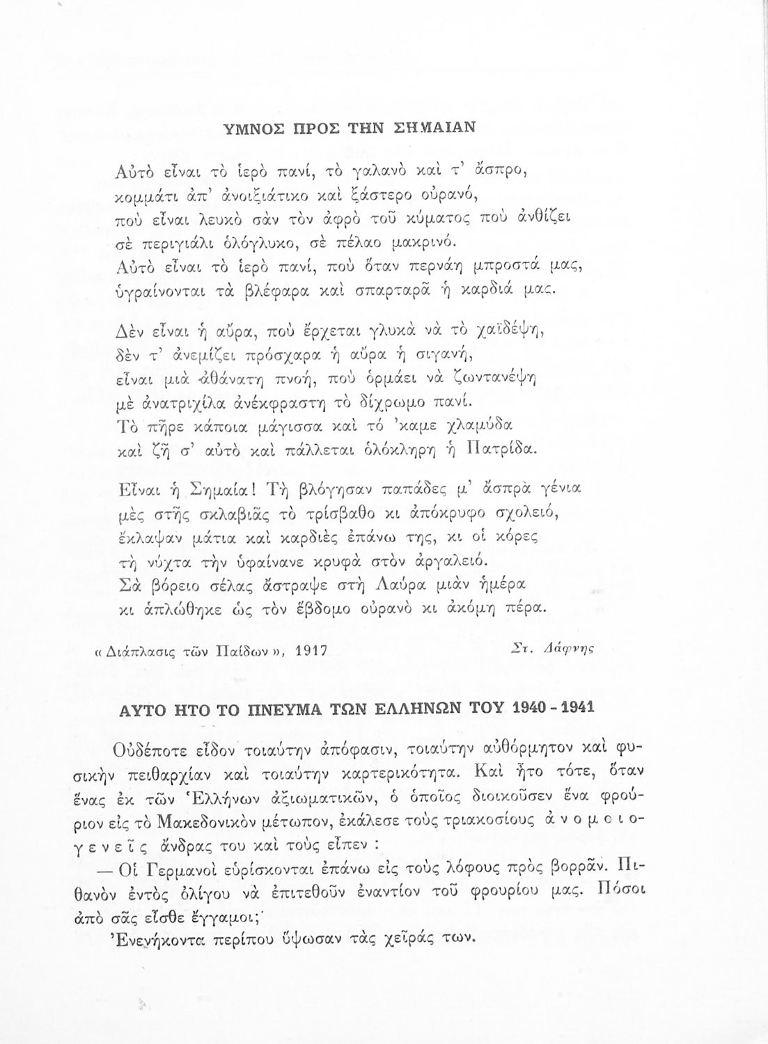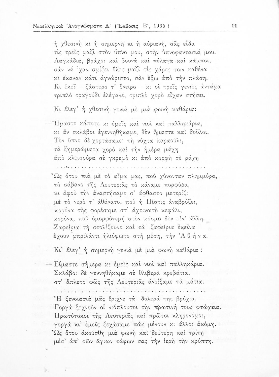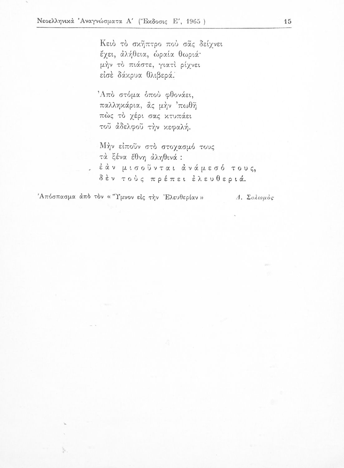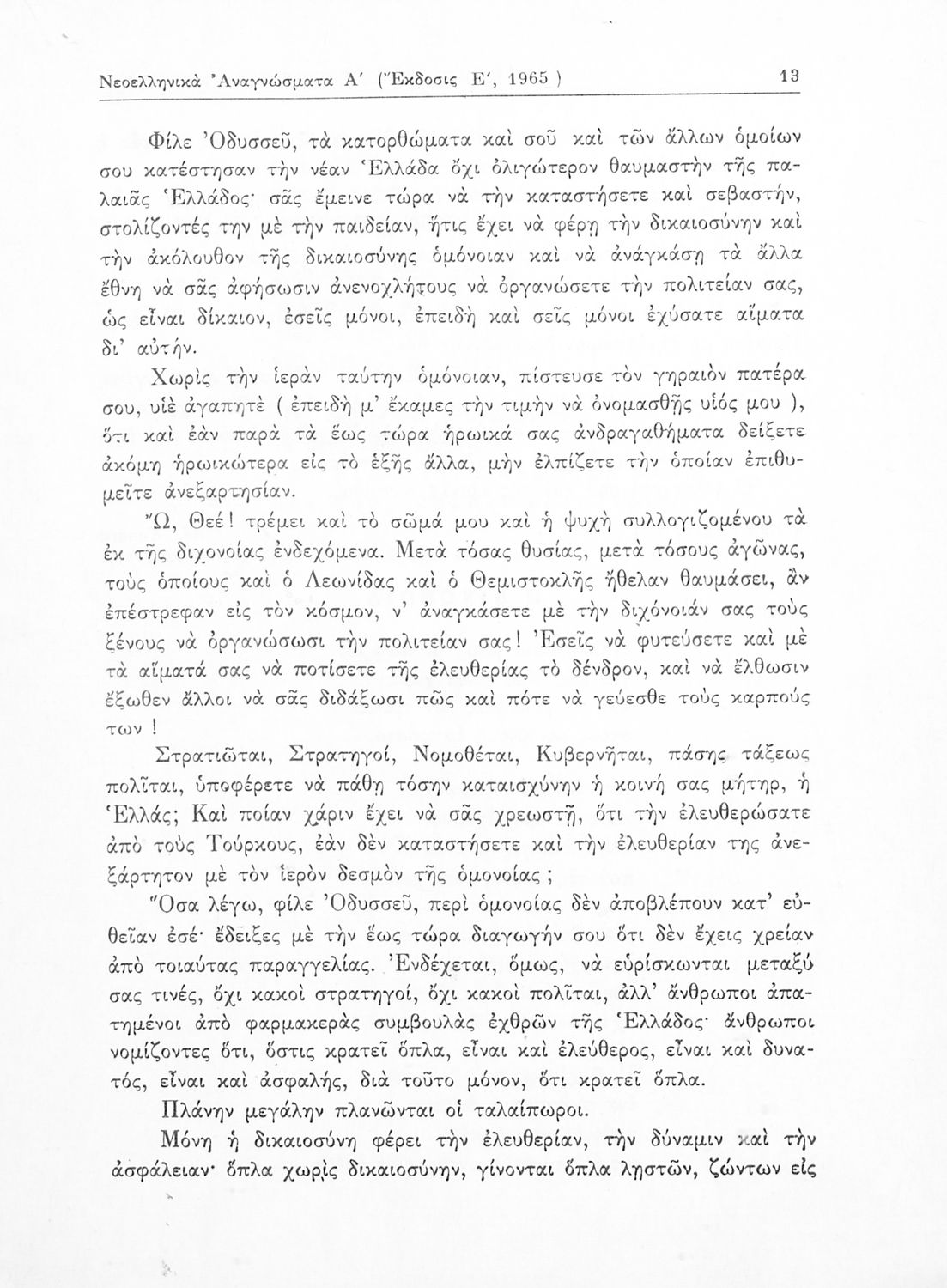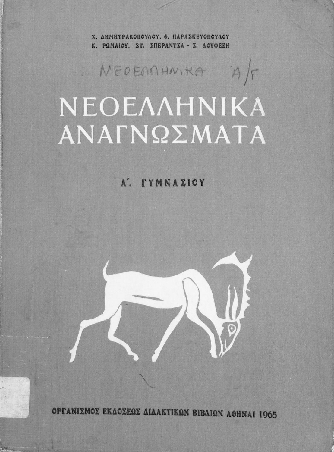 Σχολικό εγχειρίδιο Νέων Ελληνικών Γ΄ Γυμνασίου και Α' Αστικού Σχολείου που περιέχει πεζά και ποιήματα Ελλήνων συγγραφέων εμπνευσμένα από τη θρησκευτική και κοινωνική ζωή, την ελληνική μυθολογία, την αρχαία και