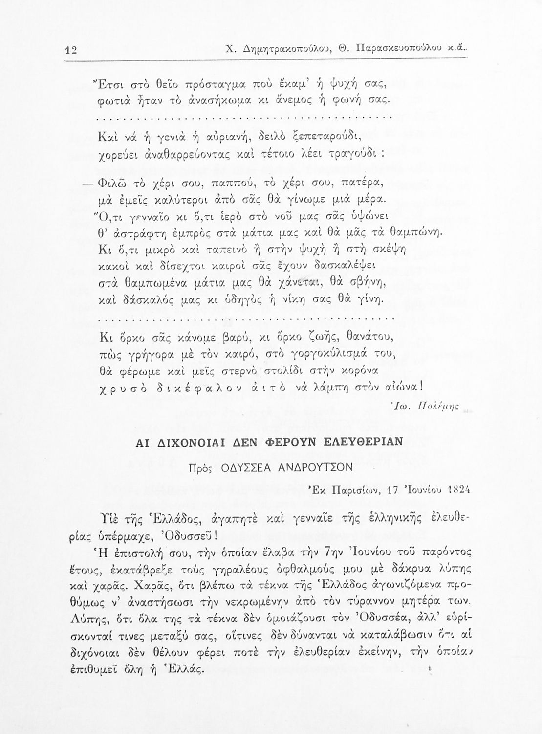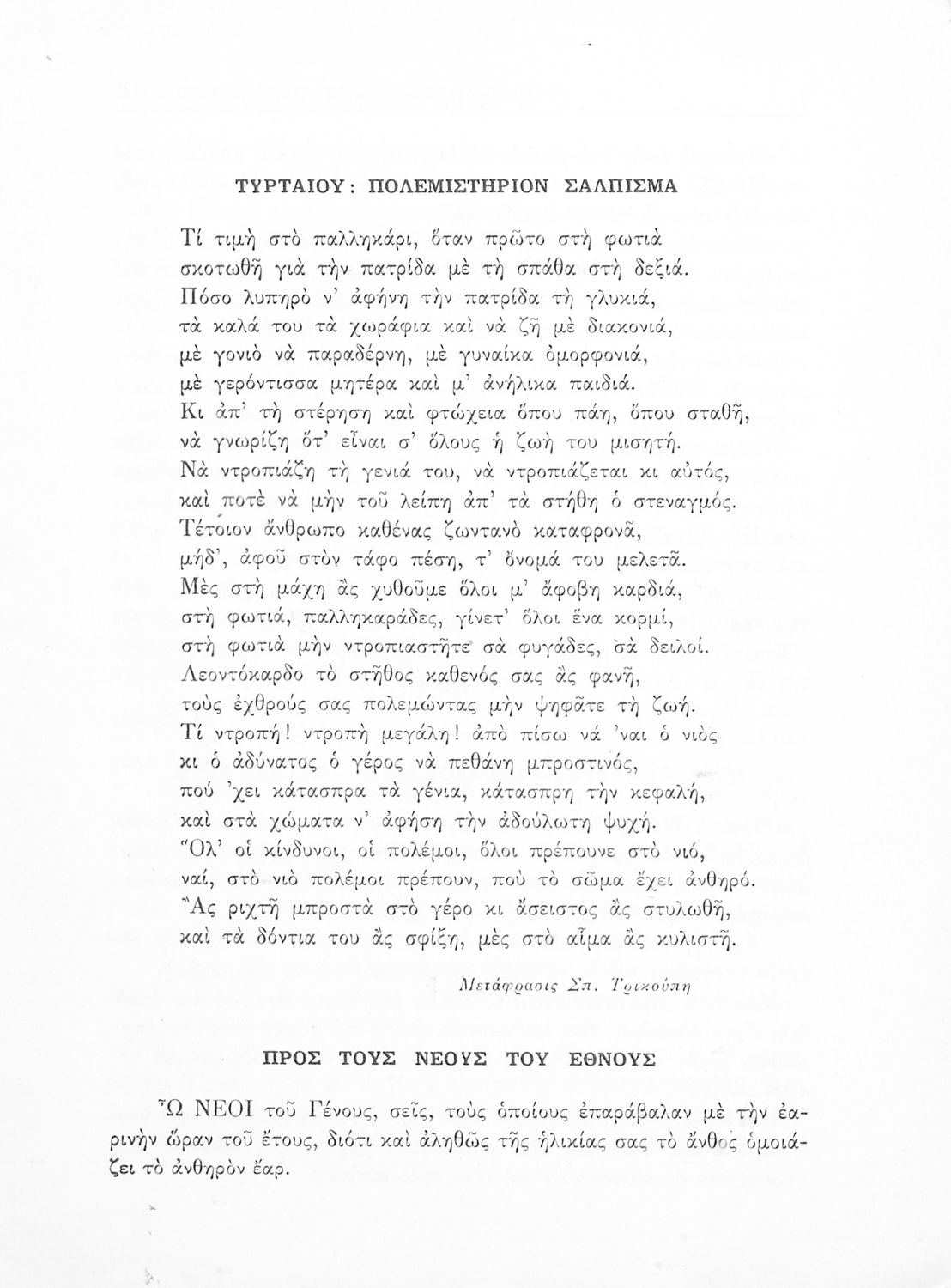 Σχετιζόμενοι όροι:  Παπαντωνίου, Πολέμης, Παλαμάς, Βηλαράς