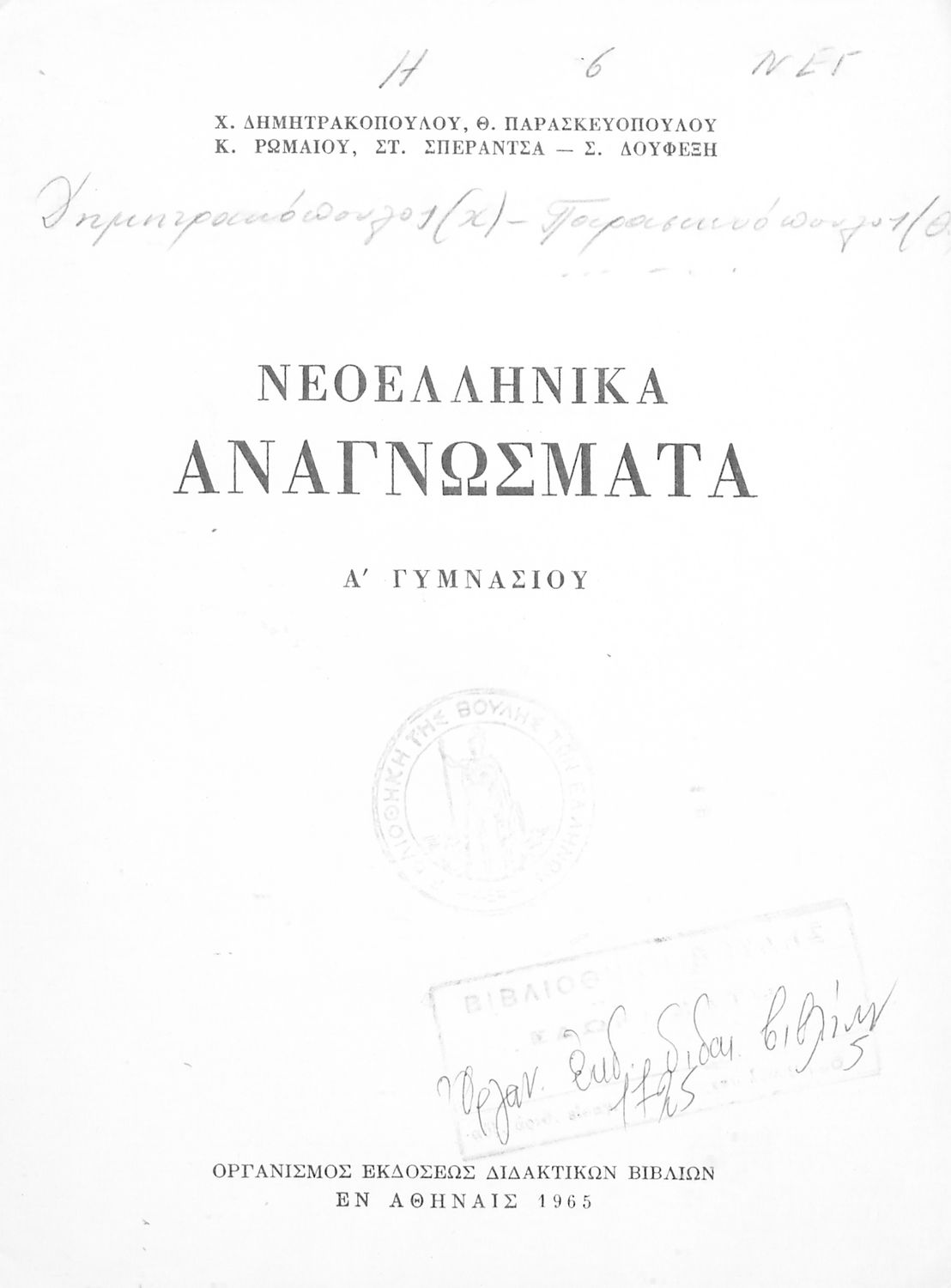 Τίτλος: Νεοελληνικά αναγνώσματα Α' Γυμνασίου