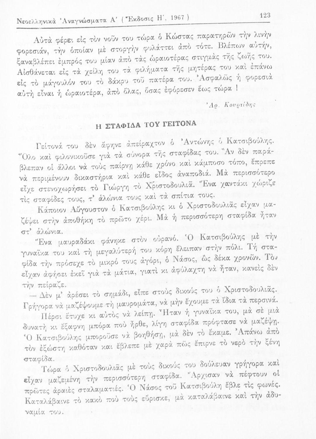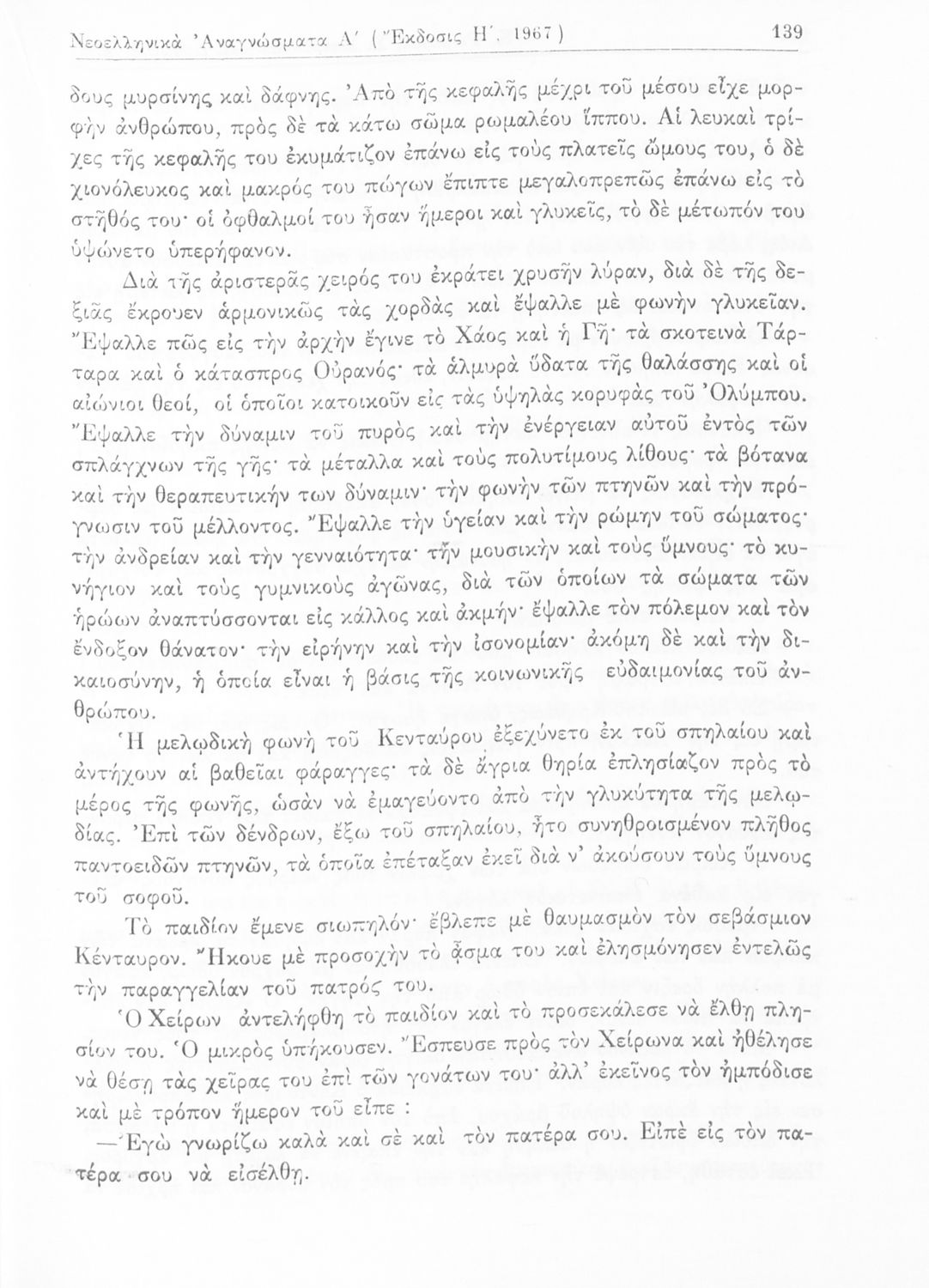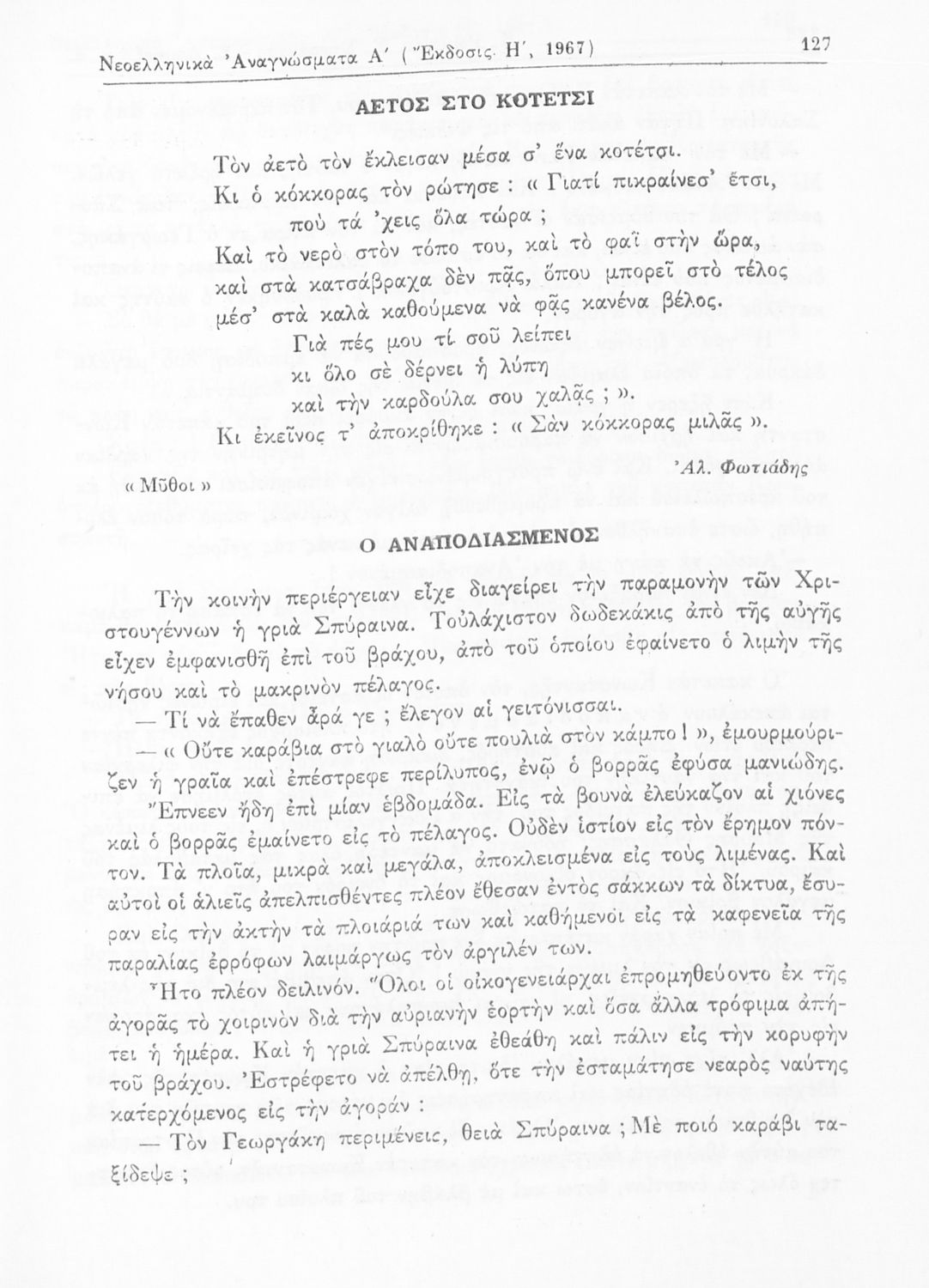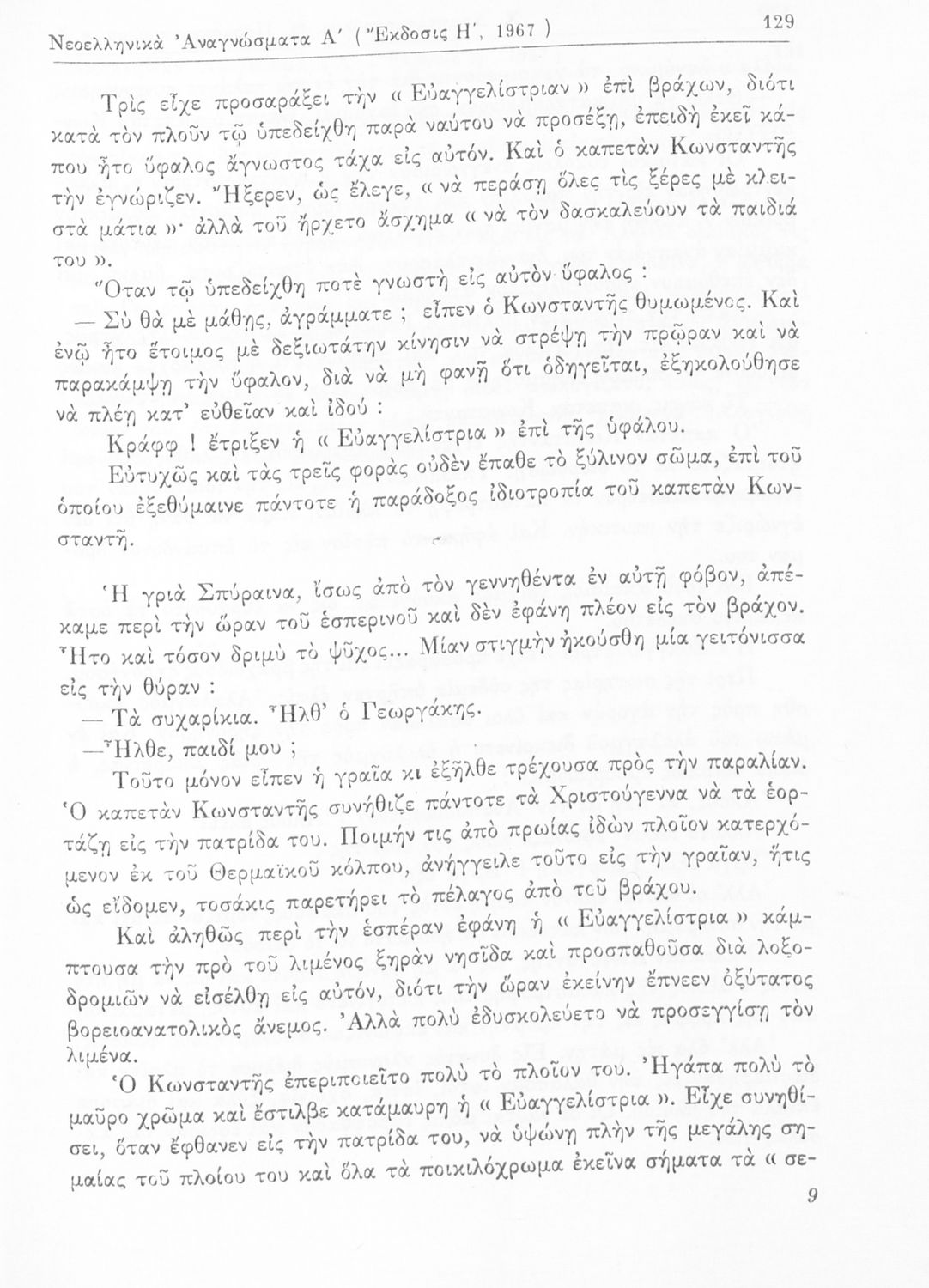 Σχολικό εγχειρίδιο Νέων Ελληνικών Γ΄ Γυμνασίου και Α' Αστικού Σχολείου που περιέχει πεζά και ποιήματα Ελλήνων συγγραφέων εμπνευσμένα από τη θρησκευτική και κοινωνική ζωή, την ελληνική μυθολογία, την αρχαία και