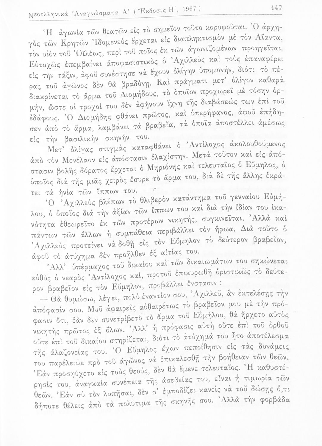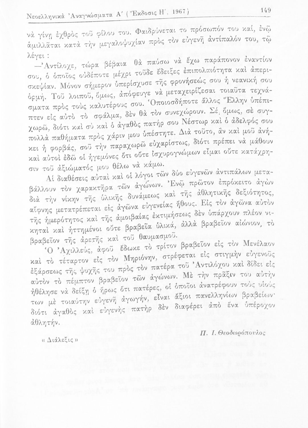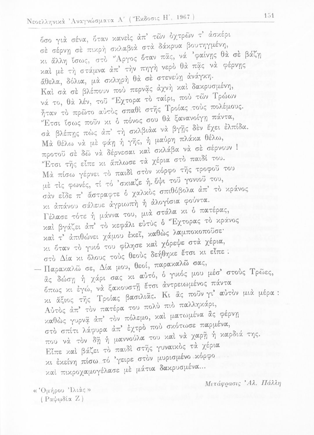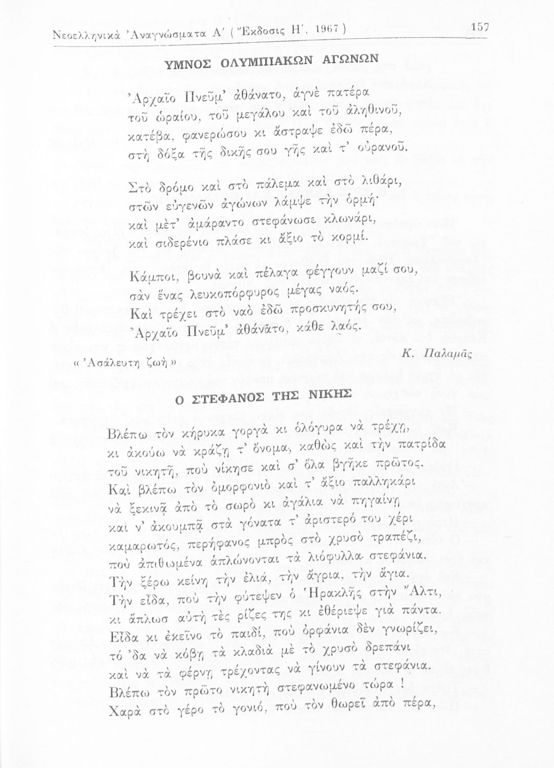 Σχολικό εγχειρίδιο Νέων Ελληνικών Γ΄ Γυμνασίου και Α' Αστικού Σχολείου που περιέχει πεζά και ποιήματα Ελλήνων συγγραφέων εμπνευσμένα από τη θρησκευτική και κοινωνική ζωή, την ελληνική μυθολογία, την αρχαία και