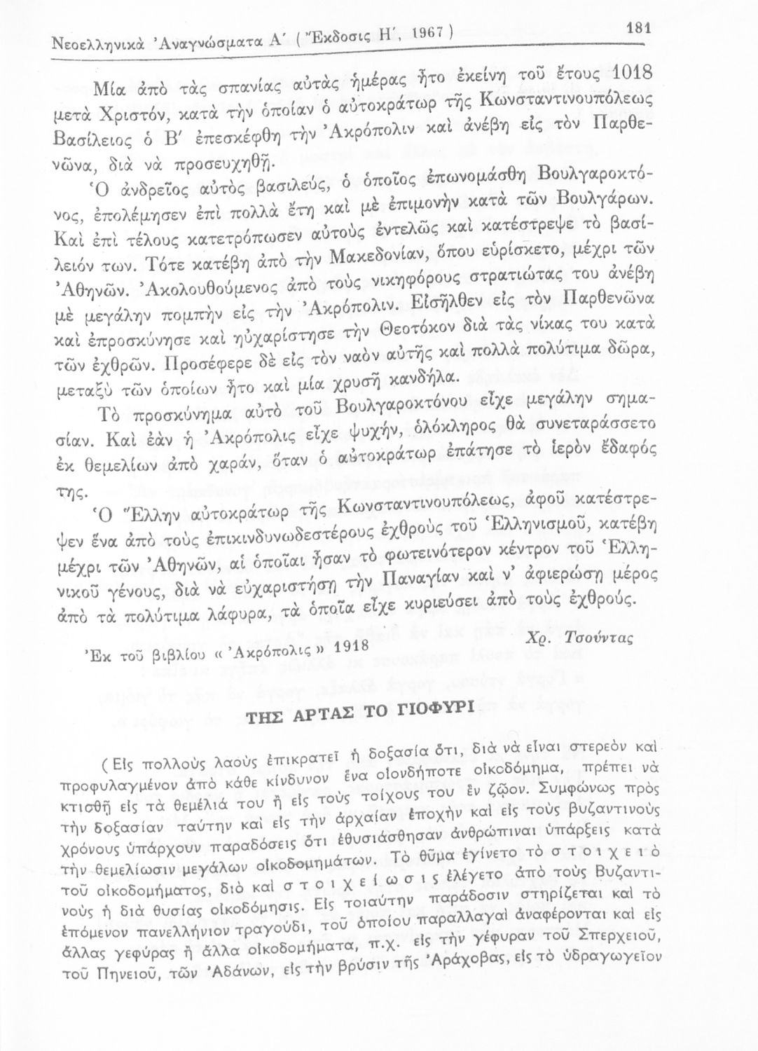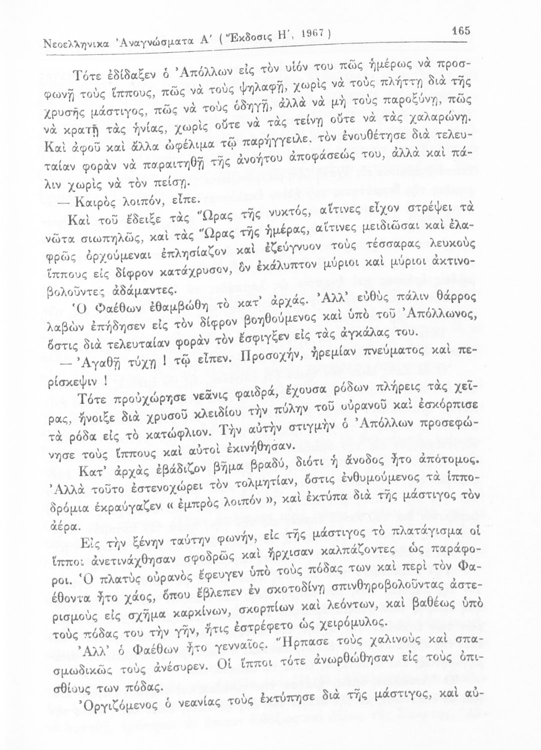 Σχολικό εγχειρίδιο Νέων Ελληνικών Α' Γυμνασίου που περιέχει ποιήματα και πεζά Ελλήνων συγγραφέων εμπνευσμένα από την αρχαία ελληνική ιστορία και μυθολογία, τη βυζαντινή και σύγχρονη ελληνική ιστορία και την καθημερινή ζωή. Περιέχει παράρτημα με βιογραφίες των συγγραφέων και λεξιλόγιο.