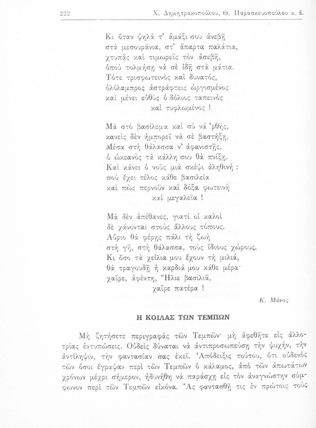 Σχετιζόμενοι όροι:  Παπαντωνίου, Πολέμης, Παλαμάς, Βηλαράς
