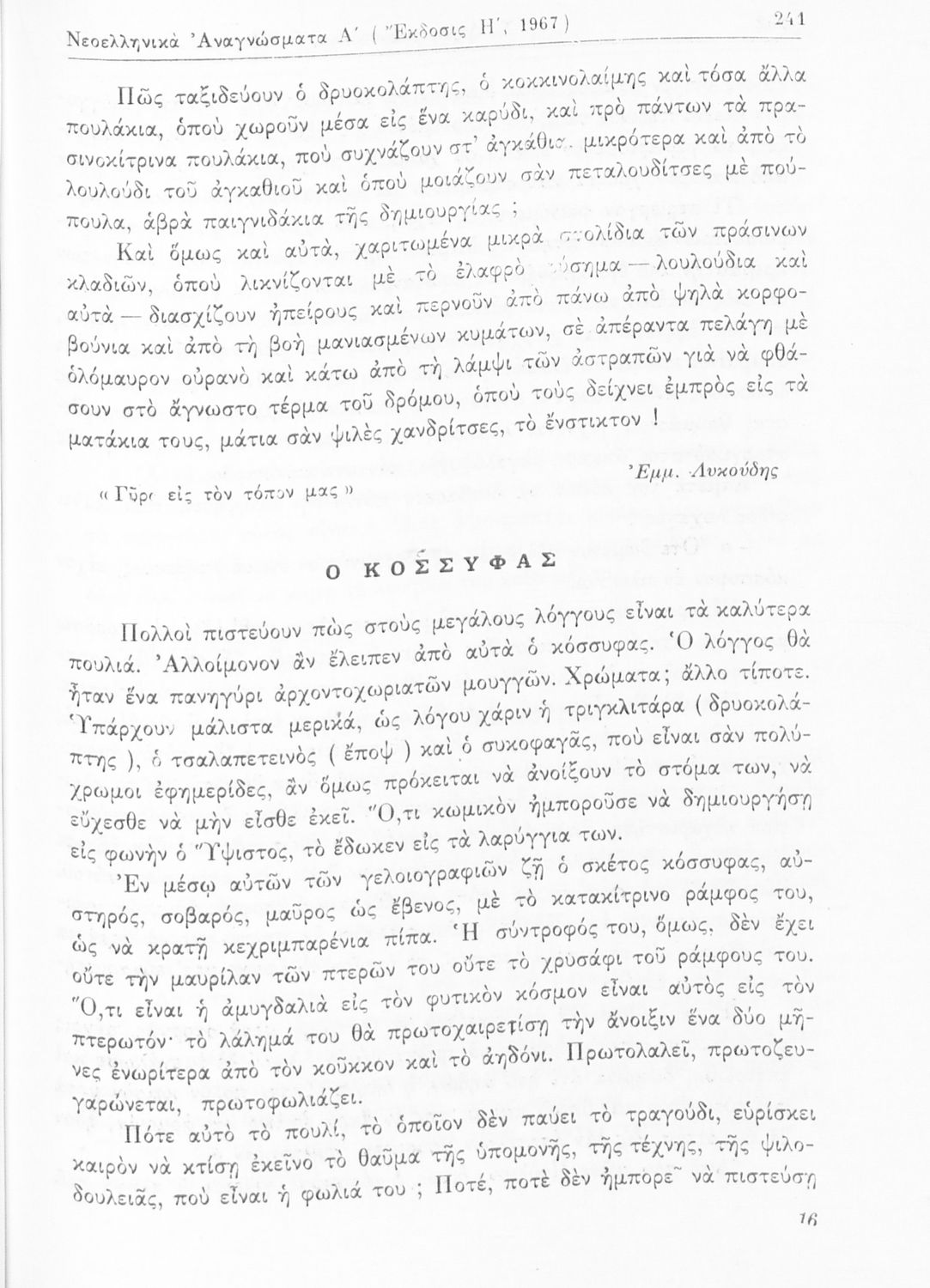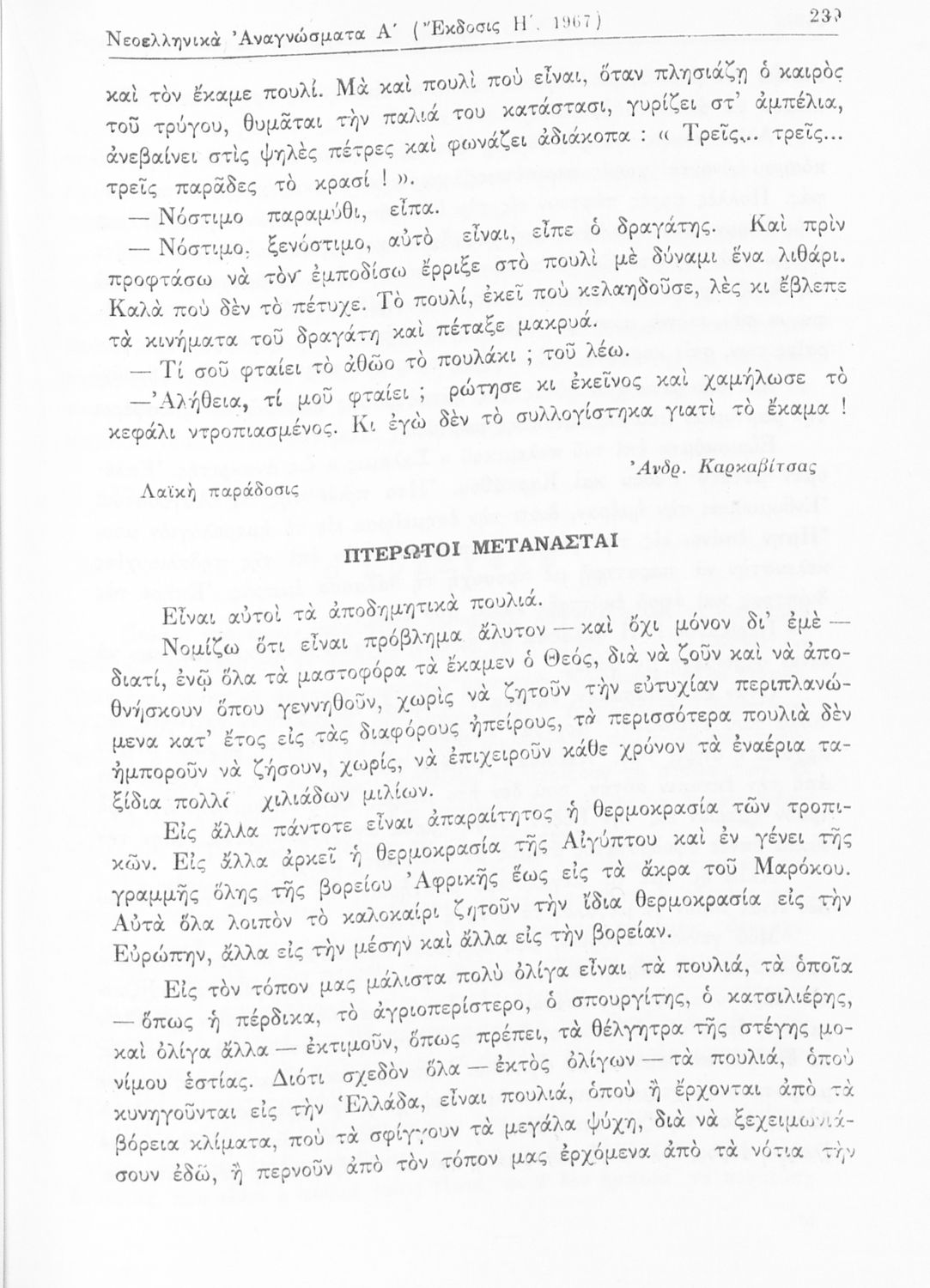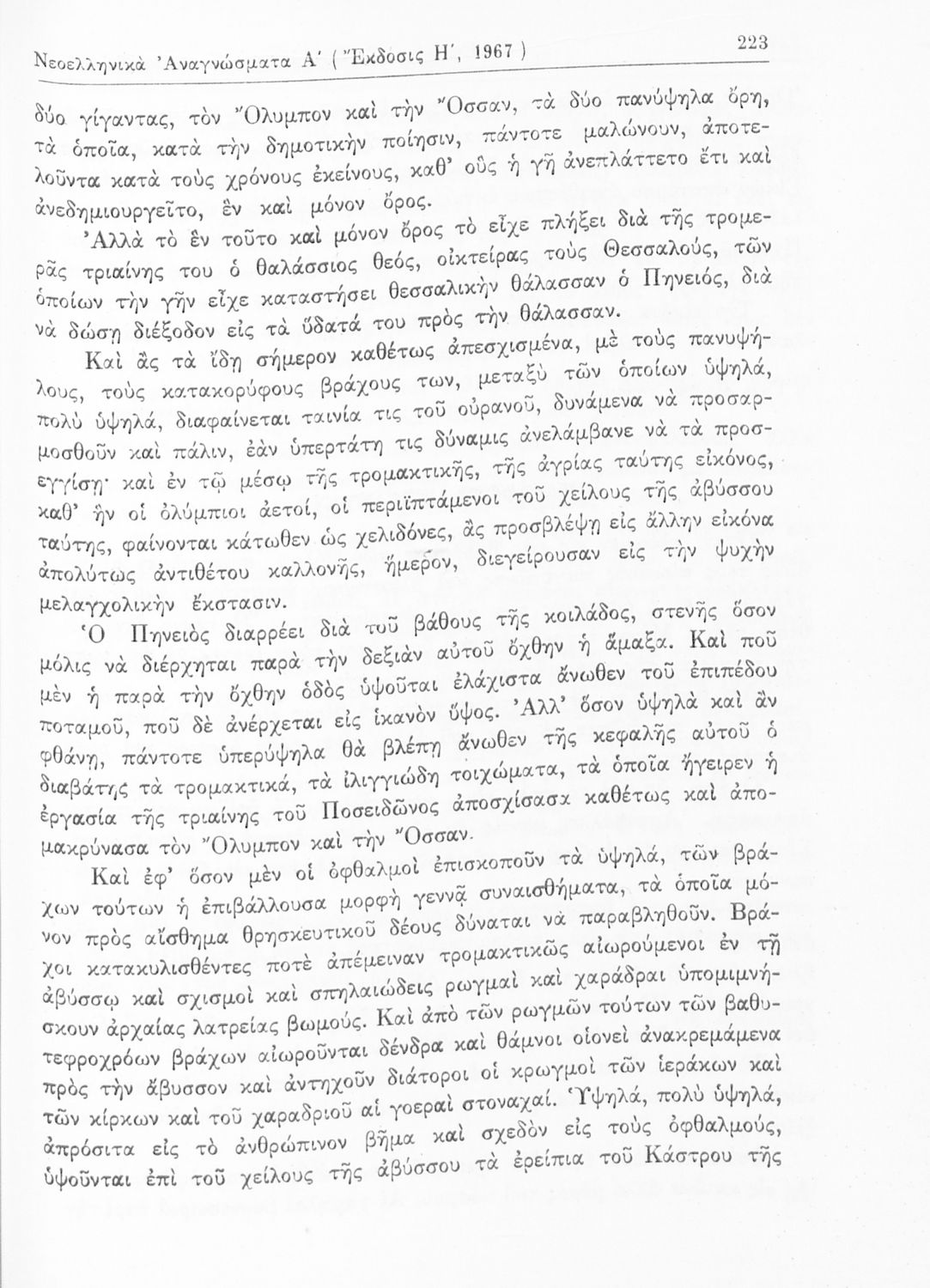 Σχολικό εγχειρίδιο Νέων Ελληνικών Γ΄ Γυμνασίου και Α' Αστικού Σχολείου που περιέχει πεζά και ποιήματα Ελλήνων συγγραφέων εμπνευσμένα από τη θρησκευτική και κοινωνική ζωή, την ελληνική μυθολογία, την αρχαία και