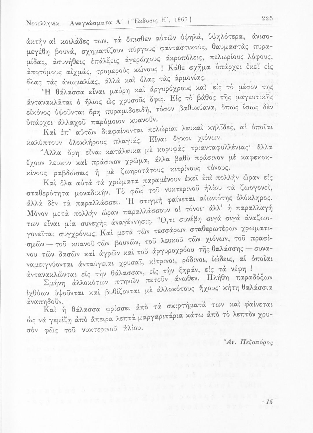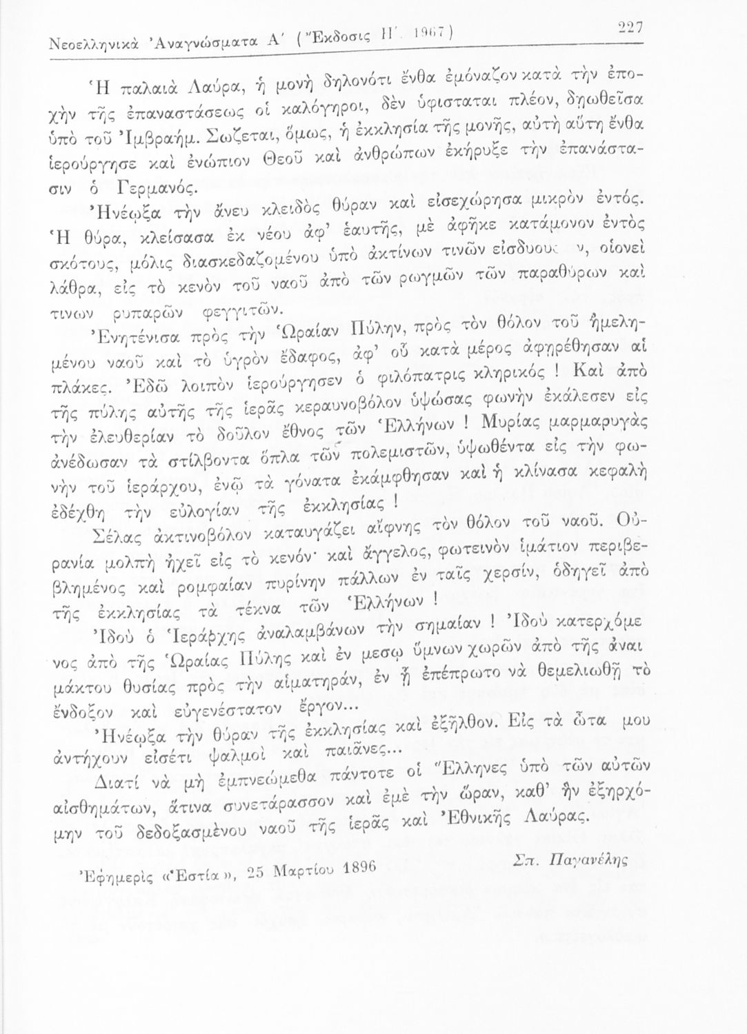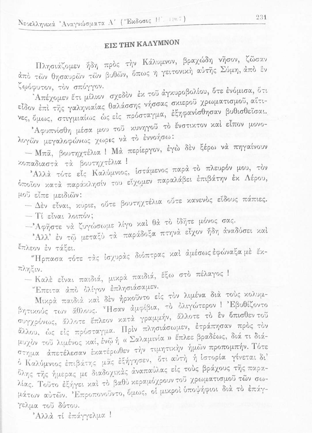 Σχολικό εγχειρίδιο Νέων Ελληνικών Γ΄ Γυμνασίου και Α' Αστικού Σχολείου που περιέχει πεζά και ποιήματα Ελλήνων συγγραφέων εμπνευσμένα από τη θρησκευτική και κοινωνική ζωή, την ελληνική μυθολογία, την αρχαία και